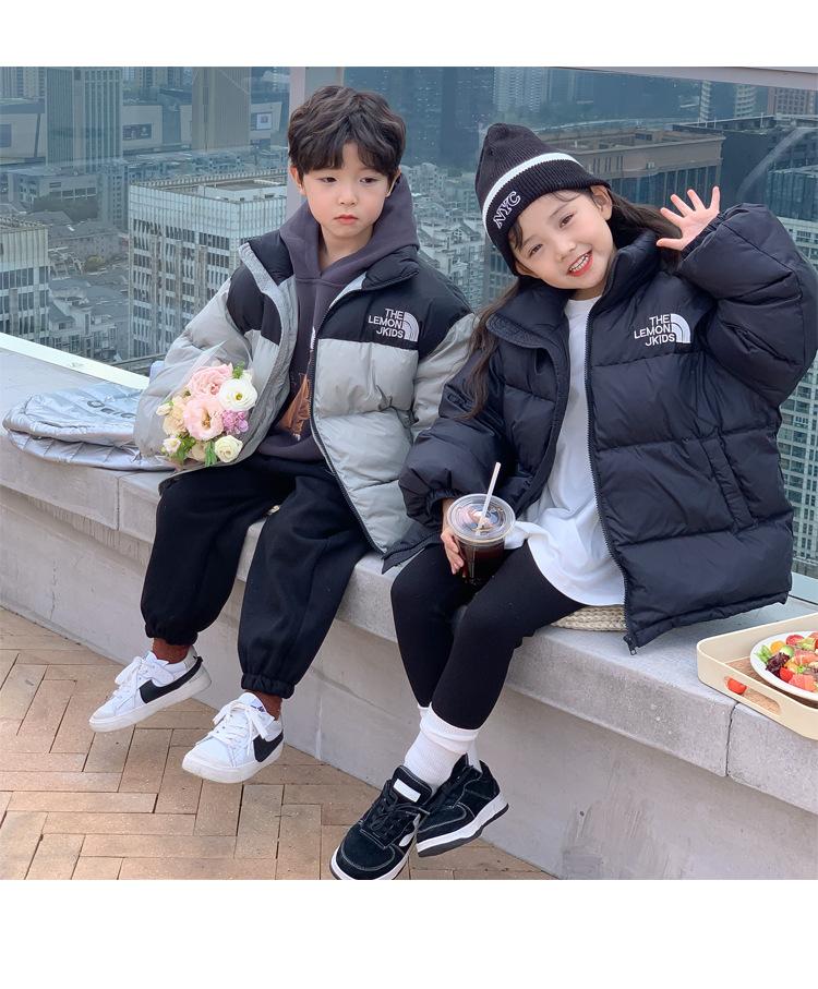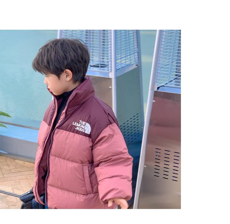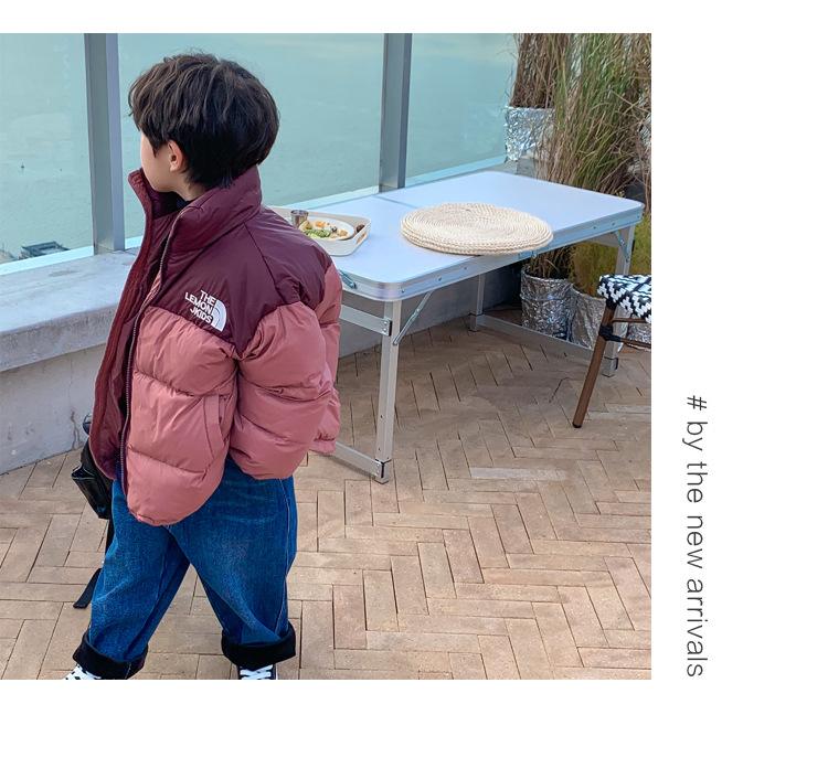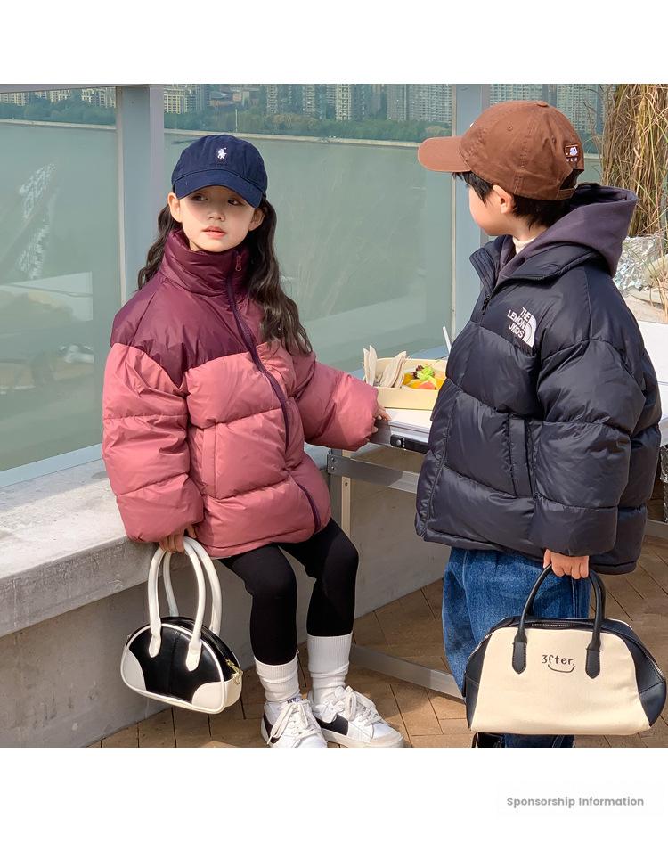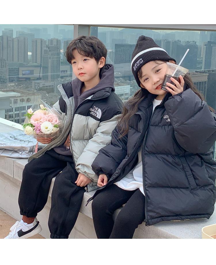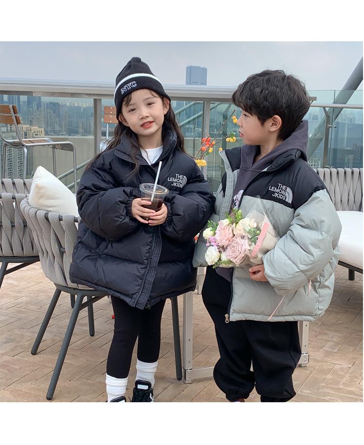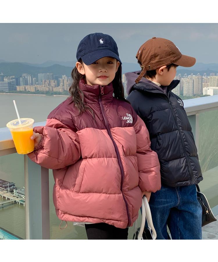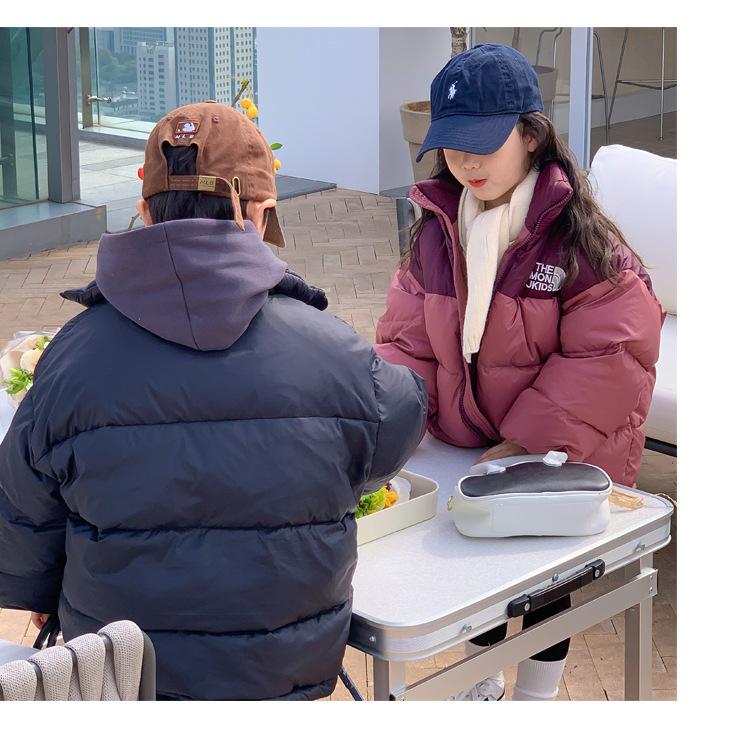 Chaqueta de plumón para niños Cheese and Meow 2023 Invierno Nuevo Estilo Estilo Coreano Bloque de Color Chaqueta Cálida para Niños y Niñas