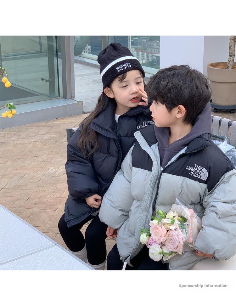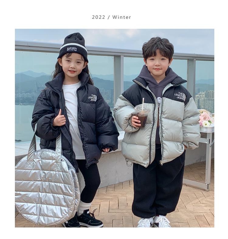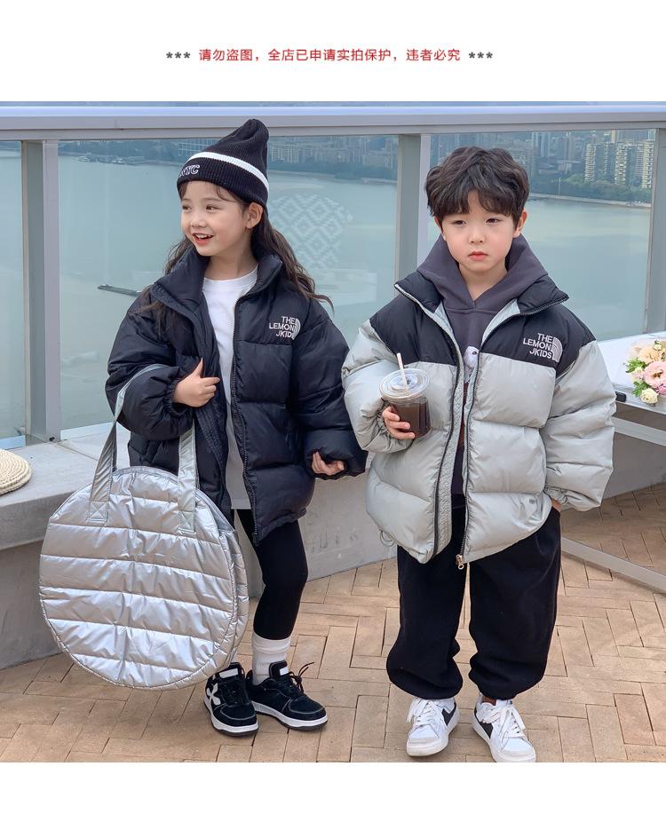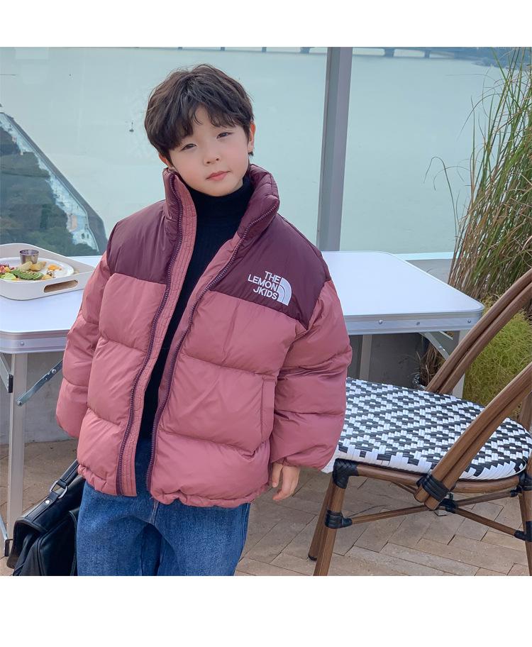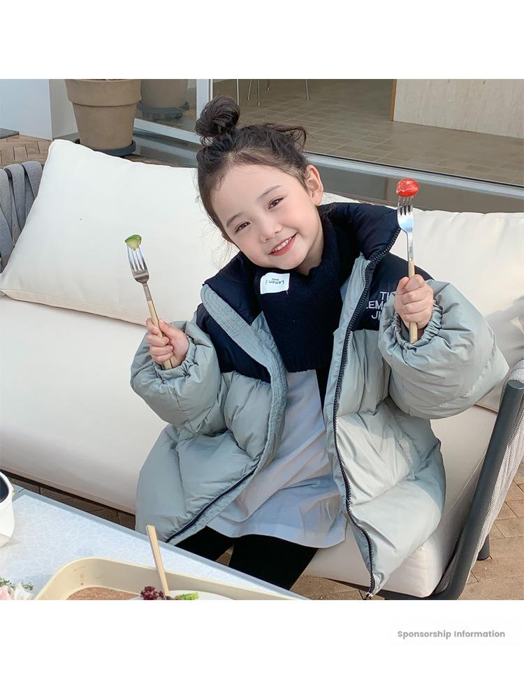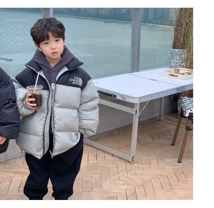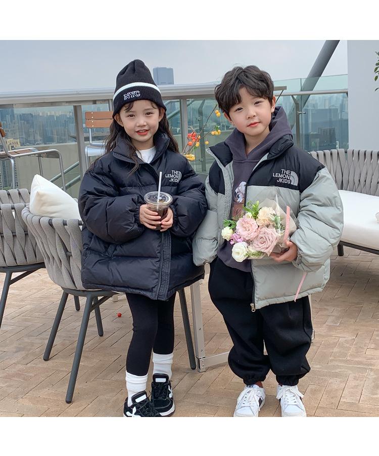 Chaqueta de plumón para niños Cheese and Meow 2023 Invierno Nuevo Estilo Estilo Coreano Bloque de Color Chaqueta Cálida para Niños y Niñas