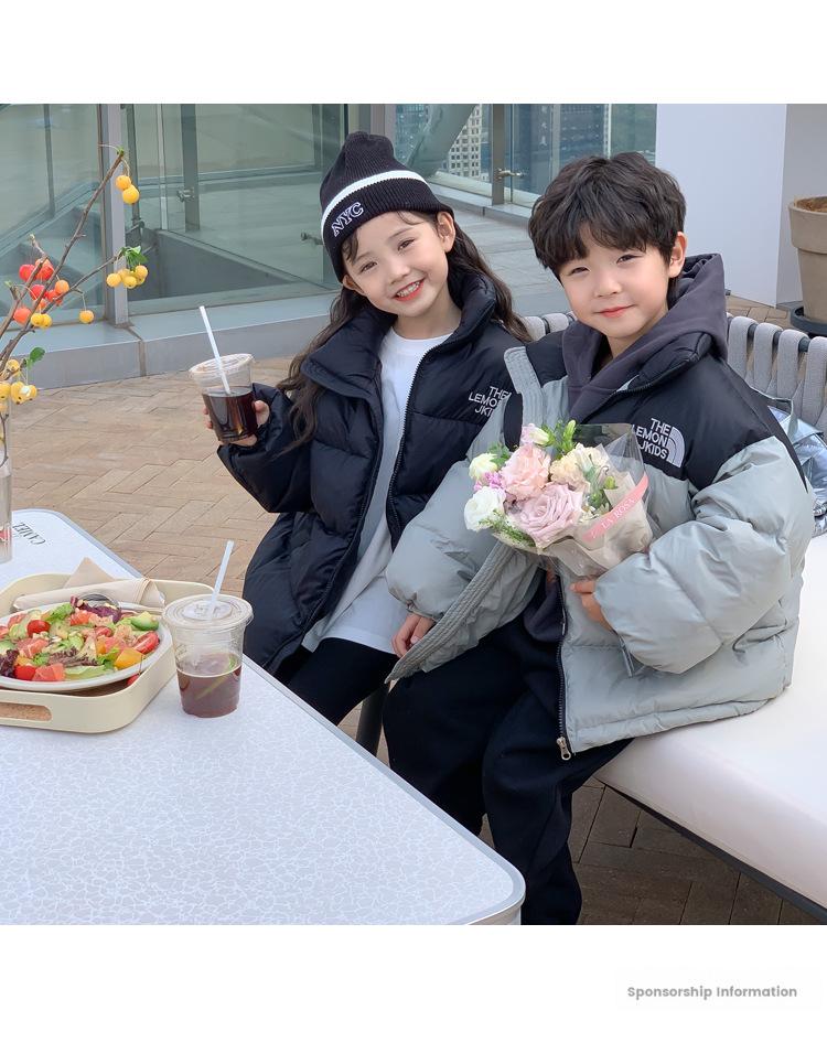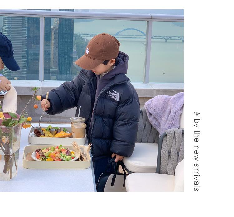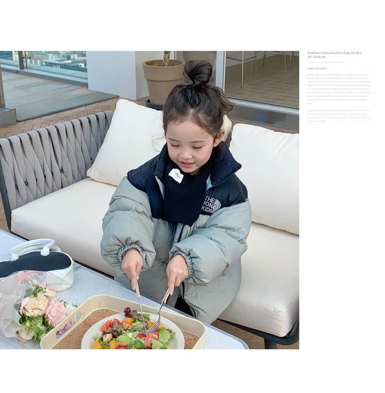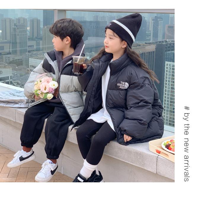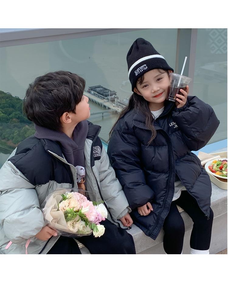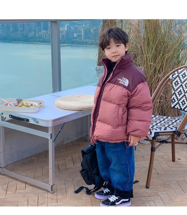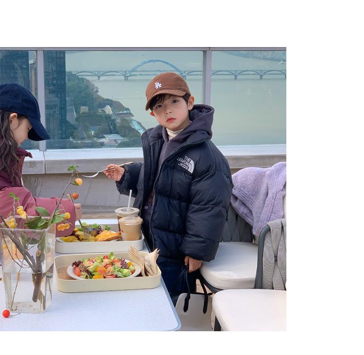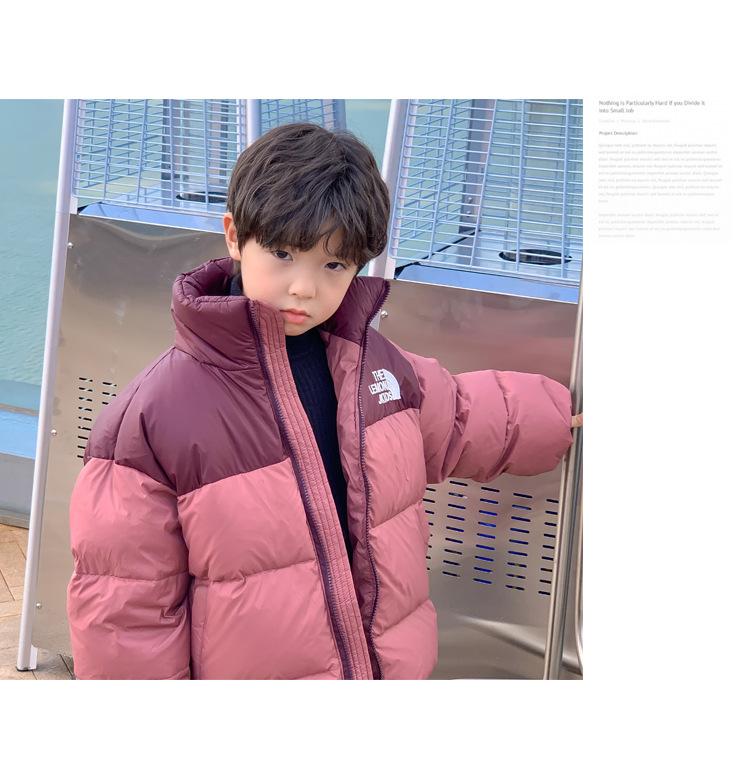 Chaqueta de plumón para niños Cheese and Meow 2023 Invierno Nuevo Estilo Estilo Coreano Bloque de Color Chaqueta Cálida para Niños y Niñas