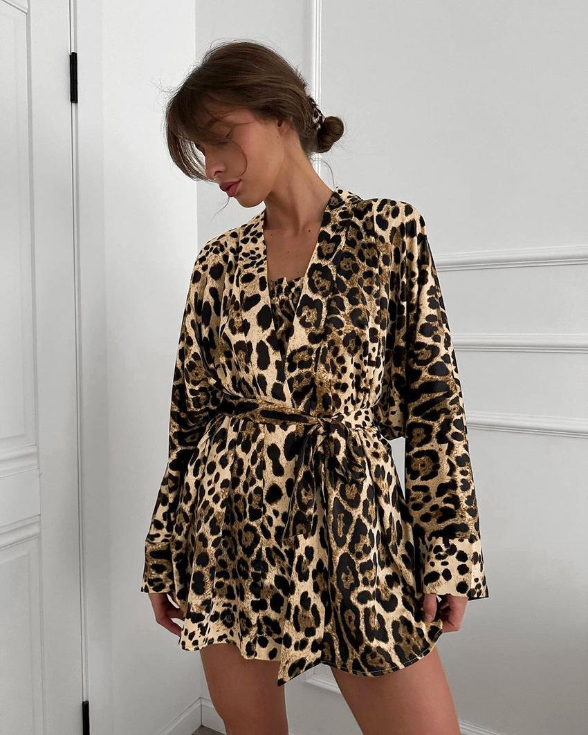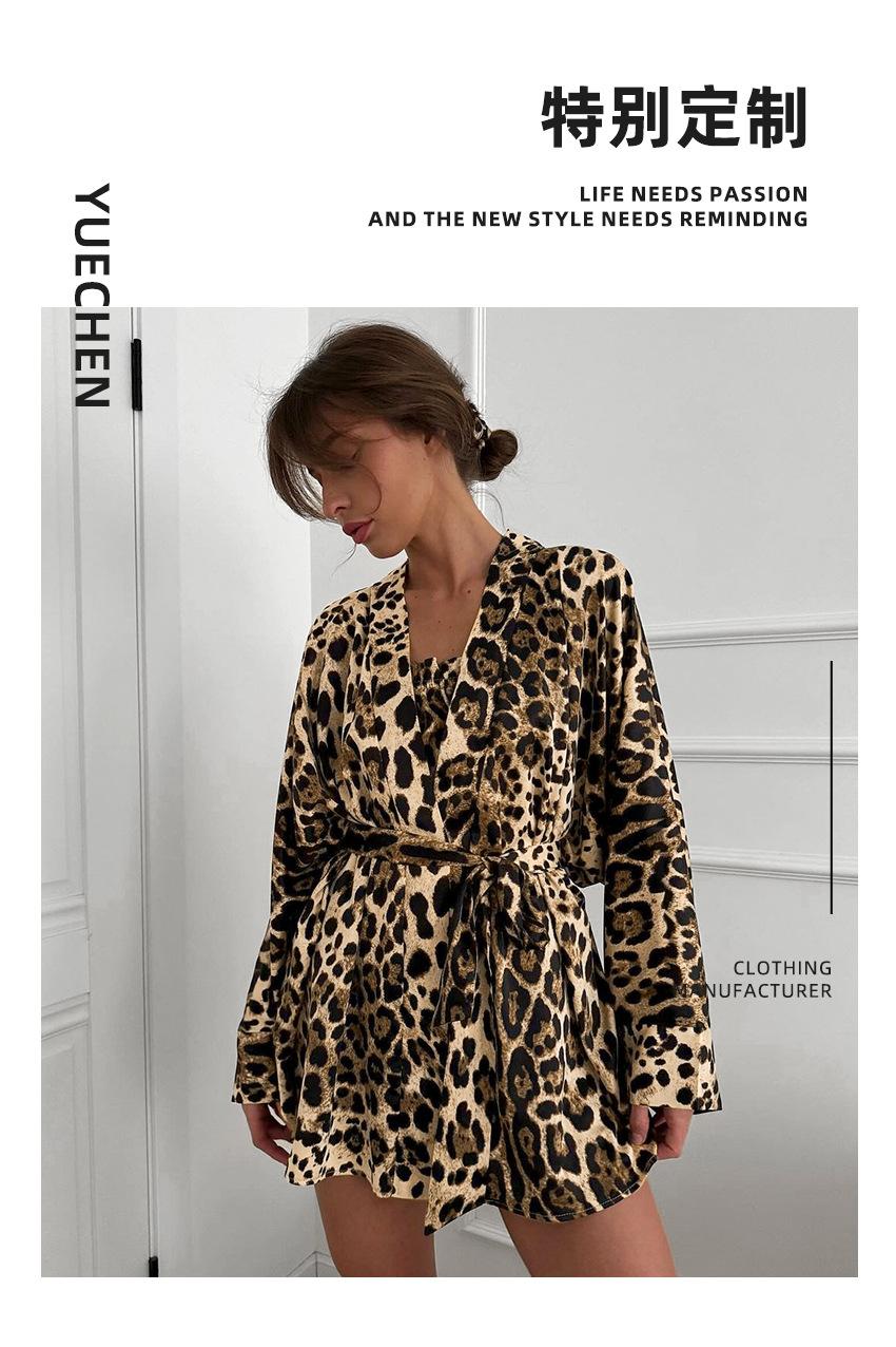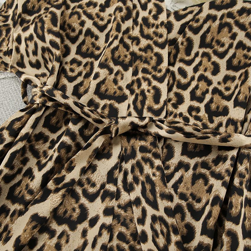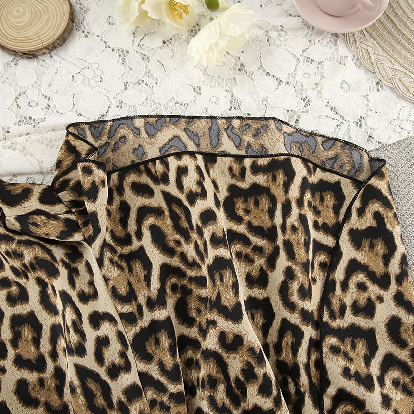 Pijama de verano para mujer, ropa interior de manga larga, transpirable, holgada y cómoda, con estampado de leopardo, estilo europeo y americano, para el hogar