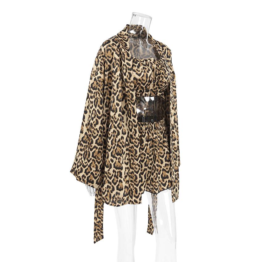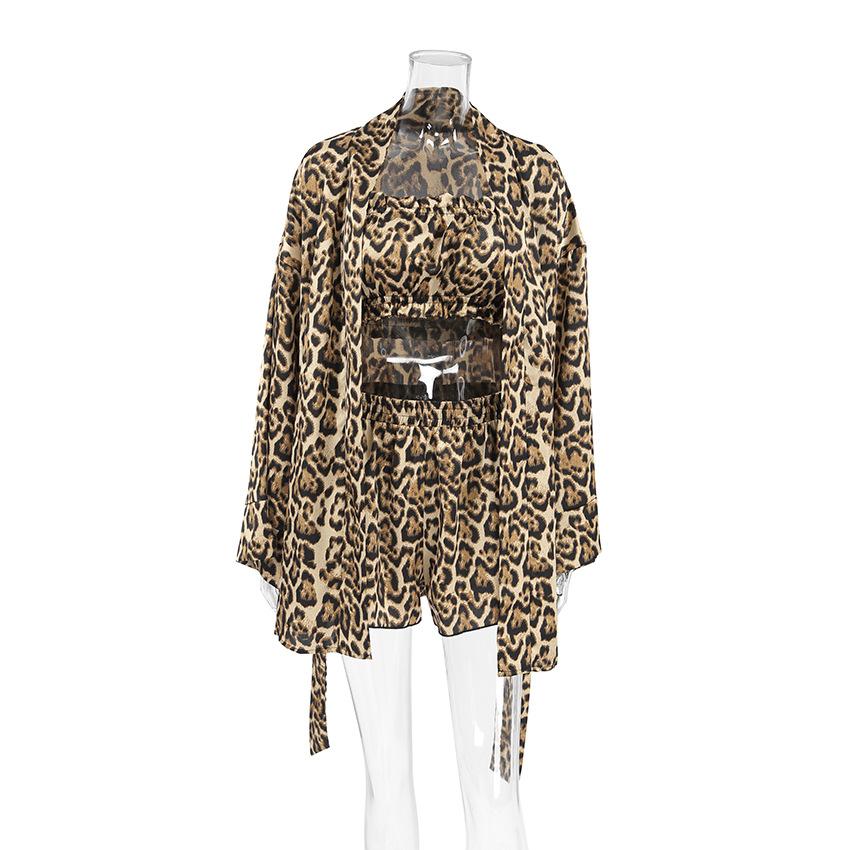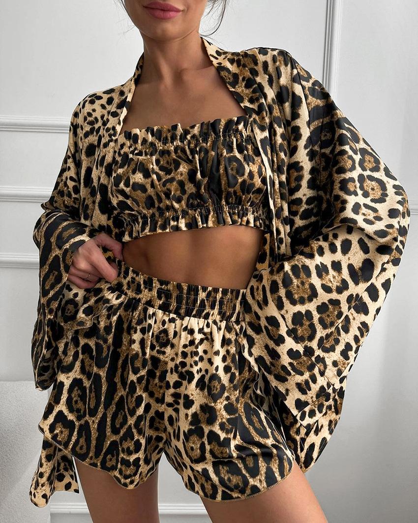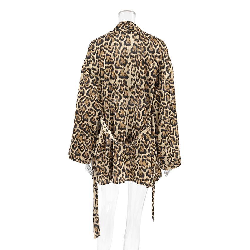 Pijama de verano para mujer, ropa interior de manga larga, transpirable, holgada y cómoda, con estampado de leopardo, estilo europeo y americano, para el hogar