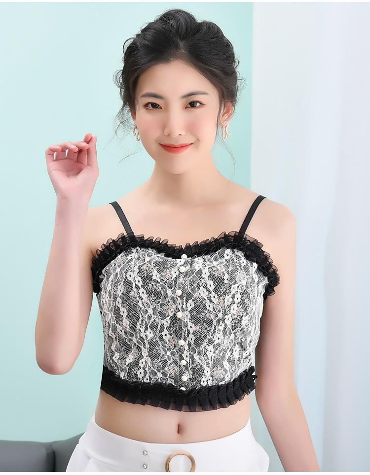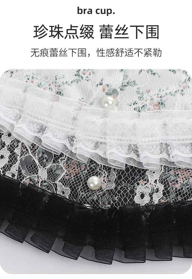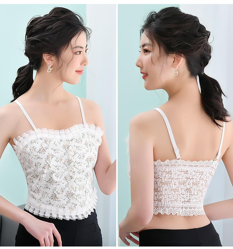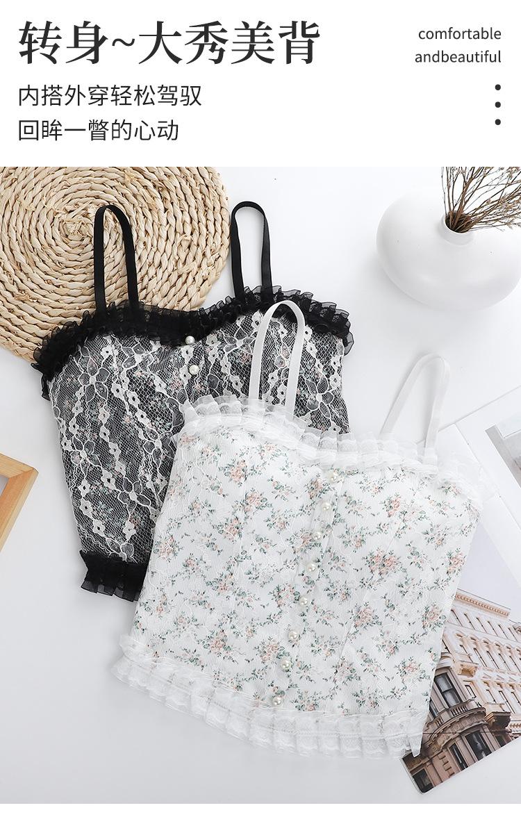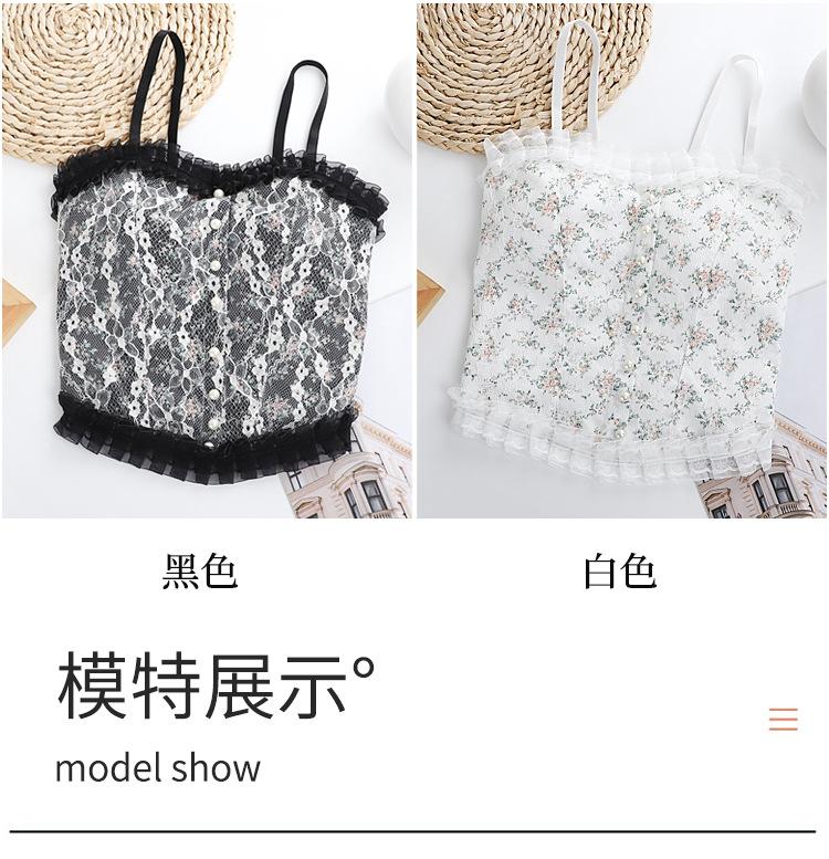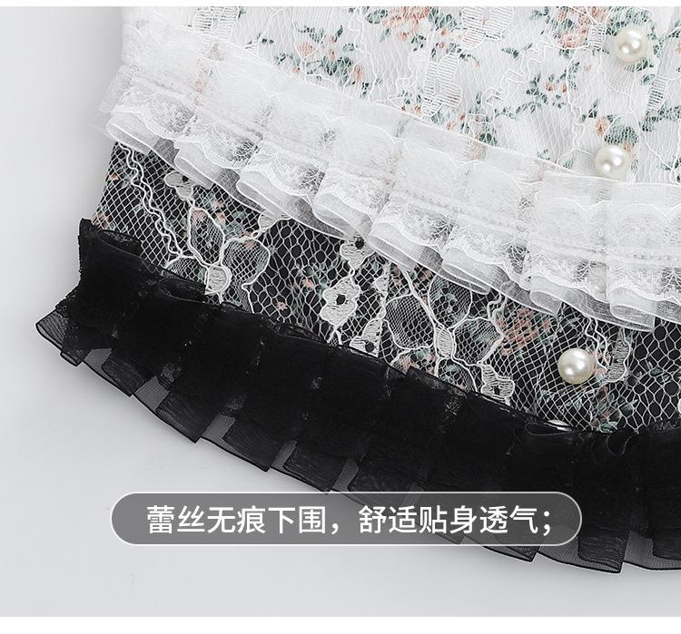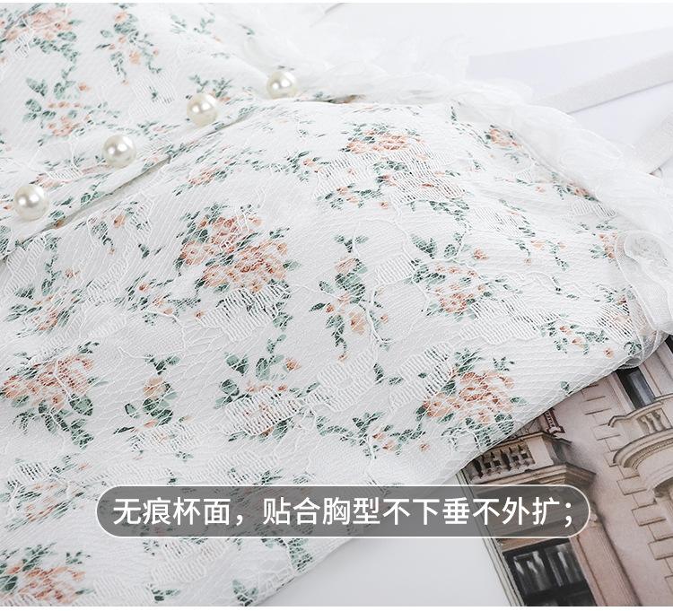 Camisola pequeña de estilo francés con estampado floral estilo occidental para mujer, blusa de verano con base de encaje y almohadilla para el pecho.