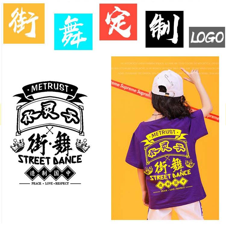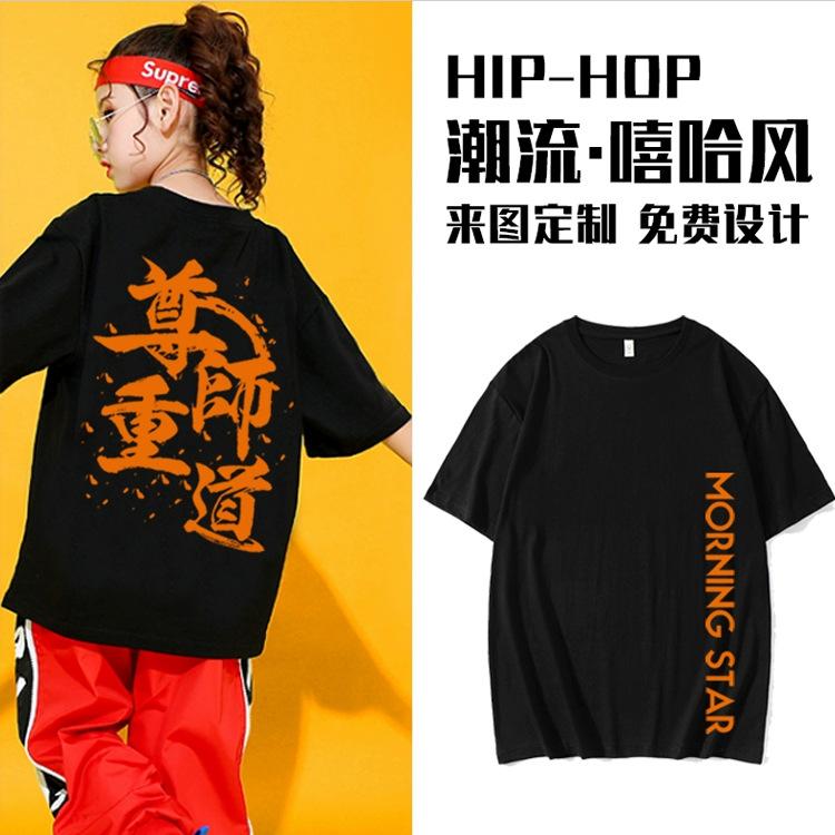 Camiseta infantil de algodón personalizada de hombros caídos y manga corta hip hop Hip Hop Hip Hop uniforme de actuación para clase de baile uniforme de clase logotipo estampado personalizado