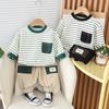 Suéter de rayas para niños, traje para niños, ropa para niños de primavera y otoño, traje de dos piezas para bebé con pantalones de manga larga, entrega de una pieza