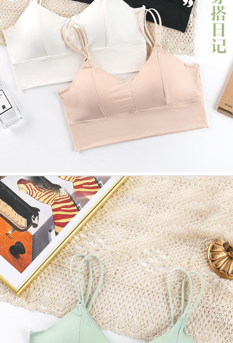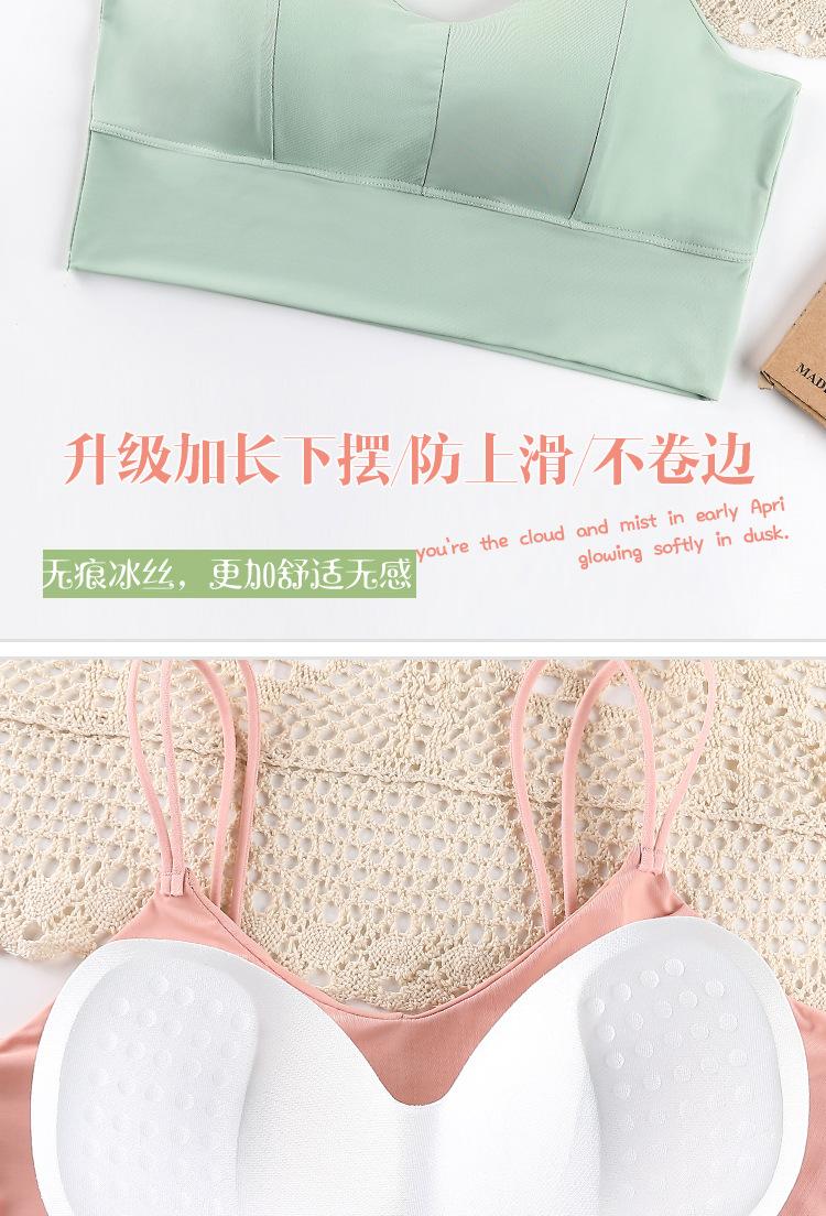 Camisola de estilo nuevo con espalda descubierta, sin costuras, fina, push-up, envolvente, sin aros de acero, de seda helada, con tirantes finos para mujer