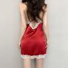 Pijama sexy de verano para mujer, de seda helada, con encaje, puro deseo, con tirantes de viento, camisón sexy para mujer con almohadilla para el pecho, belleza, espalda delgada