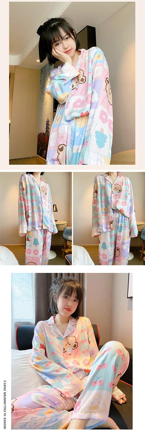 Pijamas de mujer para primavera y otoño, traje para niña, holgado, para estudiantes, dulce, bonito, fresco, prendas de vestir exteriores, cárdigan, ropa para el hogar