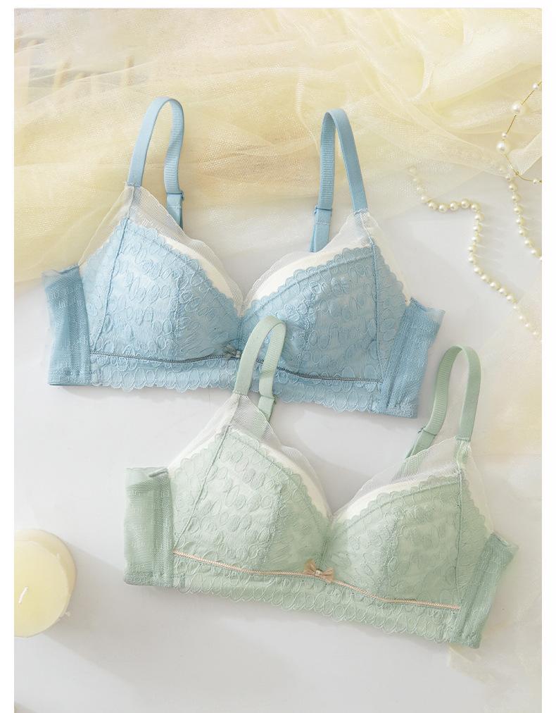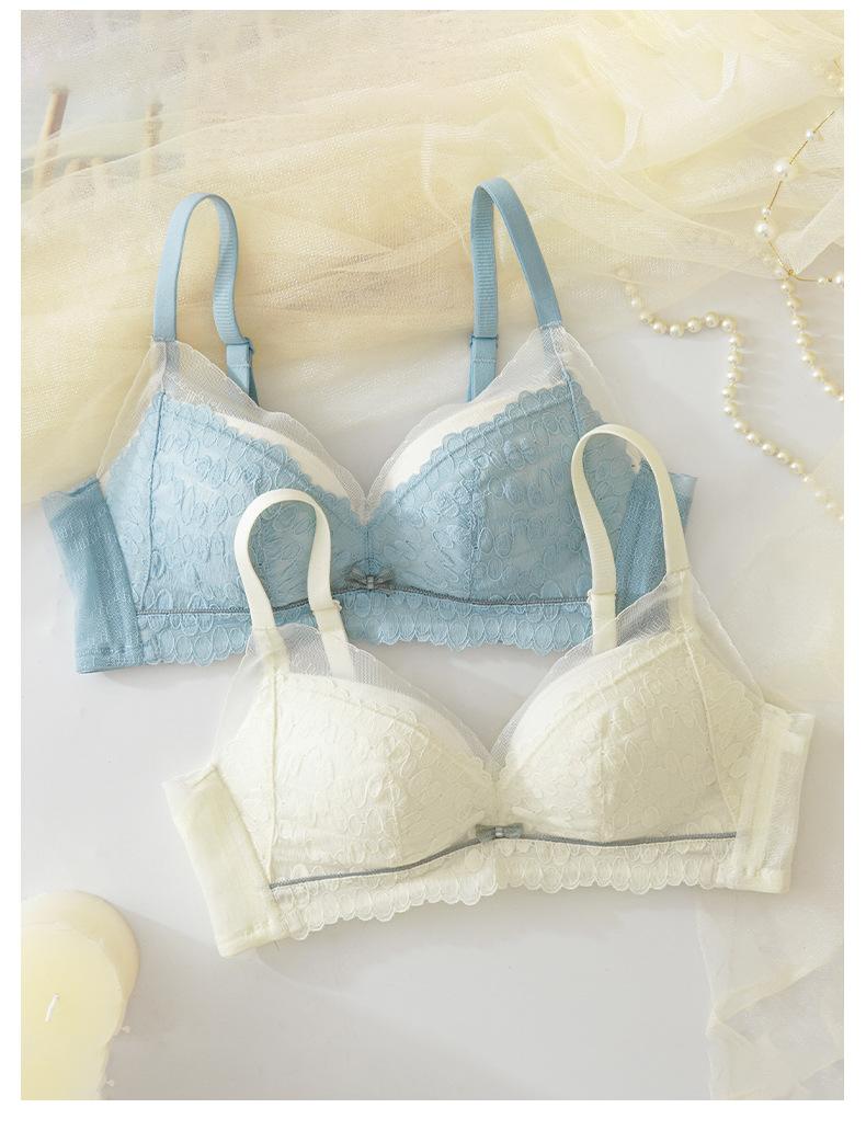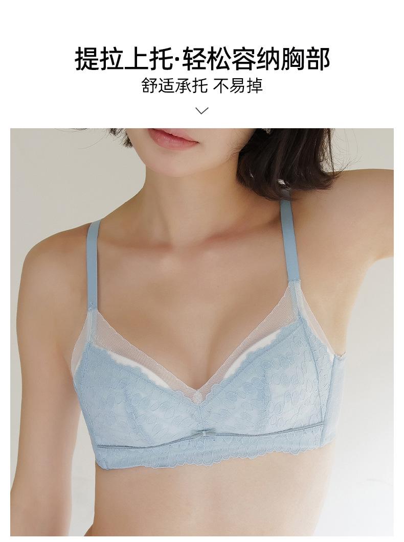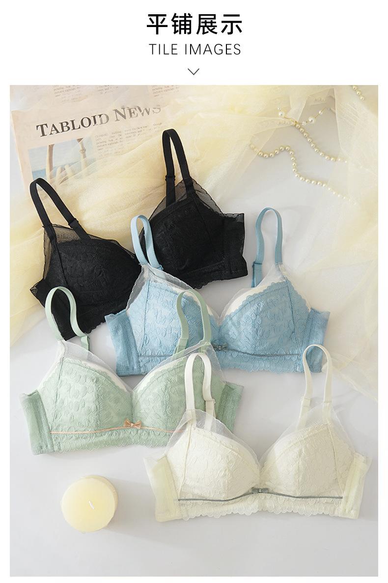 Conjunto de sujetador de encaje fresco para mujer, con fruncido de pecho pequeño, cómodo, transpirable, agradable para la piel, antiflacidez y espalda hermosa.