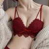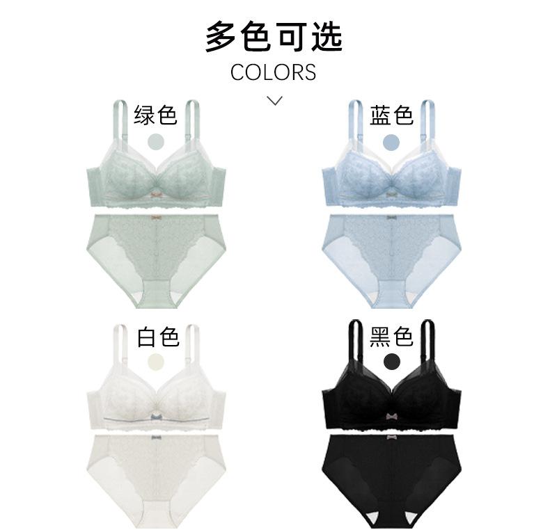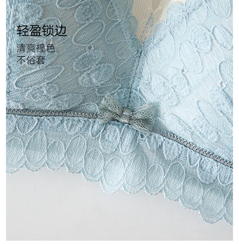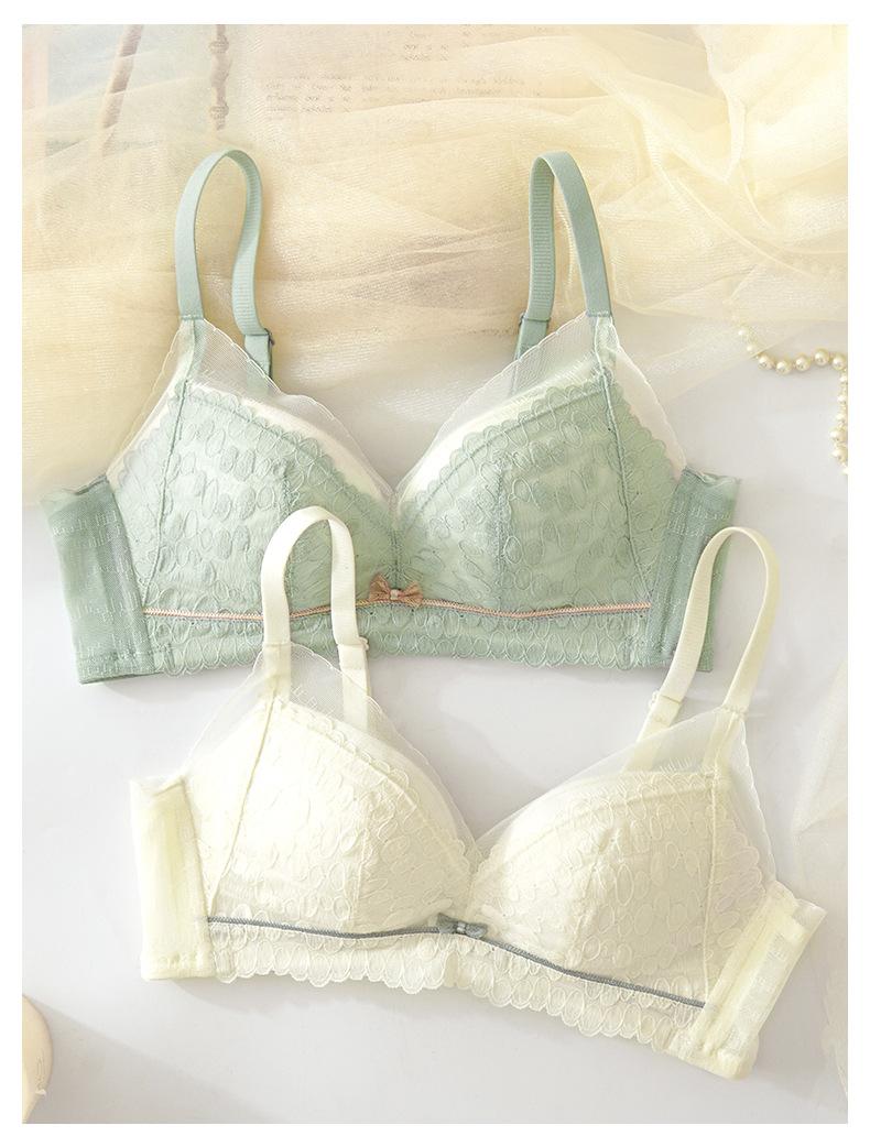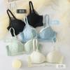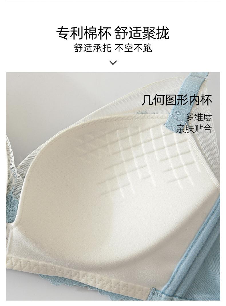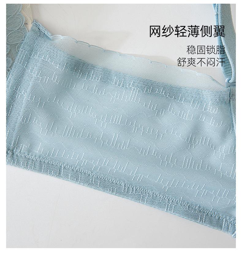 Conjunto de sujetador de encaje fresco para mujer, con fruncido de pecho pequeño, cómodo, transpirable, agradable para la piel, antiflacidez y espalda hermosa.