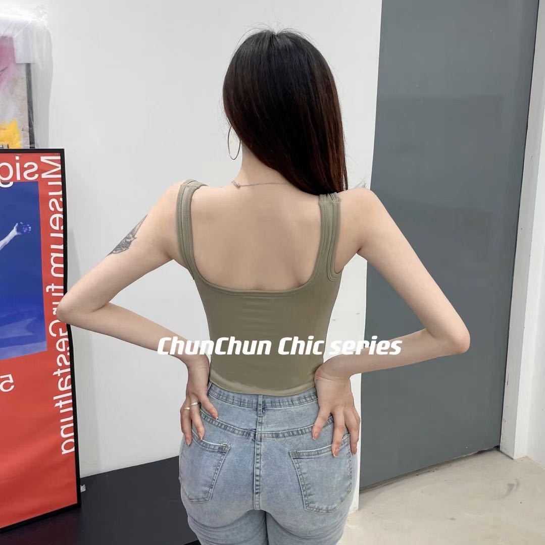 Chaleco de verano nuevo con forma de U para la espalda, con copa fija de una pieza, ropa interior deportiva para yoga