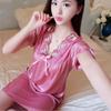 Camisón Vestido de Verano para Mujer Pijama Ropa para el Hogar Manga Corta Sexy Falda Talla Grande Seda de Hielo Camisón de Seda para Mujer