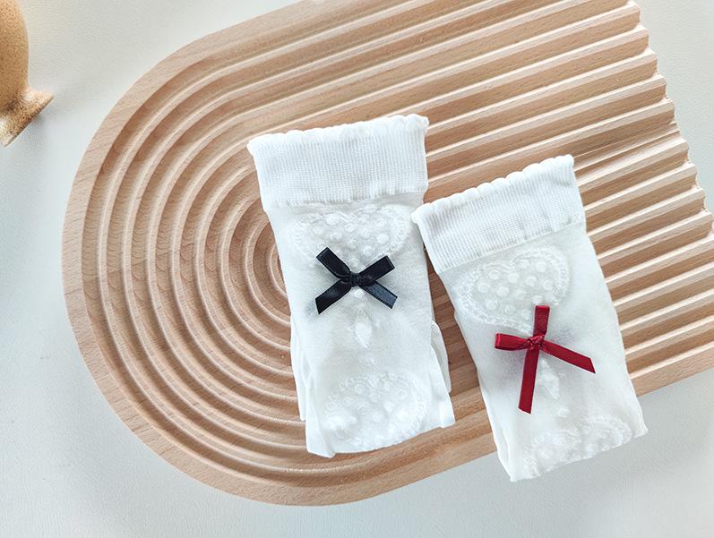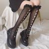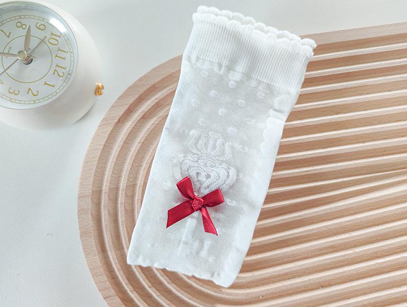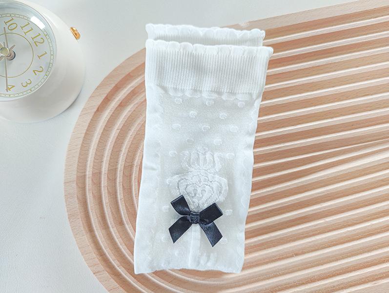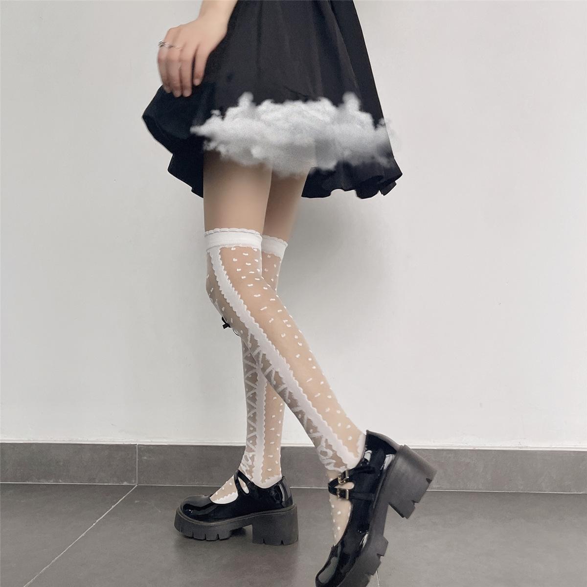 JK Lolita Princesa Hermana Suave Corona Blanca Hecho a Mano Lazo Correa Calcetines Altos hasta la Rodilla Jacquard Transparente Japonés