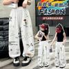[Estilo de Gran Venta] Pantalones Deportivos Estilo Coreano para Niños y Niñas, Pantalones de Chándal Casuales con Cordón y Letras para Niños Estilo Otoño
