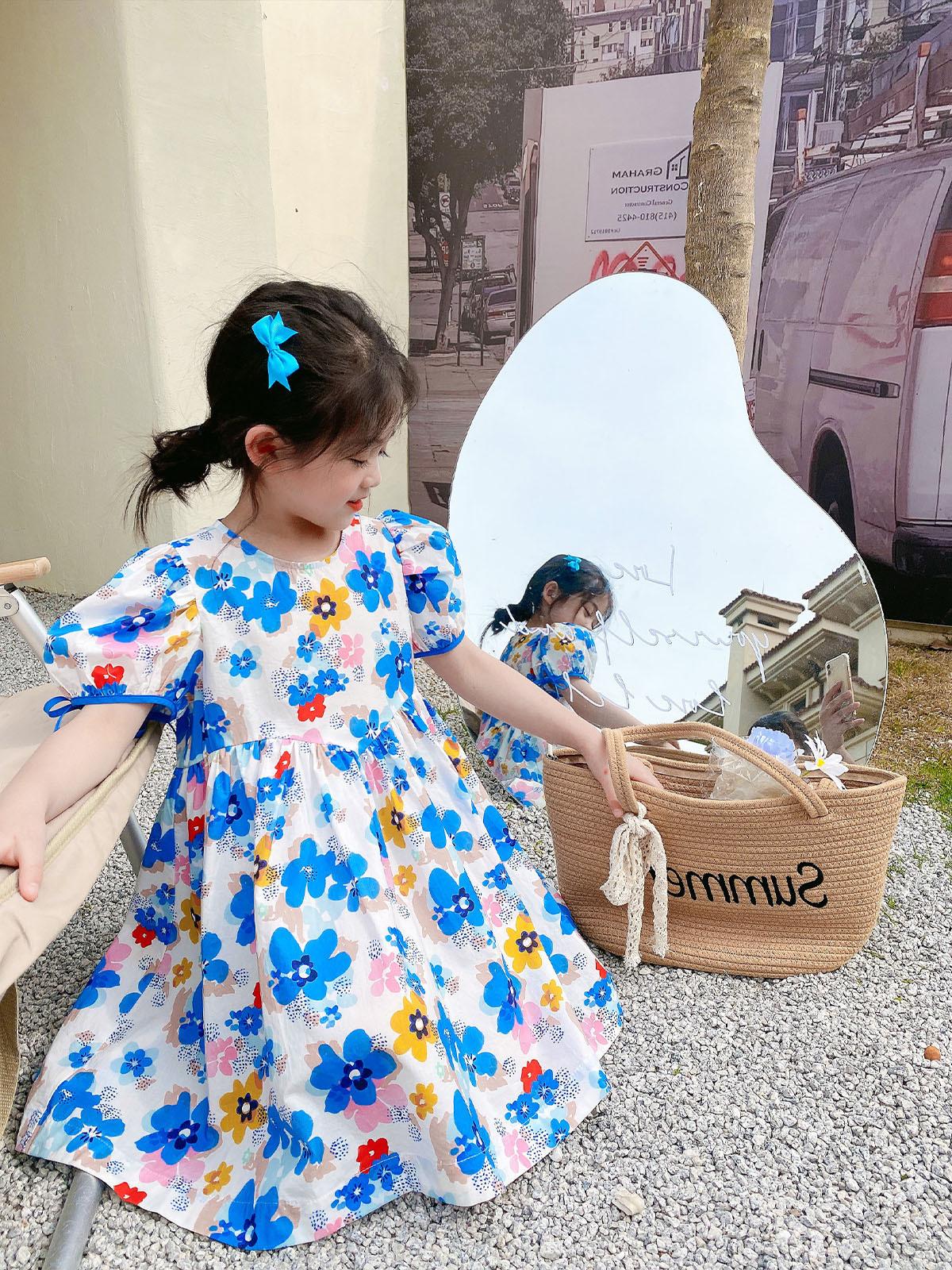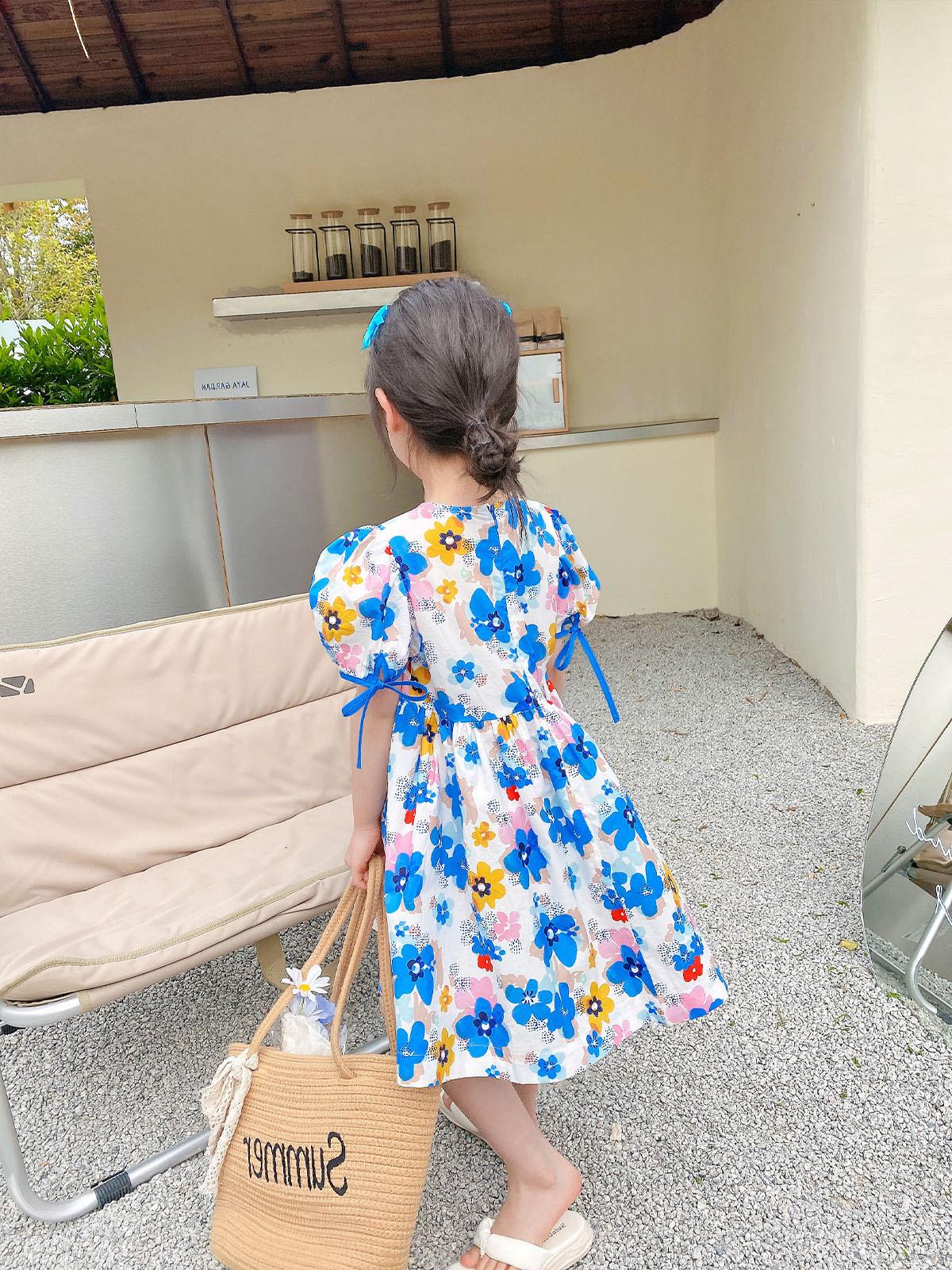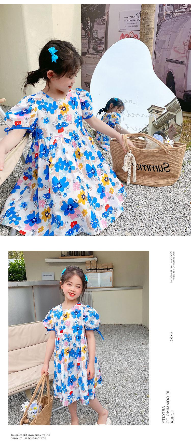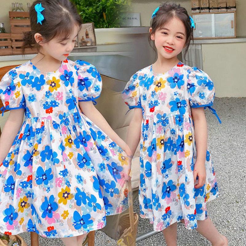 Vestido Dulce de Encaje Floral para Niñas Vestido de Princesa 25 Primavera y Verano Nuevo Comercio Exterior Ropa Infantil al Por Mayor