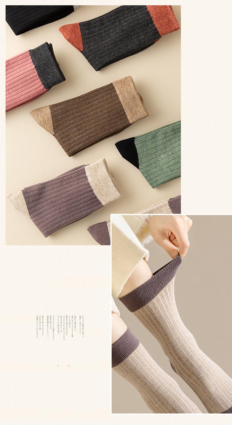 Calcetines de mujer de otoño e invierno, de moda, combinables, de alta gama, Mori, hasta media pantorrilla, estilo preppy, con contraste de color.
