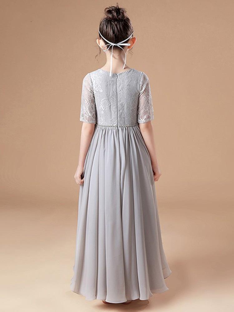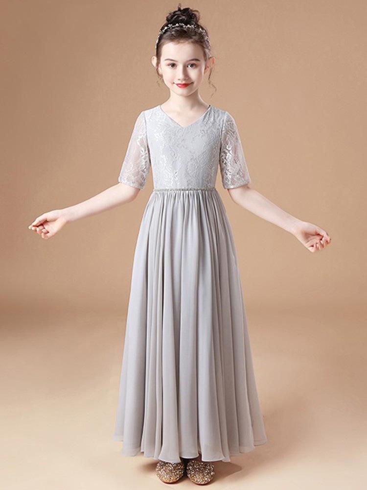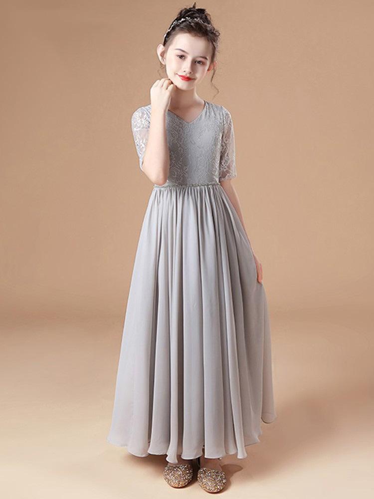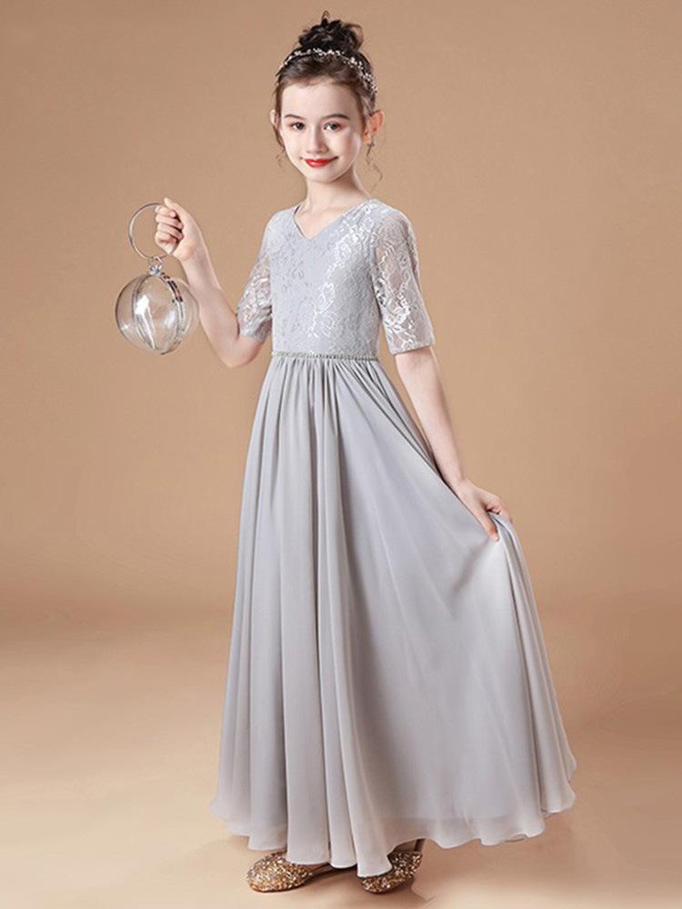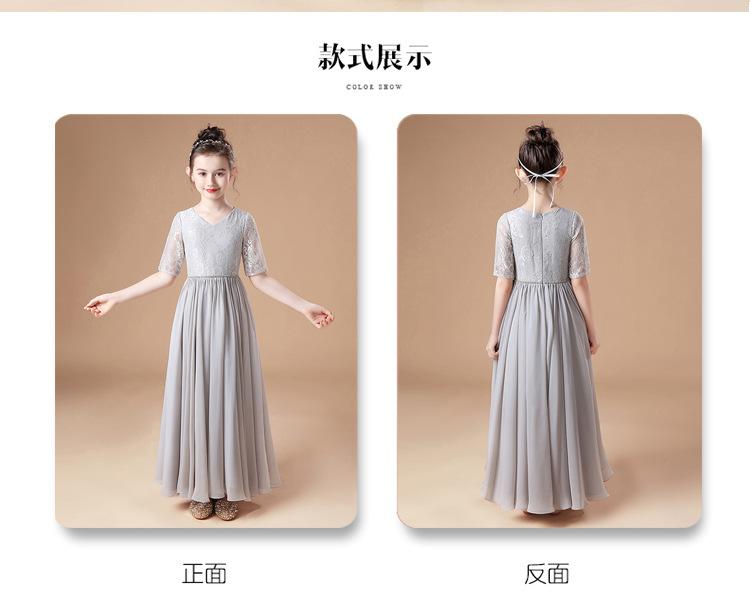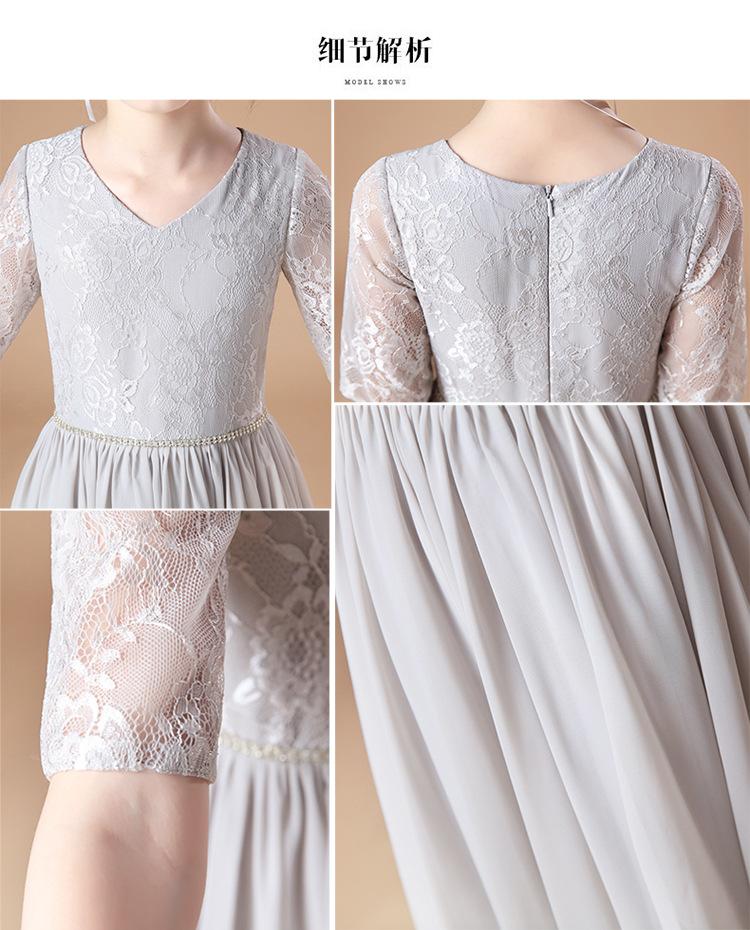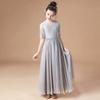 Vestido de Noche para Niñas Aliexpress 2025 Nuevo Vestido para Niños Vestido de Princesa Gris Niña de las Flores Largo Vestido de Actuación de Piano