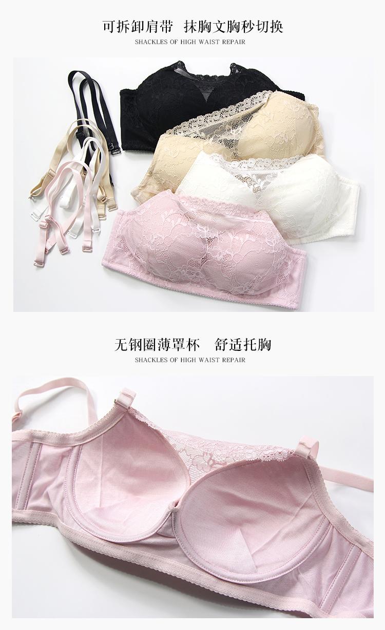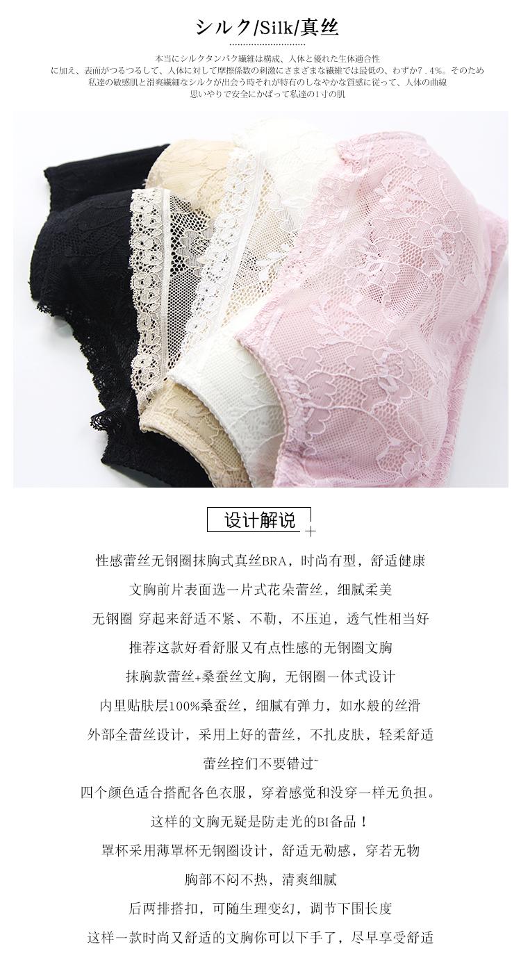 Sujetador de seda para mujer, top de tubo inalámbrico con tirantes antiexposición, ropa interior sexy con encaje hueco envuelto en el pecho, ropa interior fina de verano para mujer
