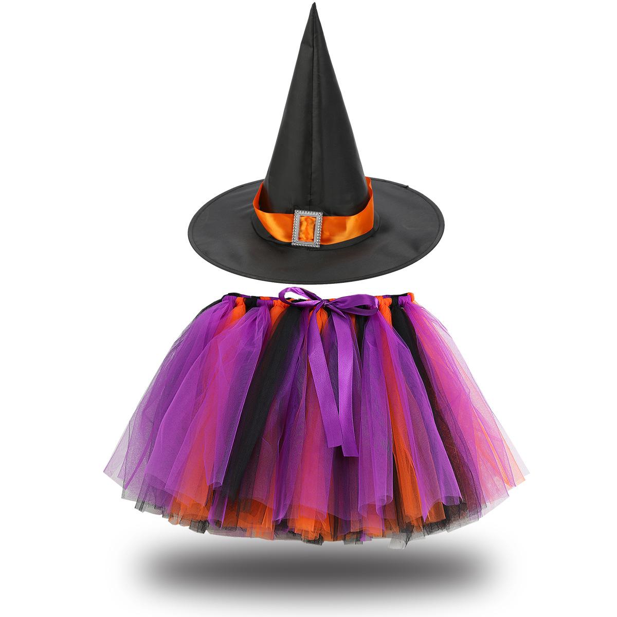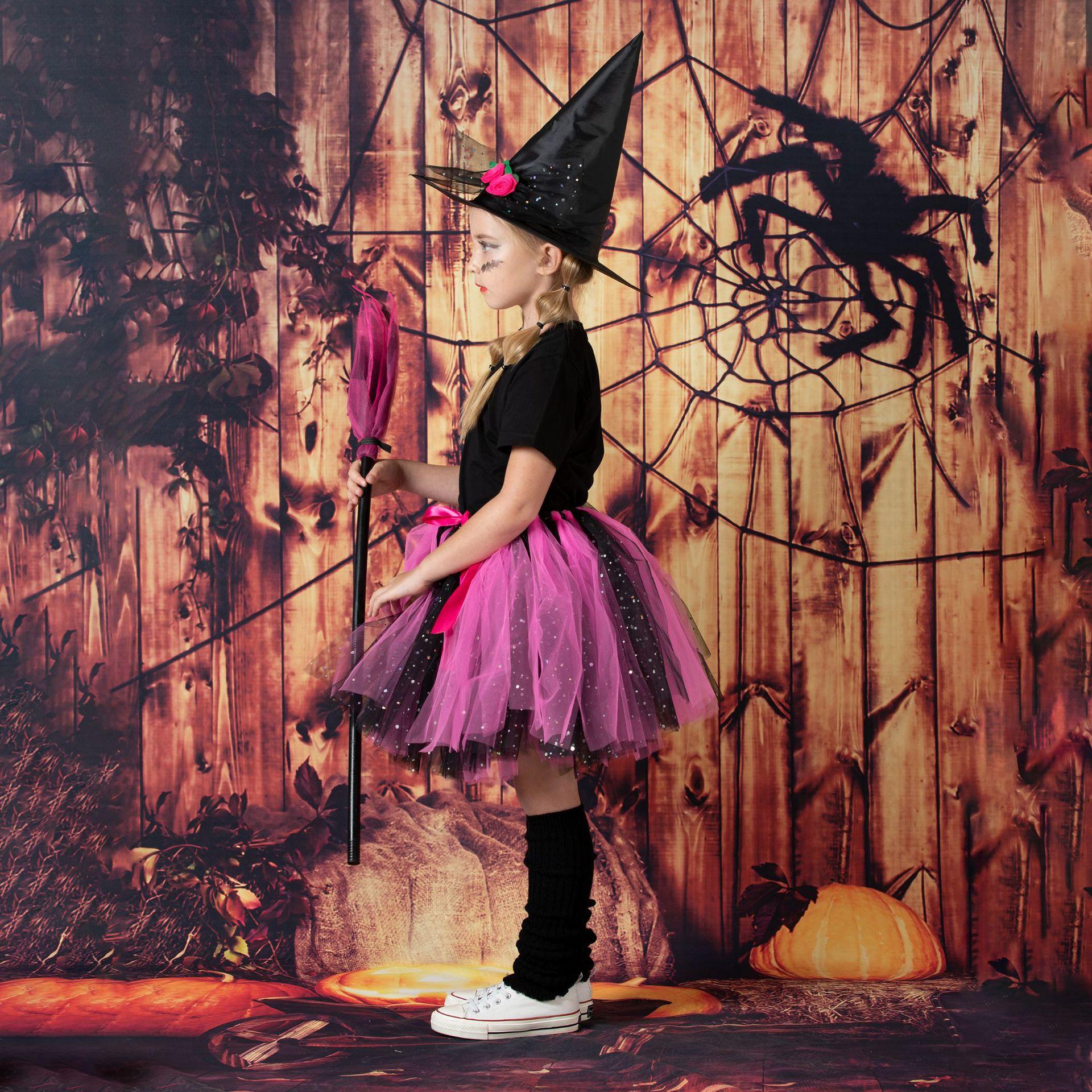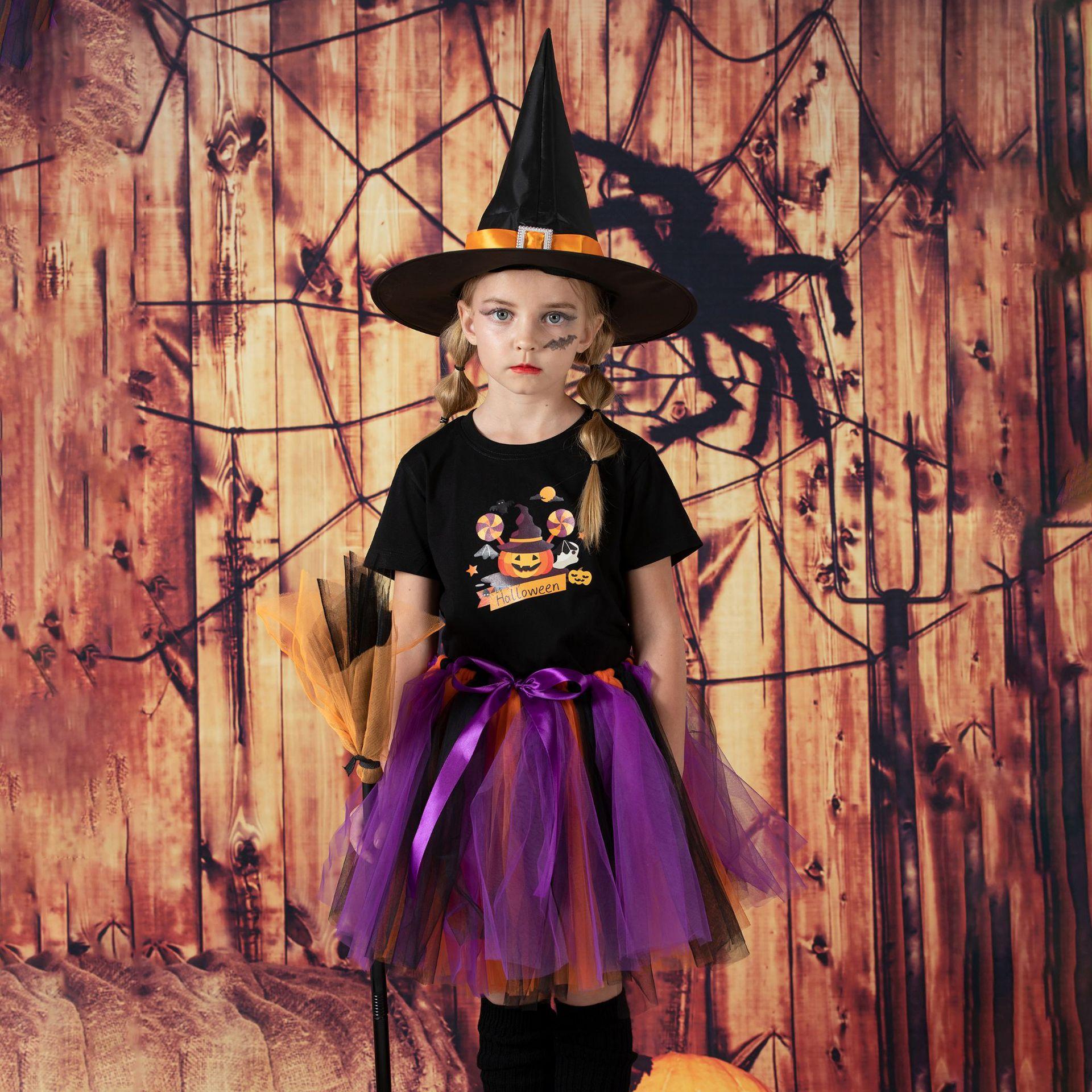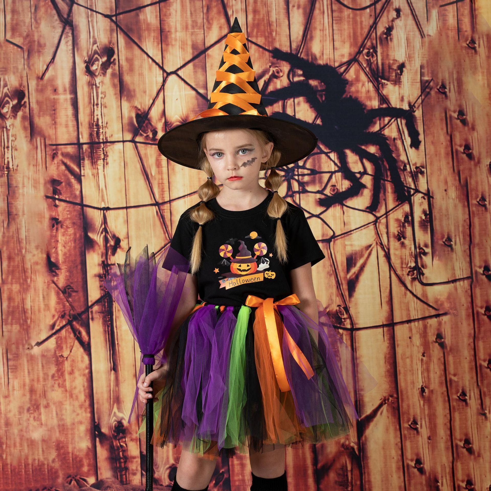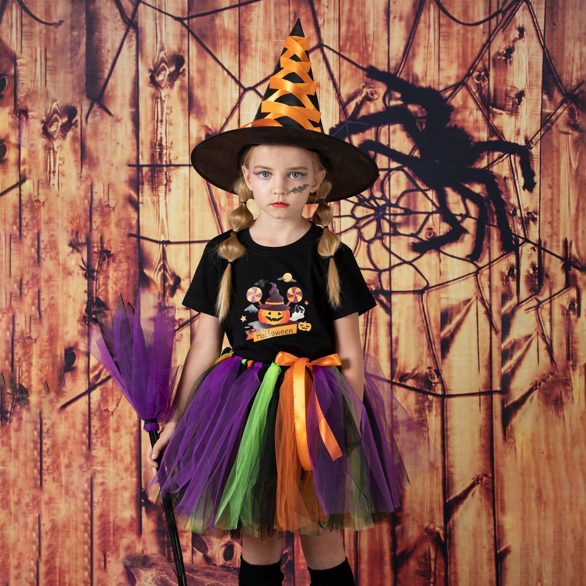 Disfraz de Halloween, traje de bruja de malla atada a mano, falda infantil, falda tutú abullonada europea y americana