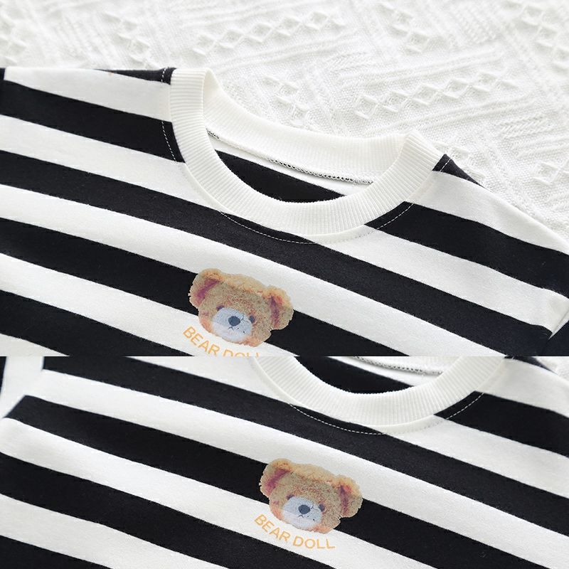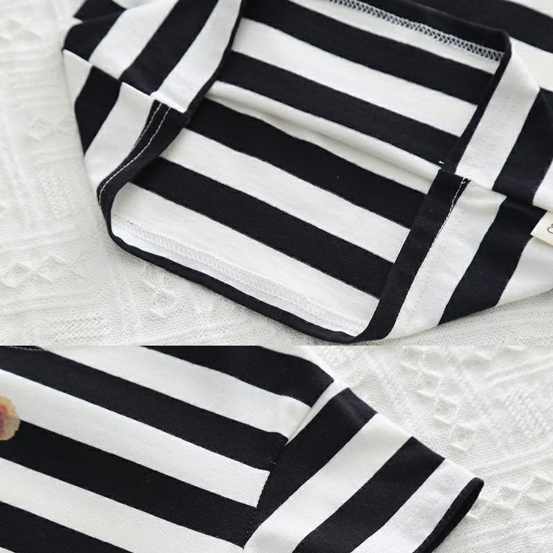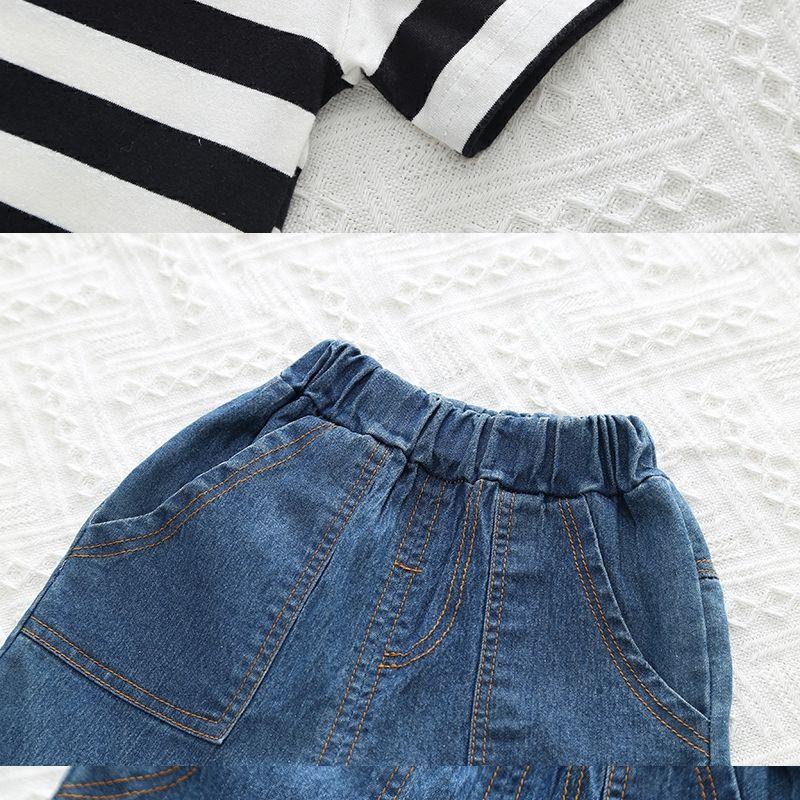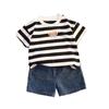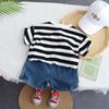 Traje de verano para niños, camiseta para bebés, pantalones cortos vaqueros de dos piezas, moda a rayas, manga corta, venta al por mayor