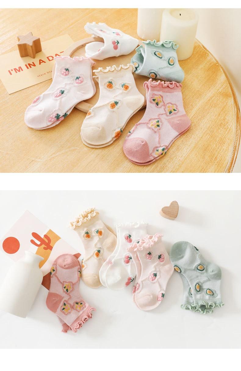 Calcetines de verano para niños, de malla fina, nuevos calcetines de algodón con orejas de madera y dibujos animados de frutas, japoneses, venta al por mayor