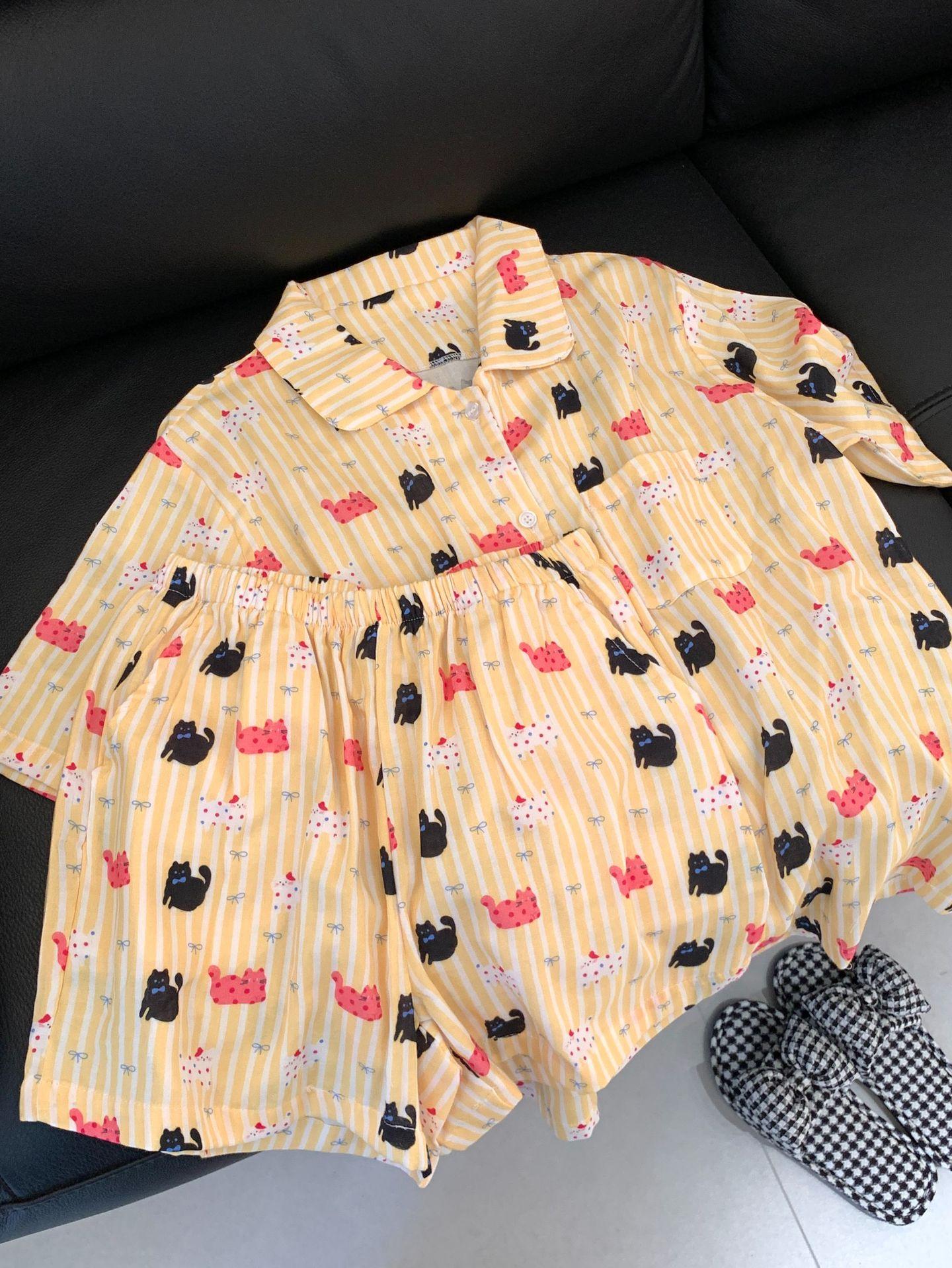 Yellow Stripe Wave Dot Cat (Short Sleeve Shorts)