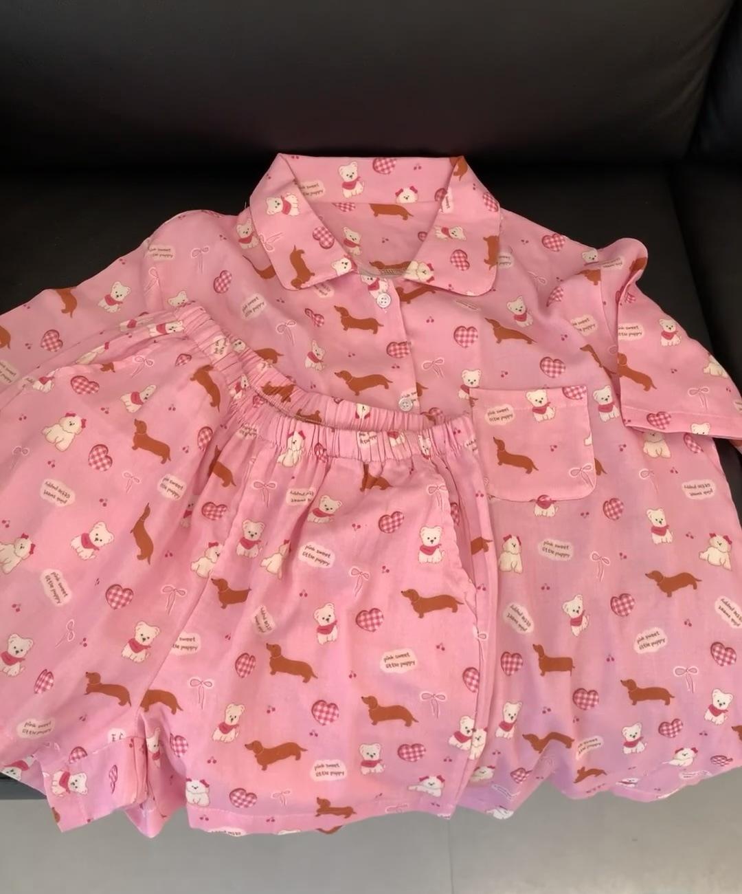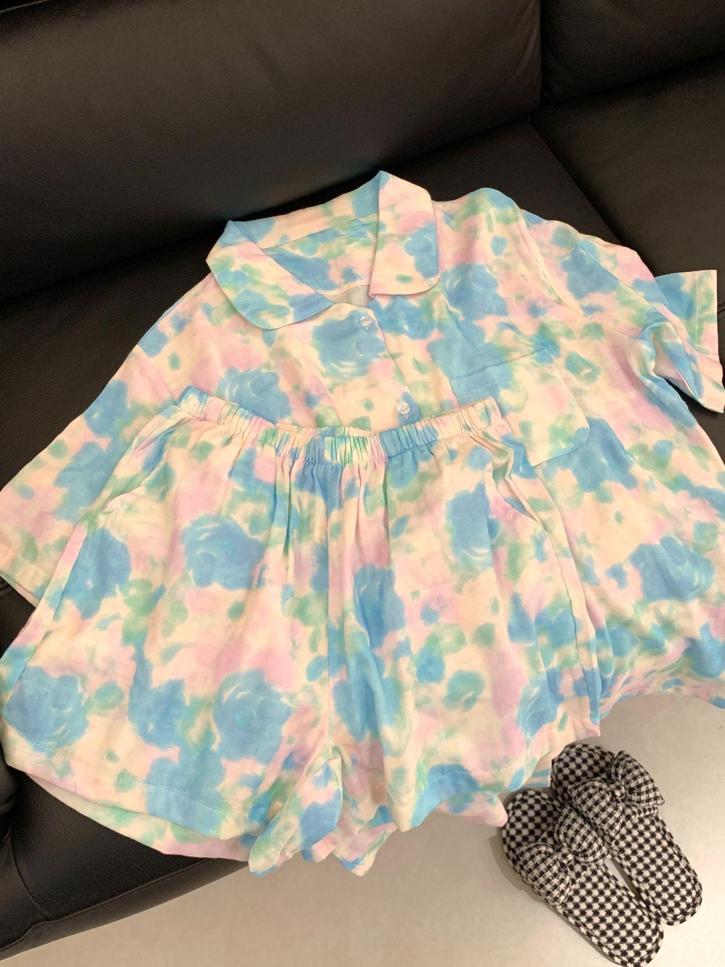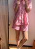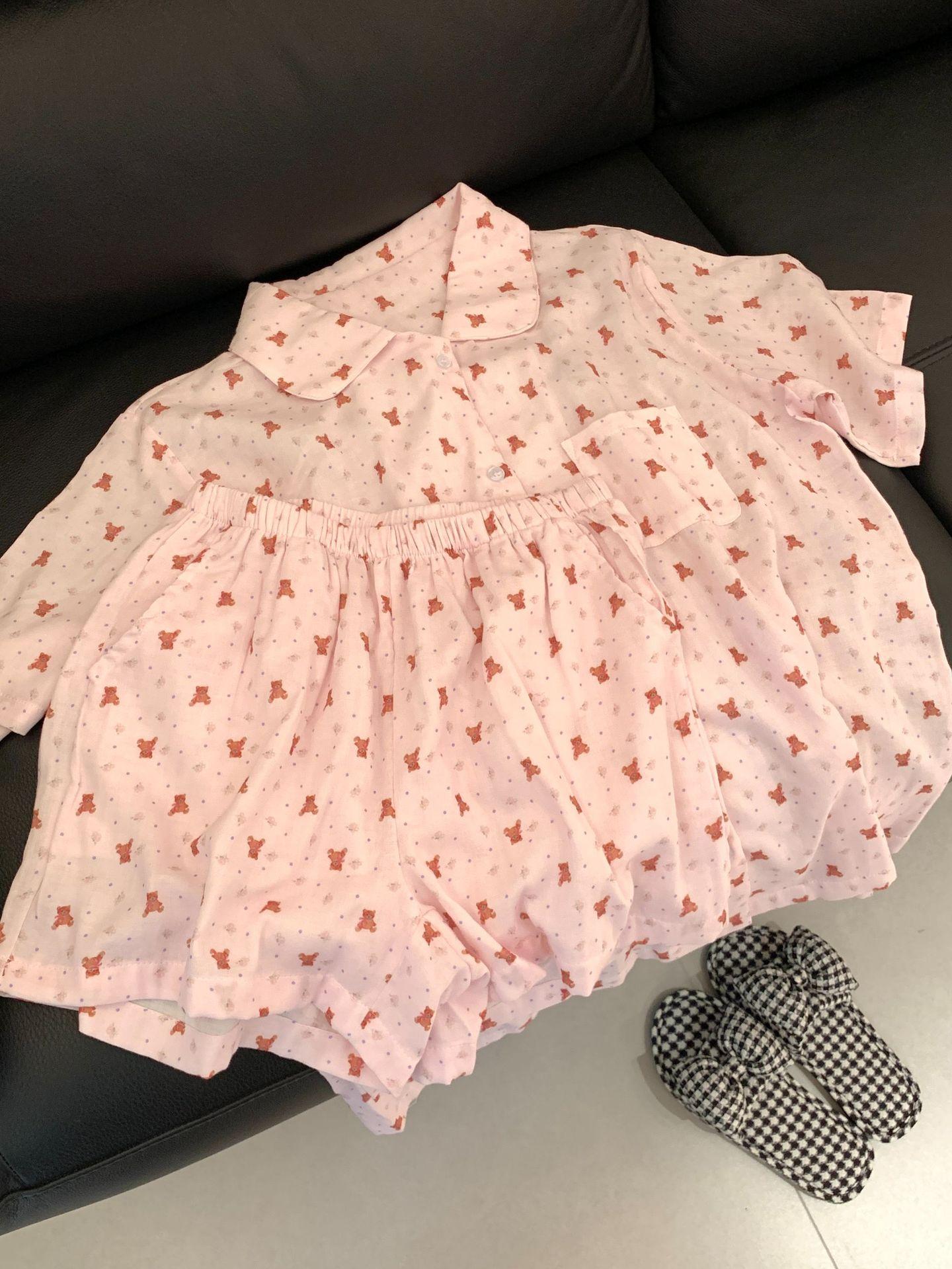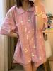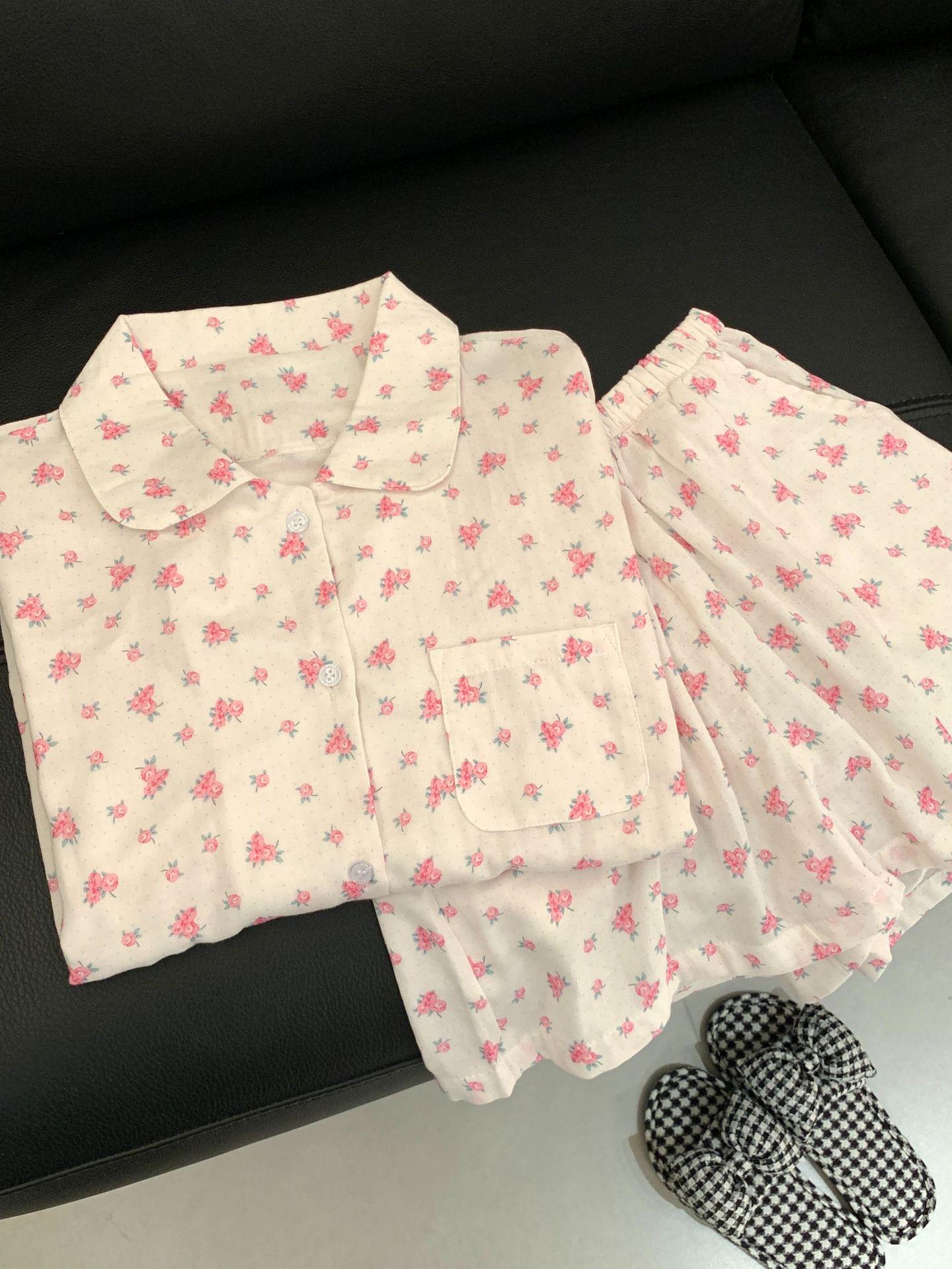 Pijama corto holgado de manga corta con cuello de muñeca de gasa doble de algodón, ropa de casa, verano 2024
