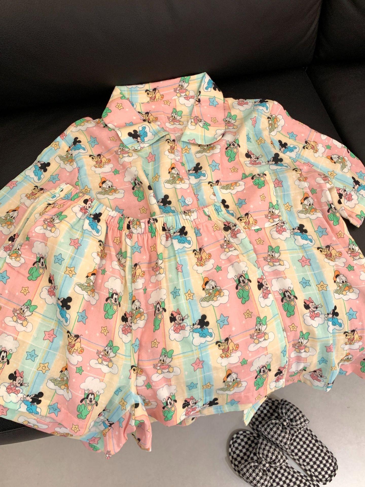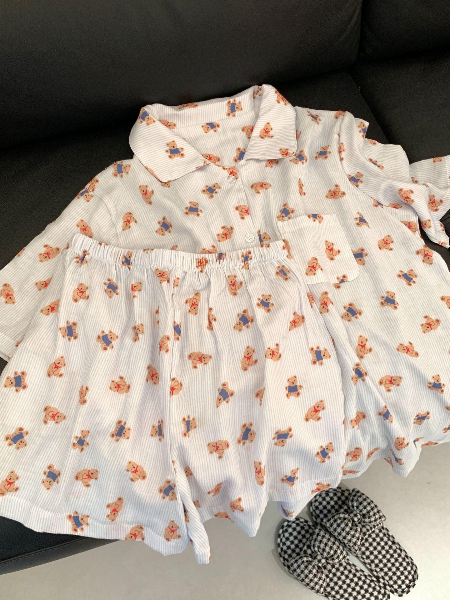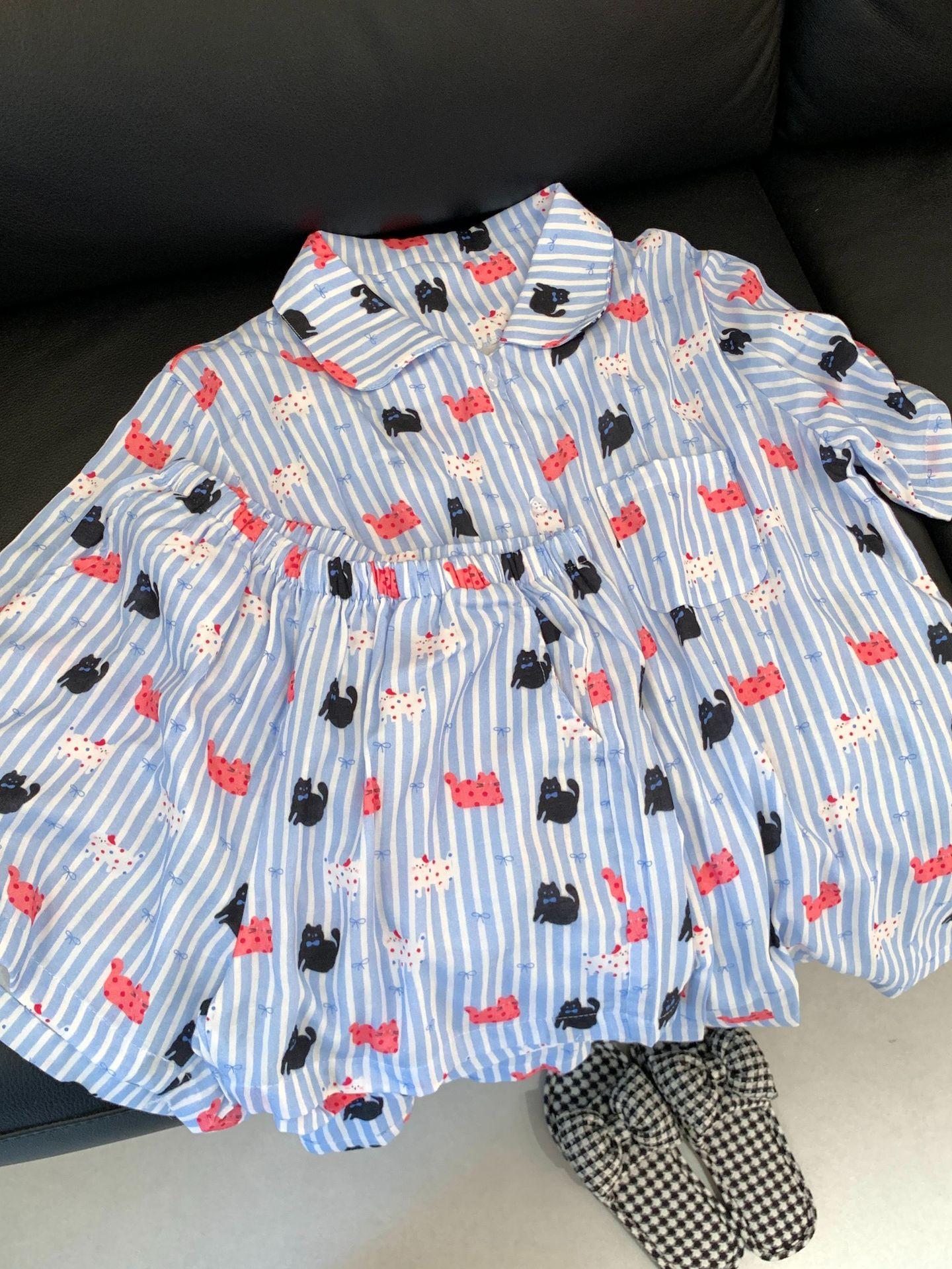 Blue striped polka dot cat (short sleeves + shorts), Light blue striped bear (short sleeves + shorts), Yellow ...