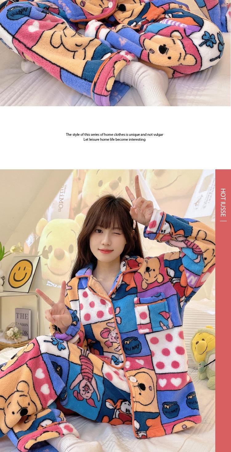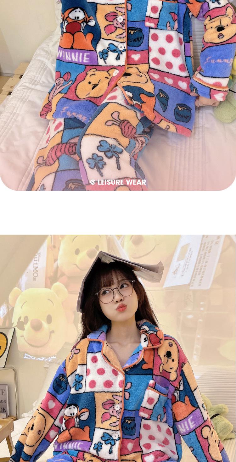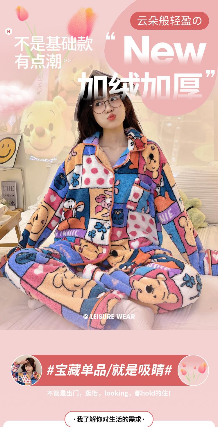 Dulce Niña Winnie Poole Pijama de Franela para Mujer Otoño e Invierno con Forro Polar Grueso de Coral Velloso Traje de Ropa para el Hogar Venta al por Mayor