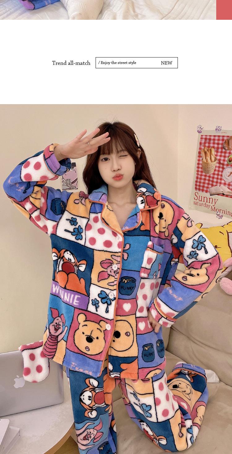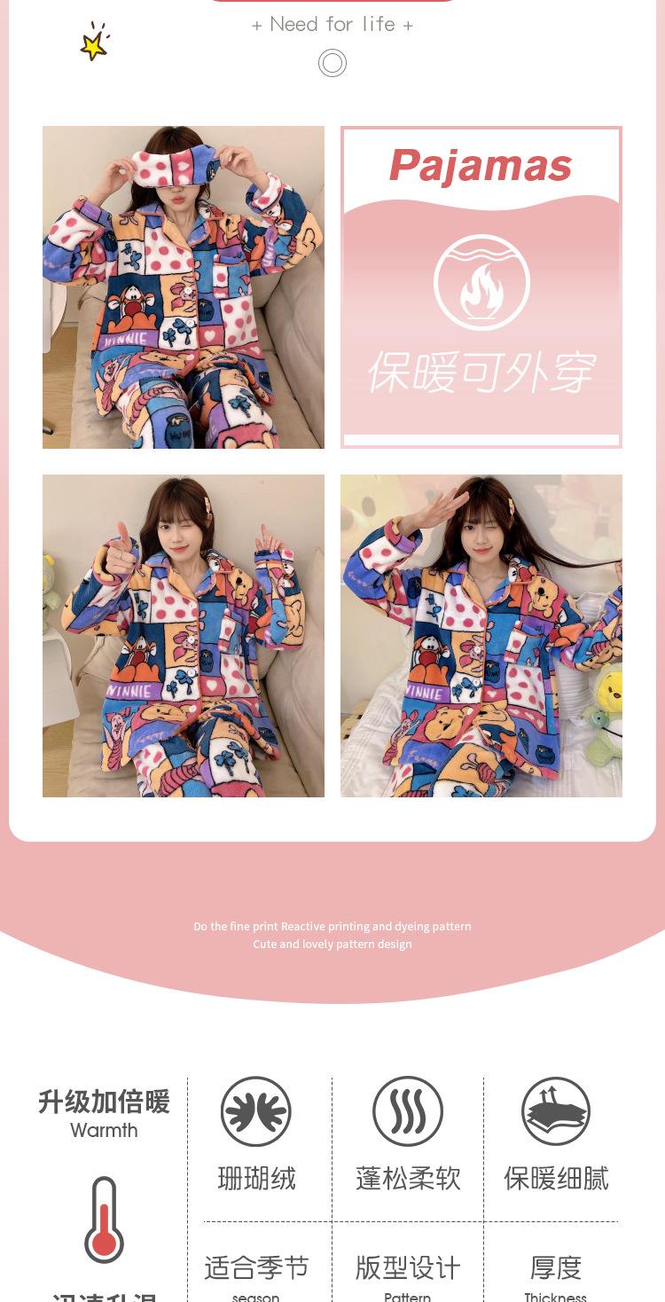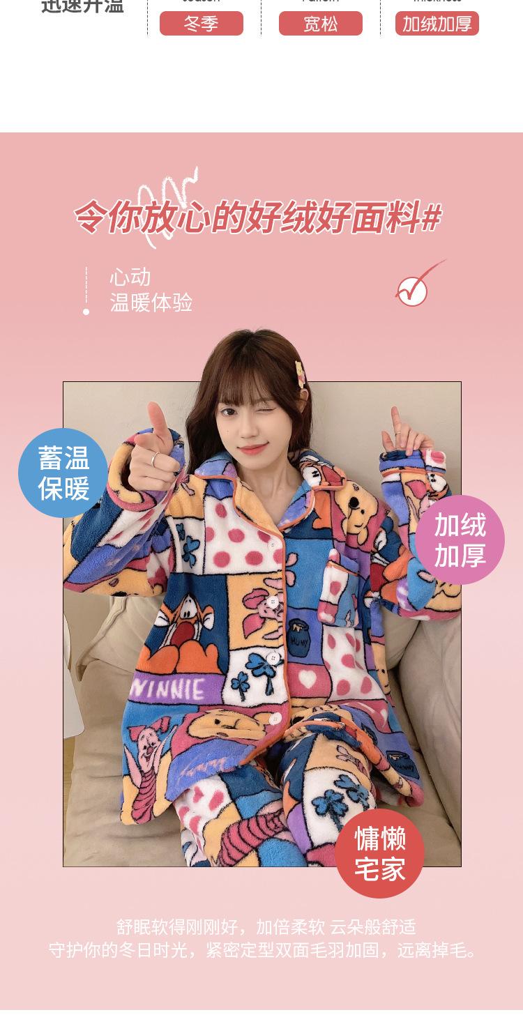 Dulce Niña Winnie Poole Pijama de Franela para Mujer Otoño e Invierno con Forro Polar Grueso de Coral Velloso Traje de Ropa para el Hogar Venta al por Mayor