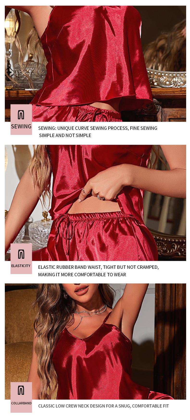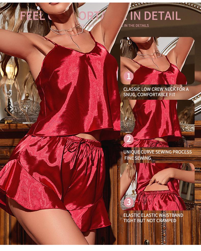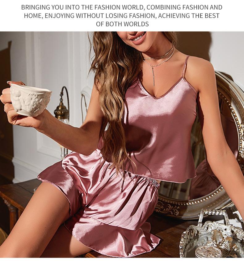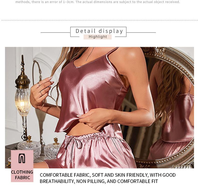 Pijama de seda de hielo de verano para mujer, sexy, de color sólido, con tirantes, pantalones cortos, traje de seda de imitación, ropa exterior fina para el hogar