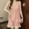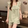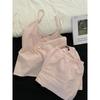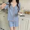 Pijama Coreano Ins de Contraste para Mujer Verano 2024 Nuevo Manga Corta Shorts Cárdigan Suelto Estudiante Ropa de Casa Traje