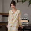 Pijama ligero de verano para mujer estilo pastoral japonés, primavera y otoño, fino, algodón puro, doble gasa, manga tres cuartos, ropa para el hogar