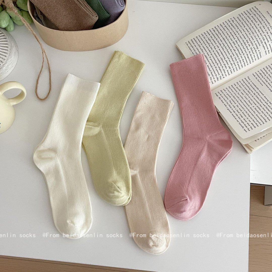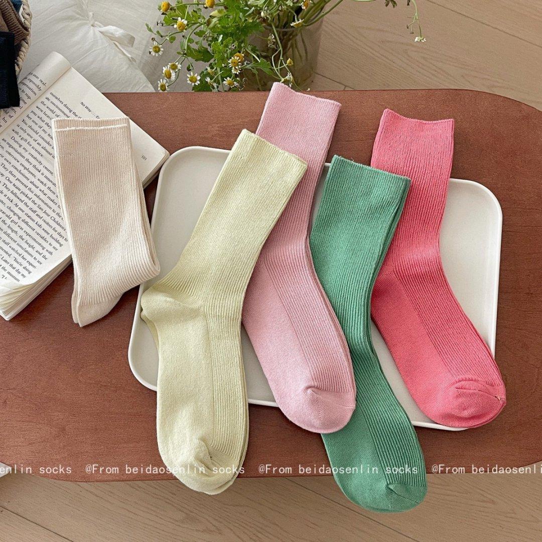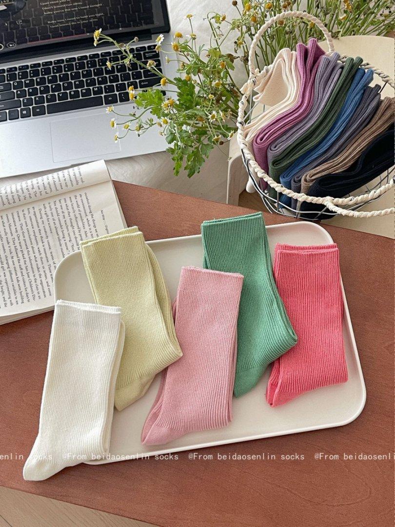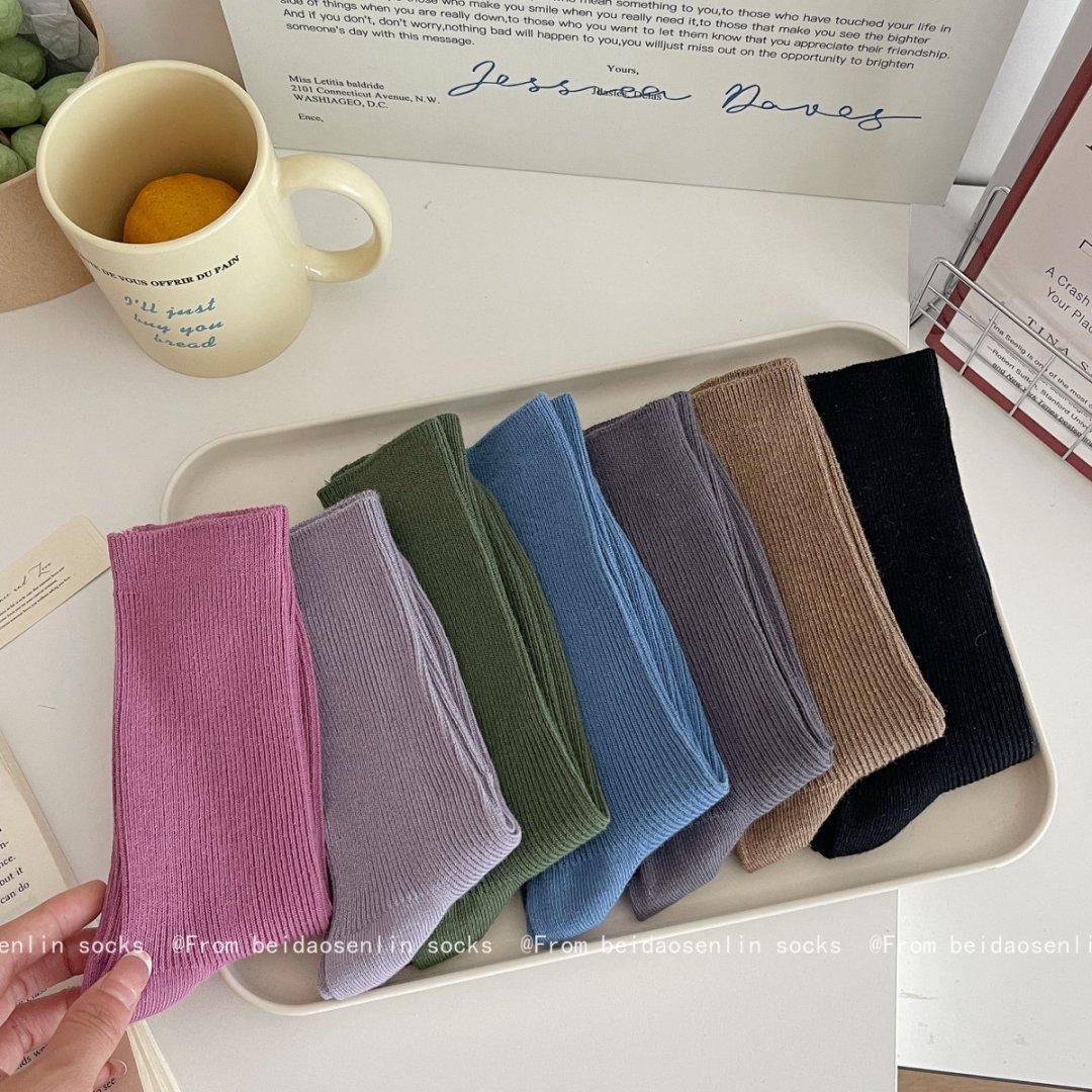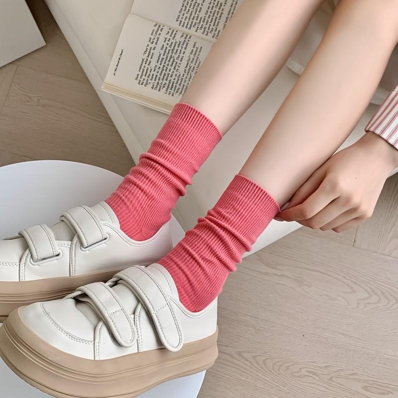 Calcetines Finos de Verano Calcetines de Rizo Ins Modernos de Algodón Finos Estilo Japonés Color Puro Media Caña Estilo Preppy Versátil Estilo Bosque