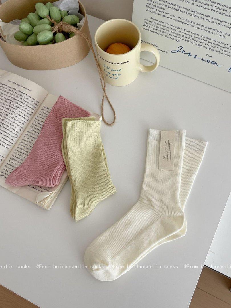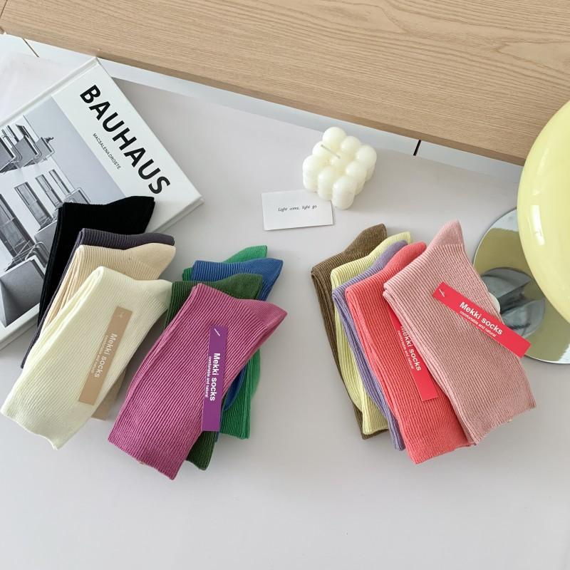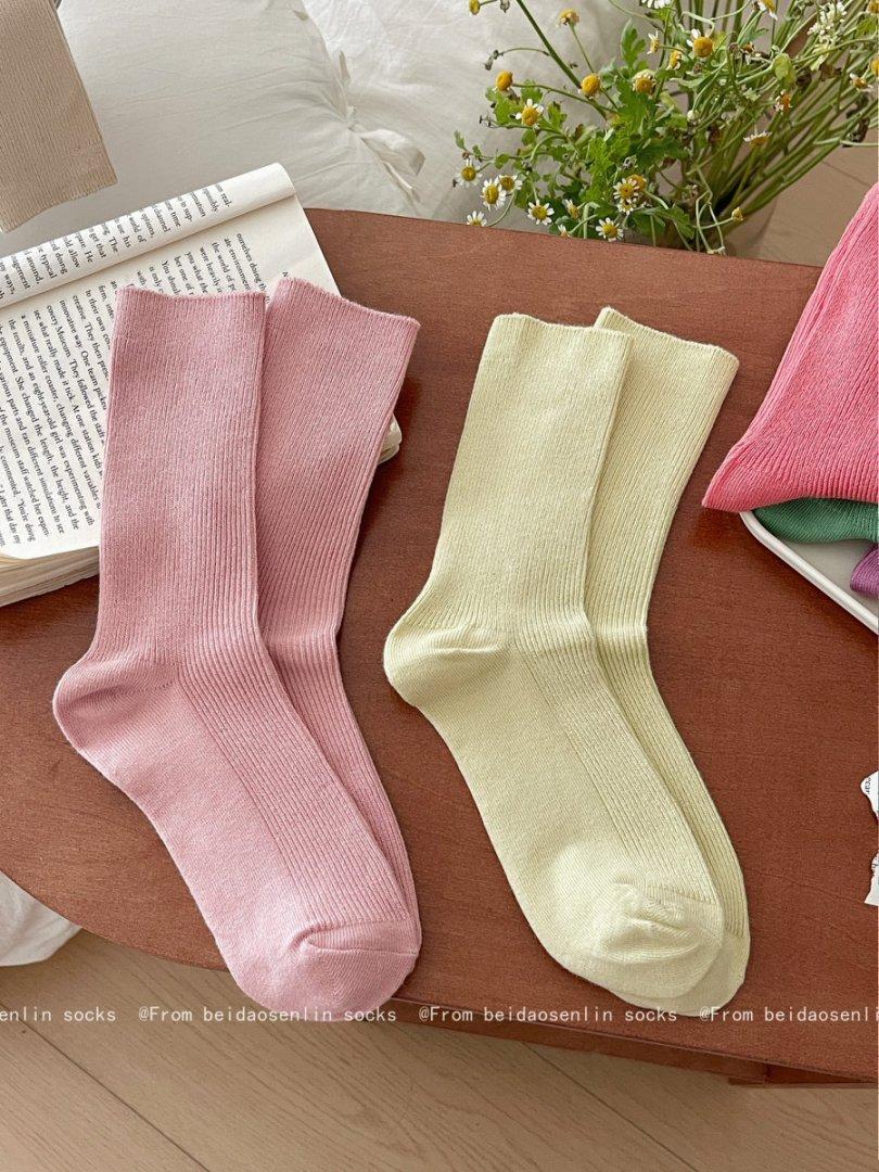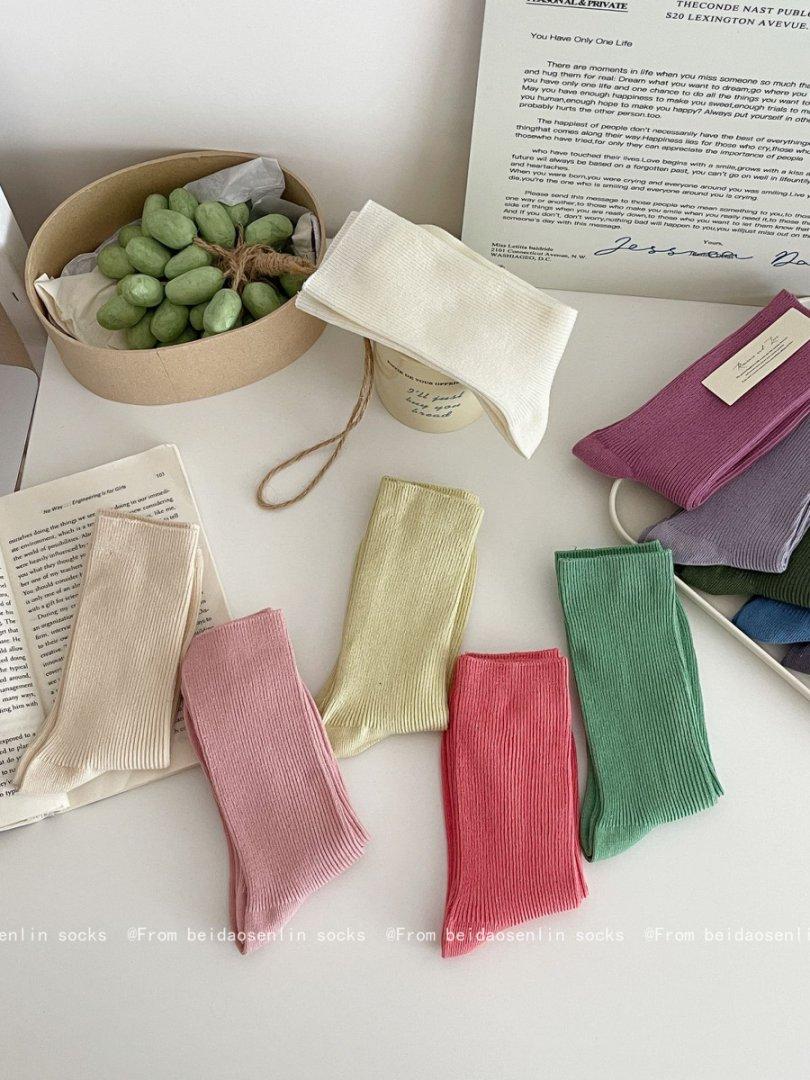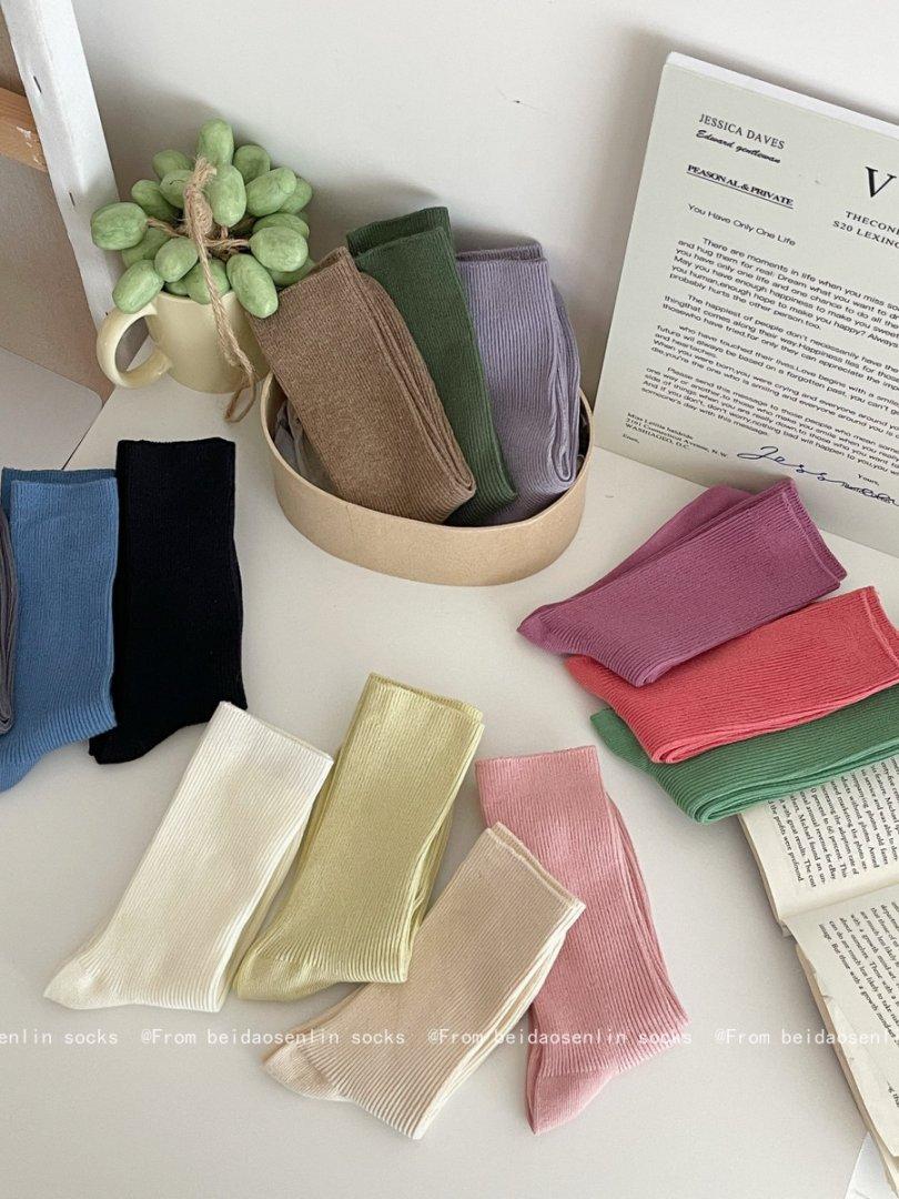 Calcetines Finos de Verano Calcetines de Rizo Ins Modernos de Algodón Finos Estilo Japonés Color Puro Media Caña Estilo Preppy Versátil Estilo Bosque