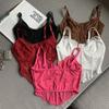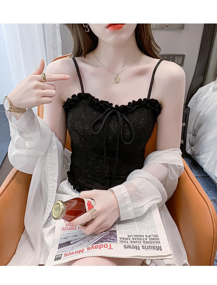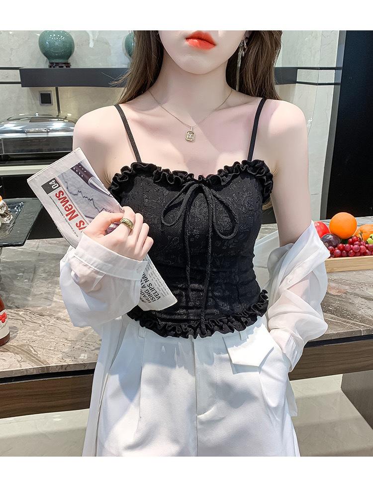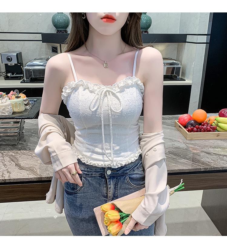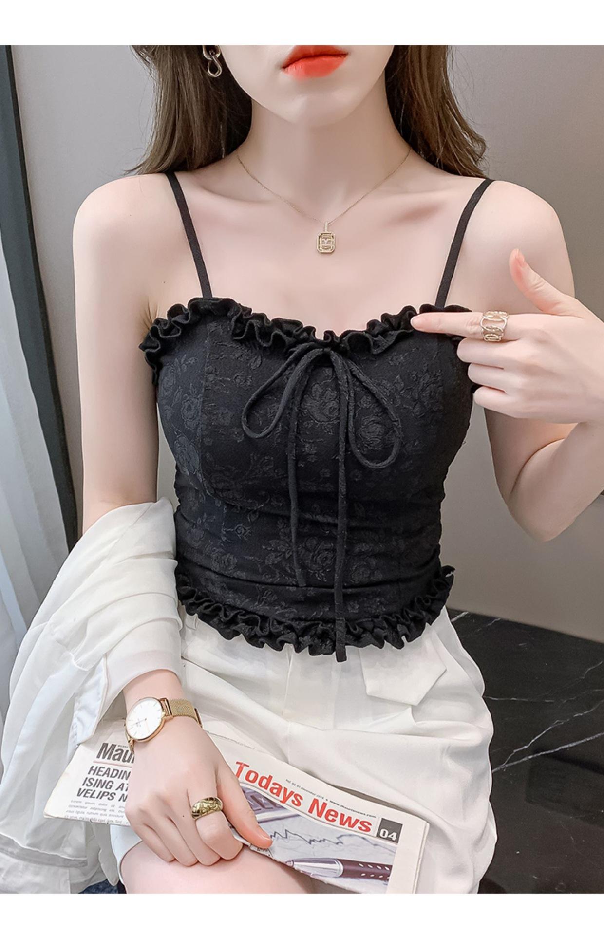 Camisola sexy pura de encaje con orejas de madera, espalda descubierta, corta, sexy, con almohadilla para el pecho, prenda exterior adelgazante, sin mangas