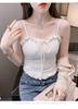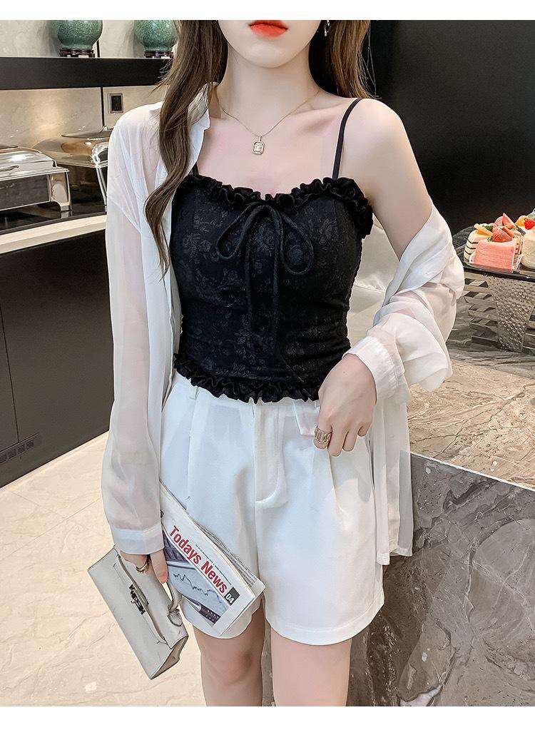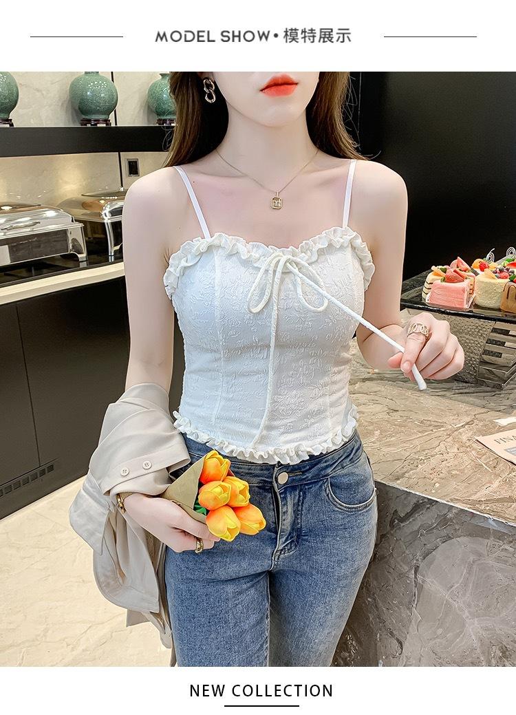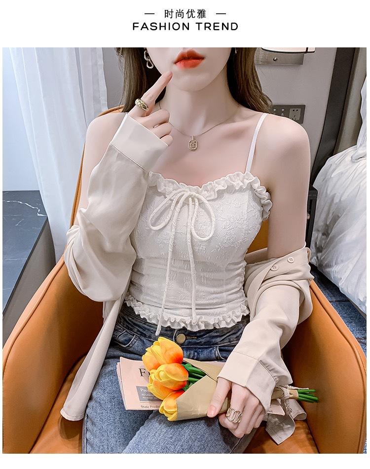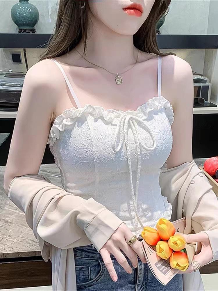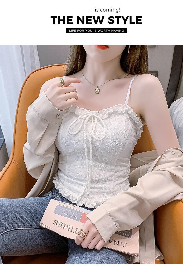 Camisola sexy pura de encaje con orejas de madera, espalda descubierta, corta, sexy, con almohadilla para el pecho, prenda exterior adelgazante, sin mangas