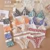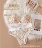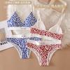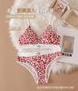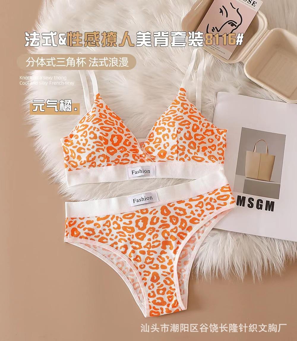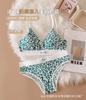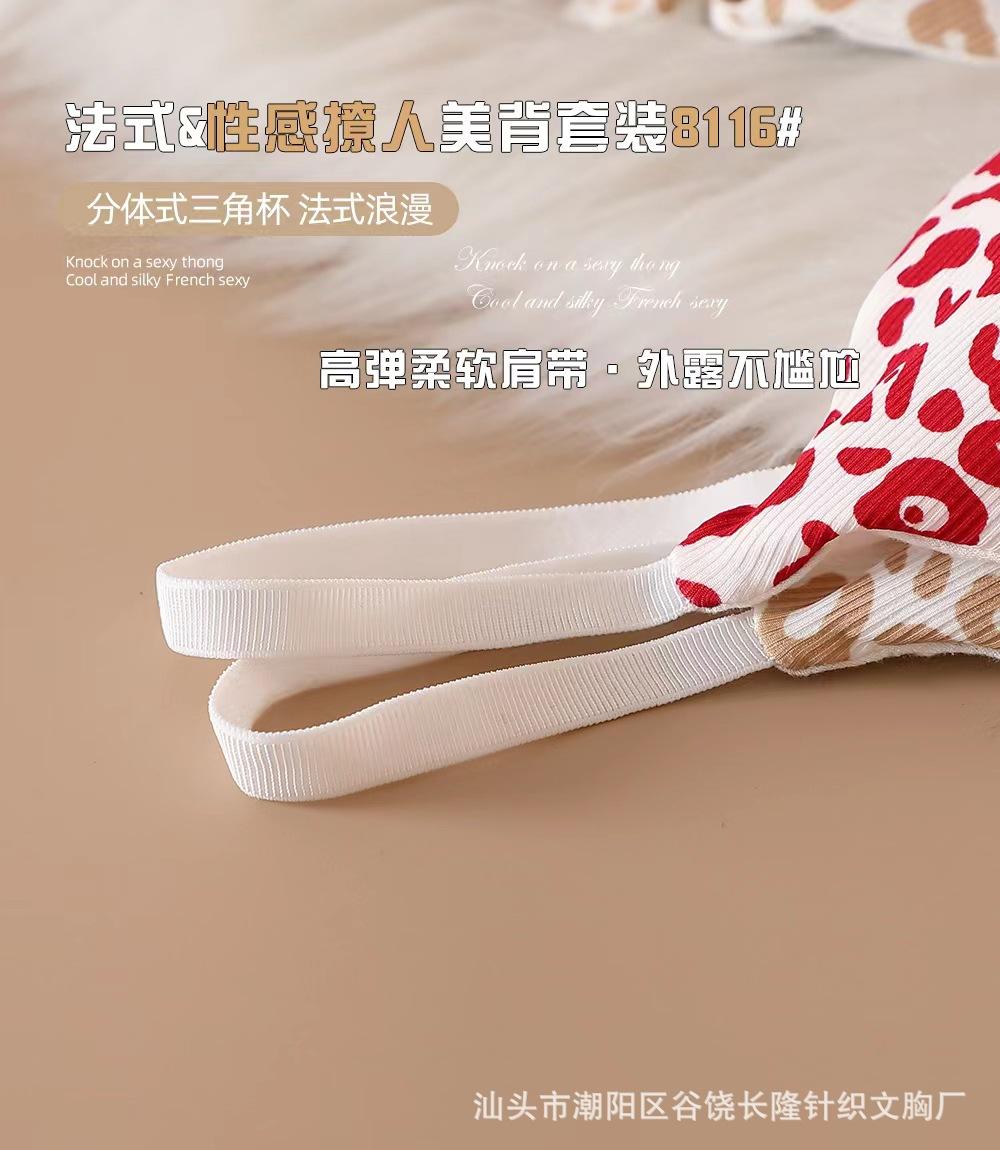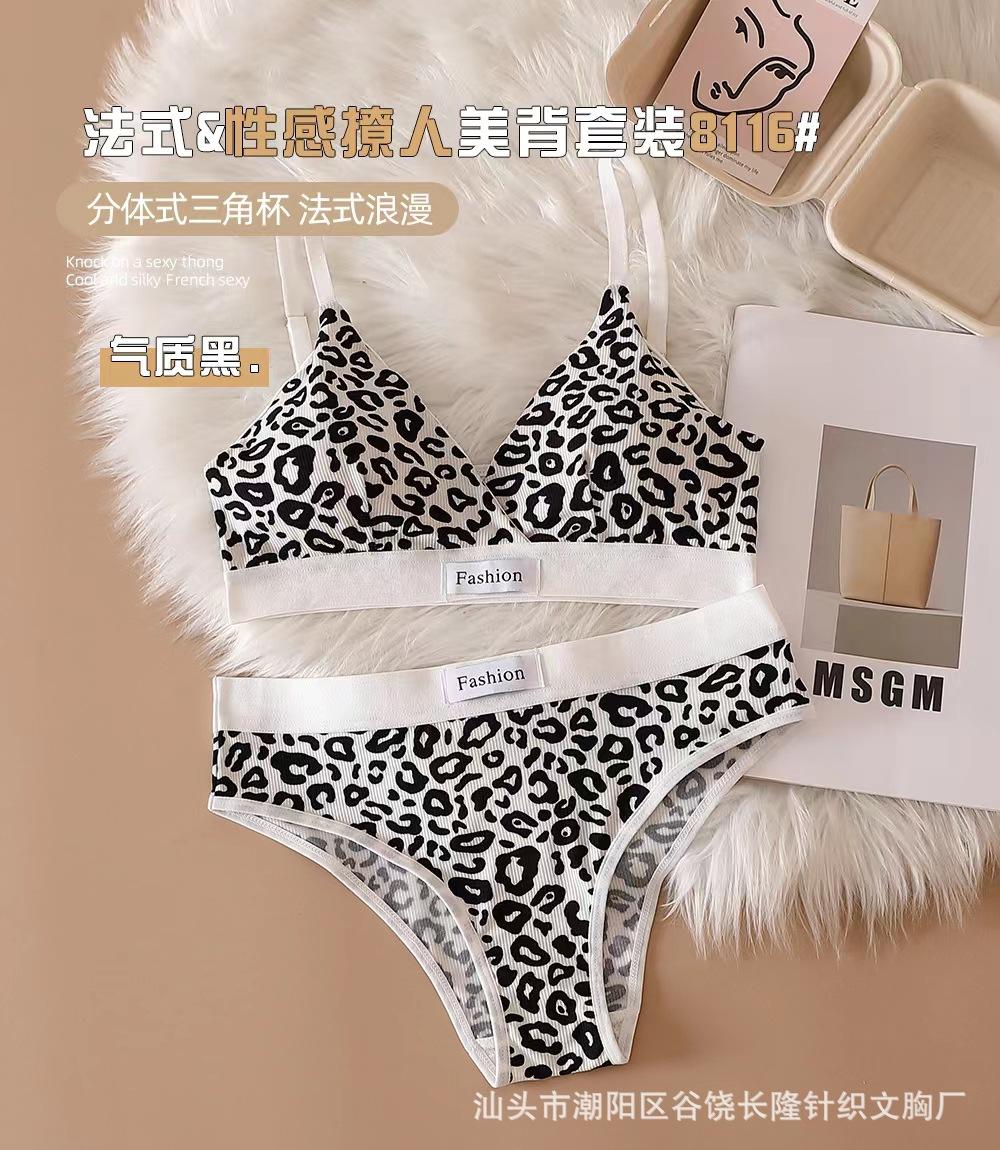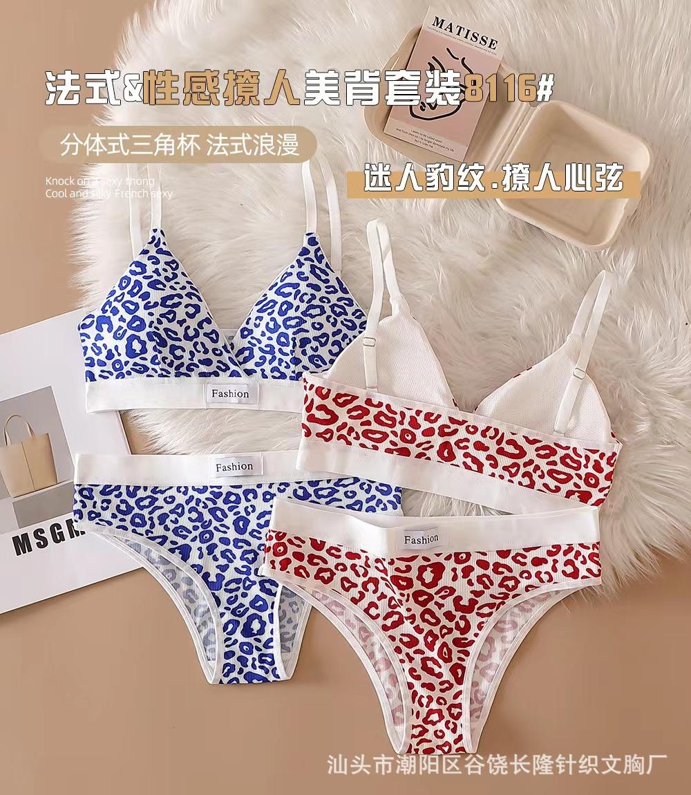 Conjunto de Lencería Sexy con Estampado de Leopardo Francés, Copa Triangular con Escote en V Profundo, Espalda Hermosa, Sujetador Fino Sin Varillas, Conjunto de Lencería, Exportación de Lencería