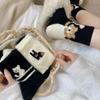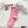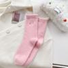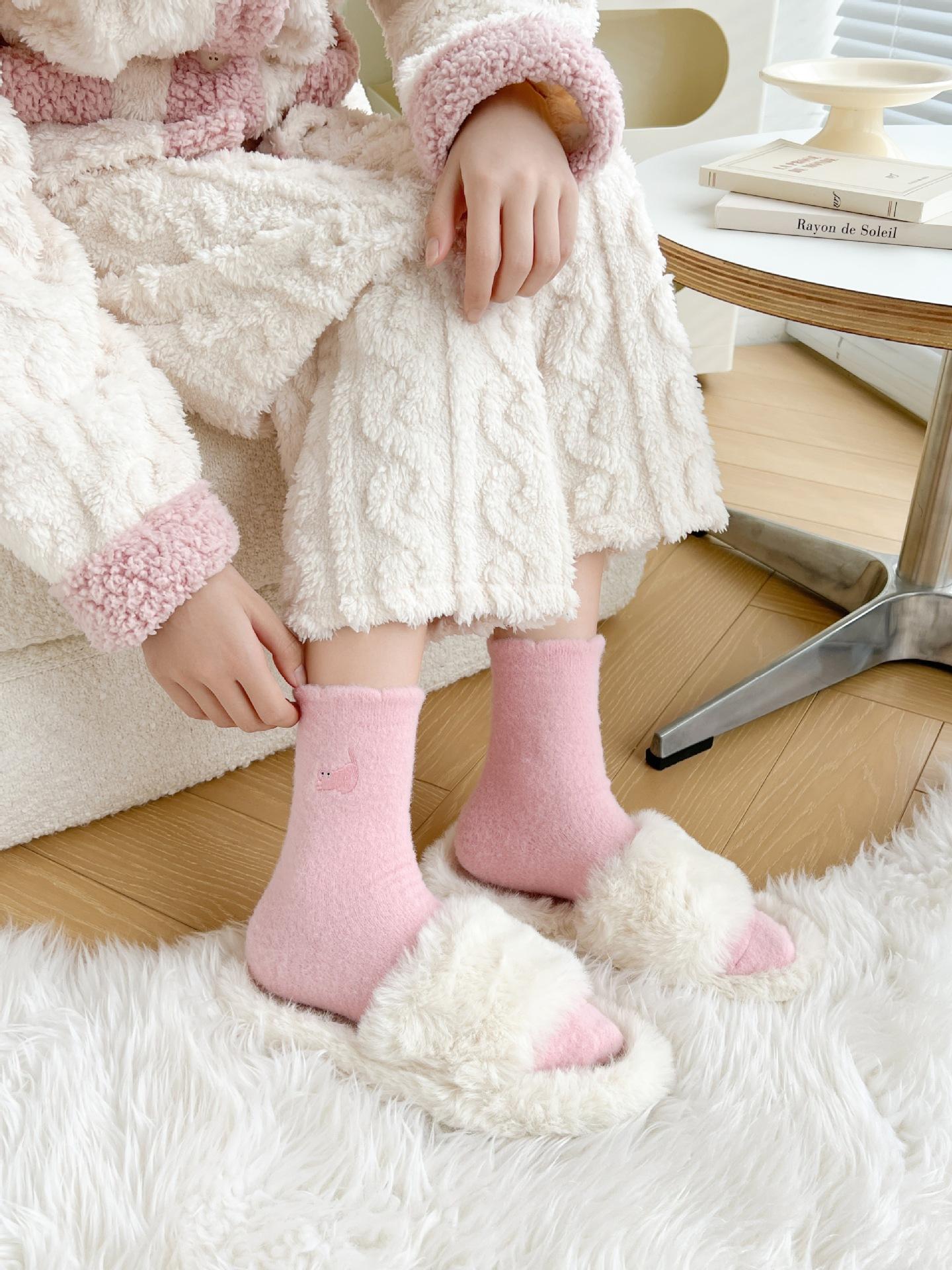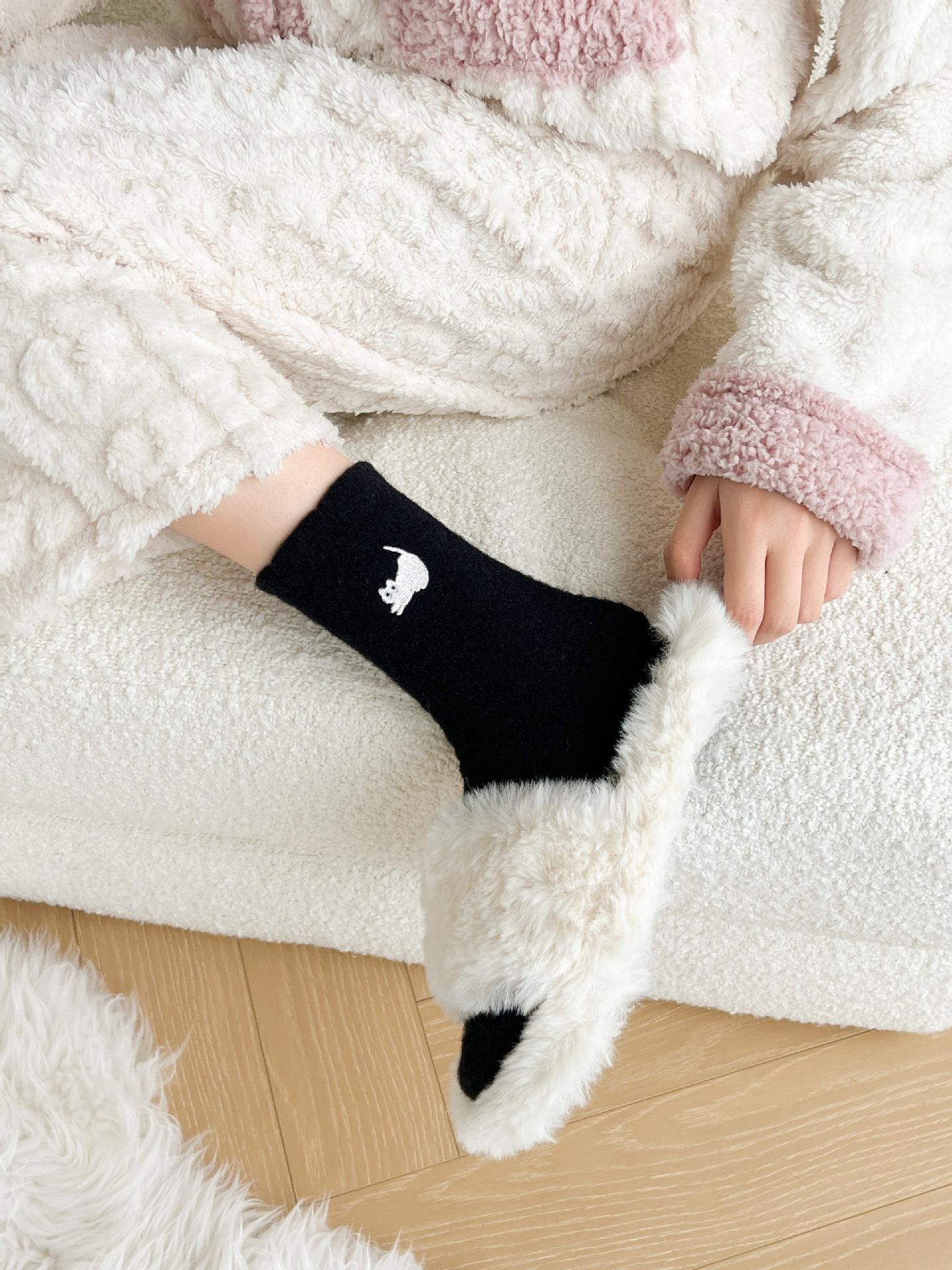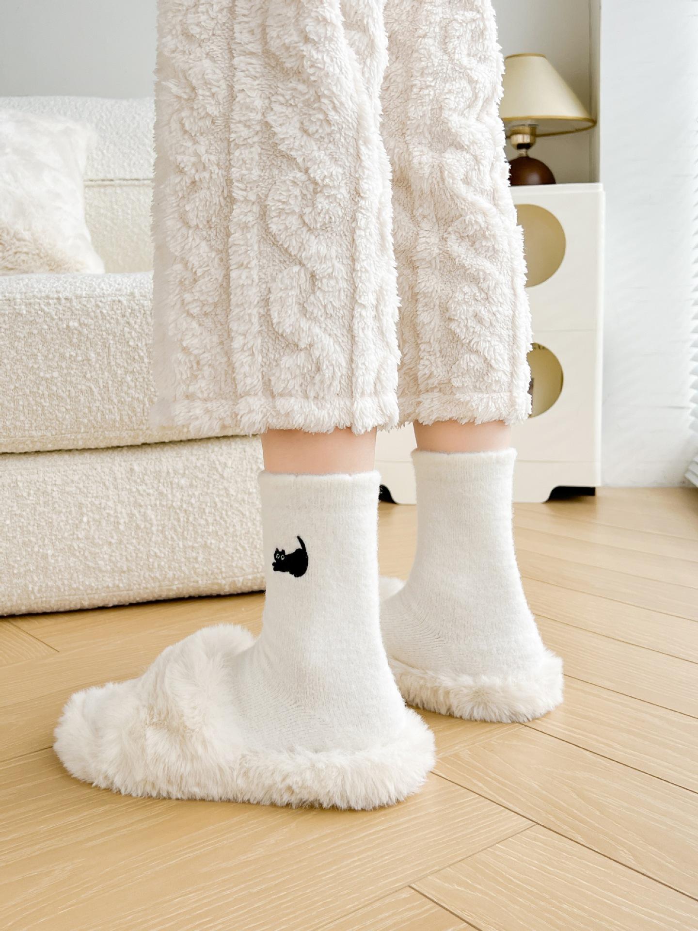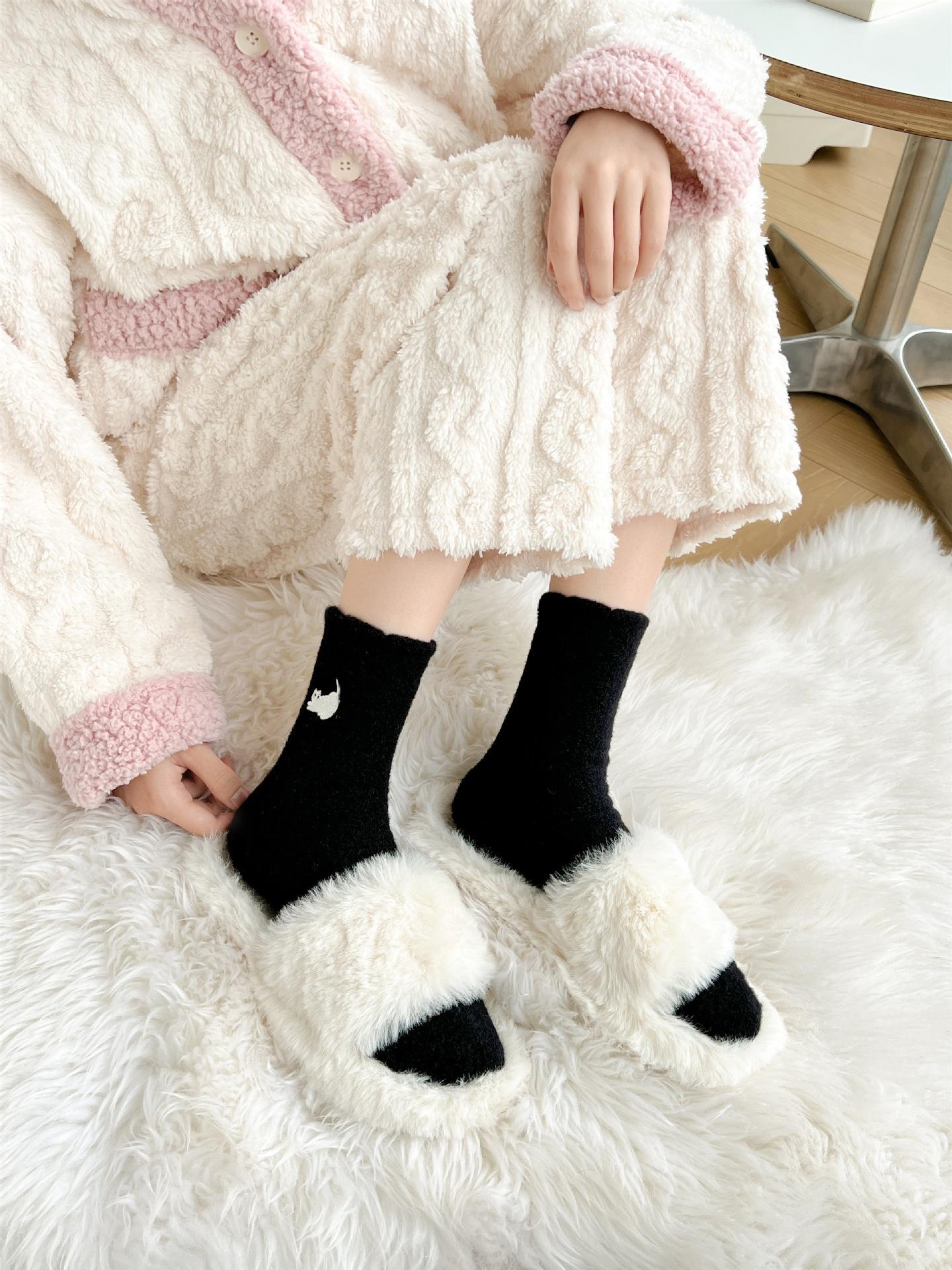 Calcetines de otoño e invierno para mujer, de terciopelo rosa cálido, gruesos y cálidos, con bonitos calcetines japoneses con bordado de gato.