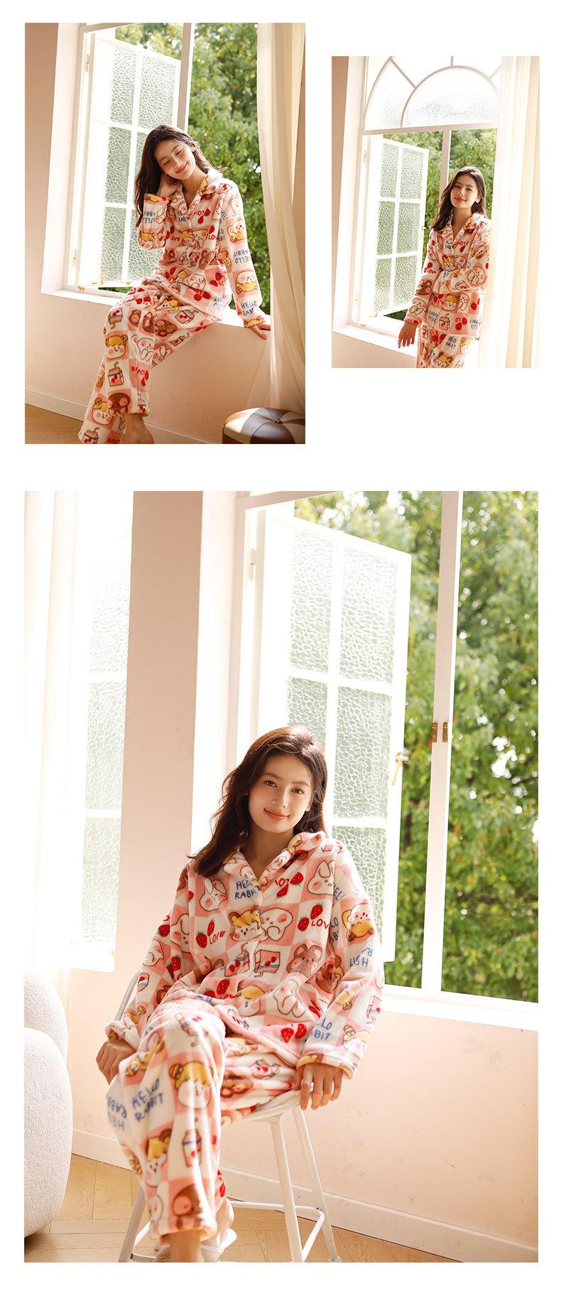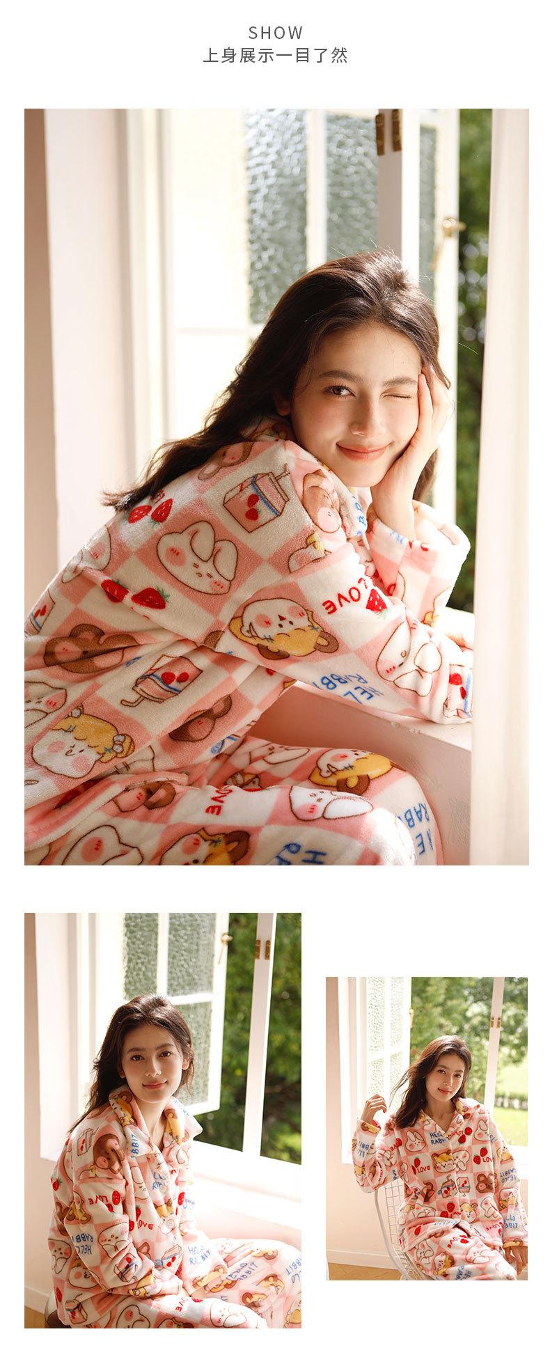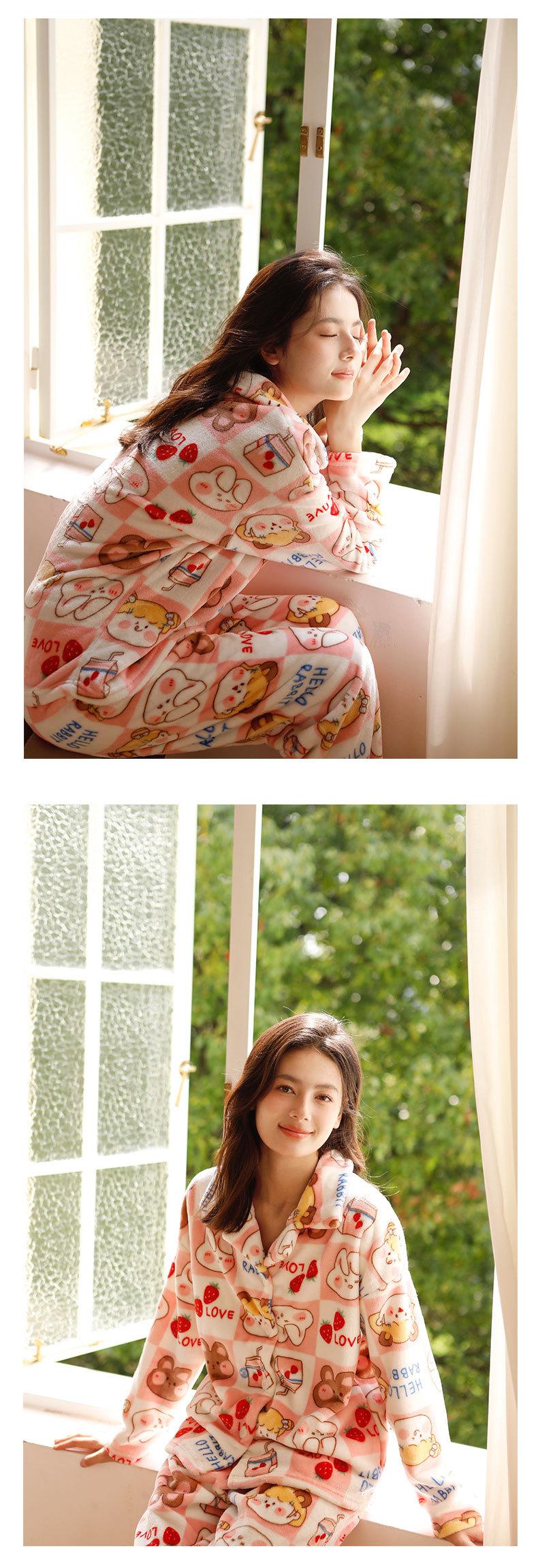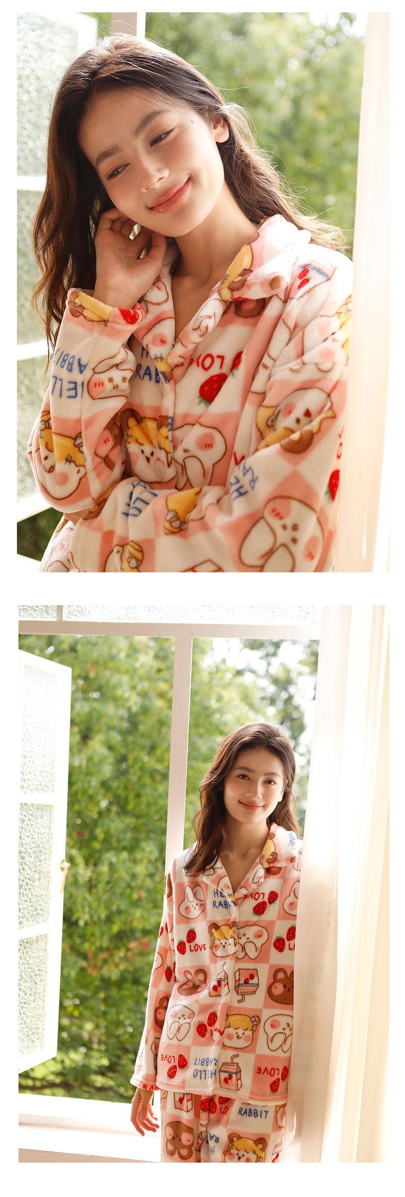 Pijama de franela de terciopelo compuesto engrosado de invierno, rosa, lindo, con estampado de dibujos animados de leche animal