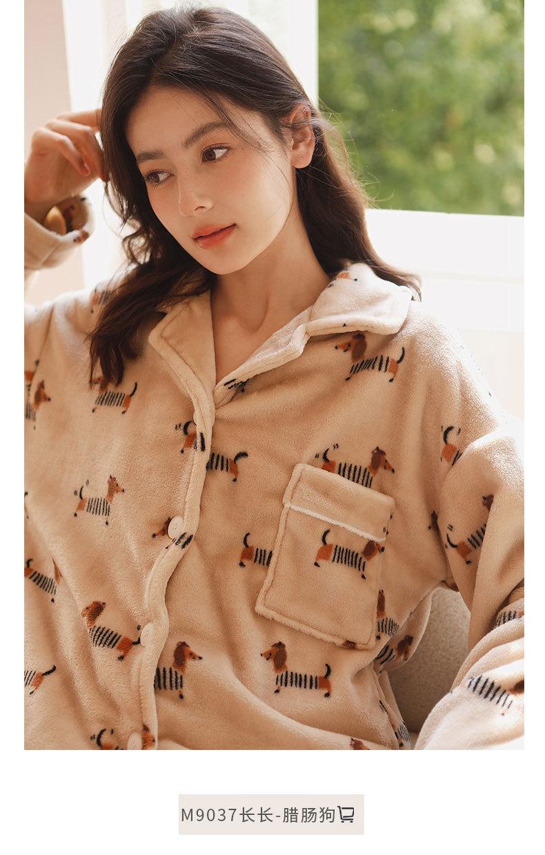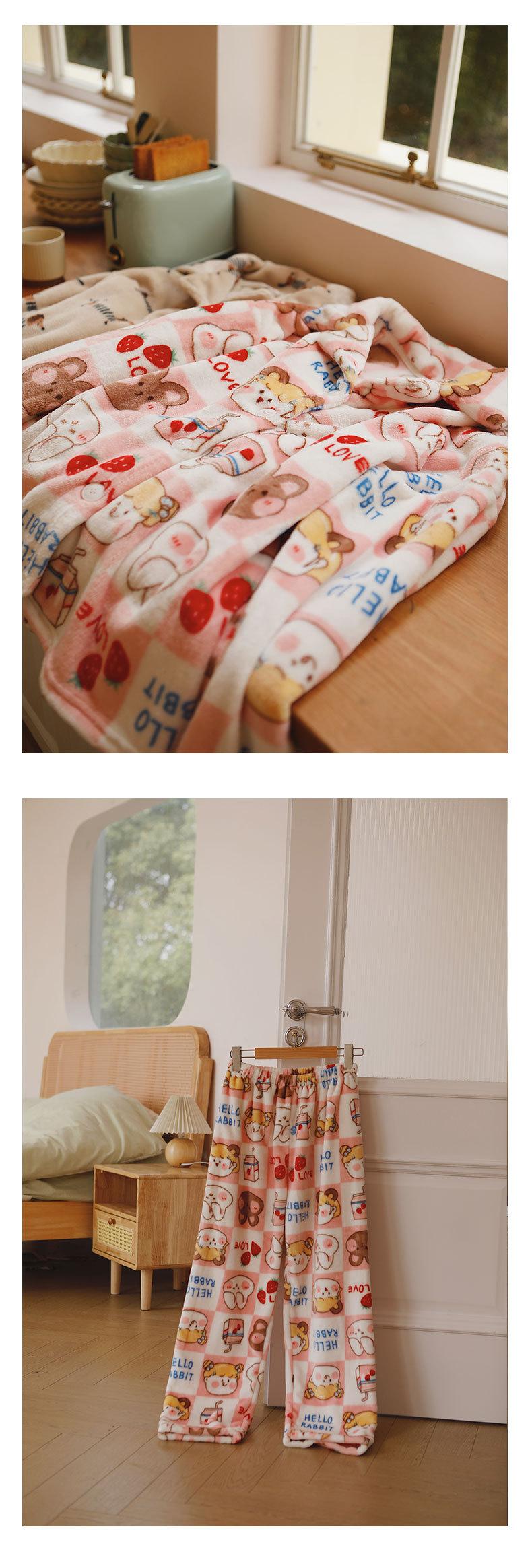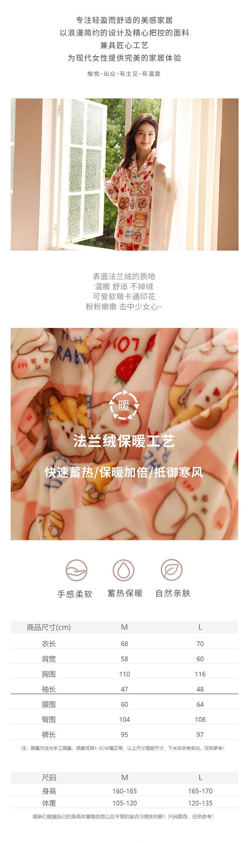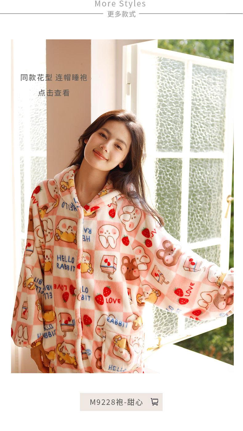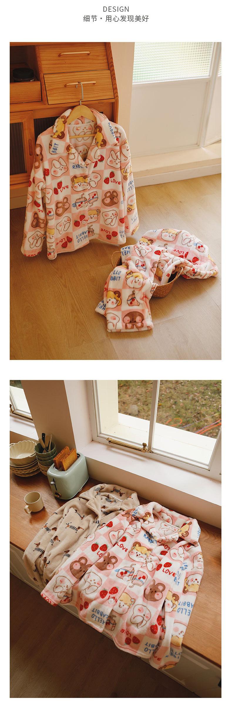 Pijama de franela de terciopelo compuesto engrosado de invierno, rosa, lindo, con estampado de dibujos animados de leche animal