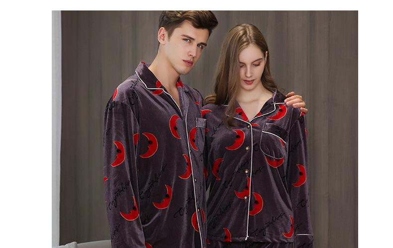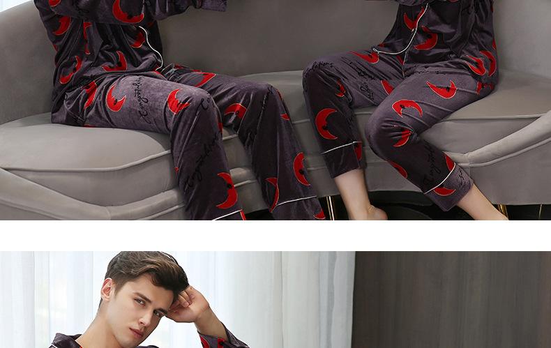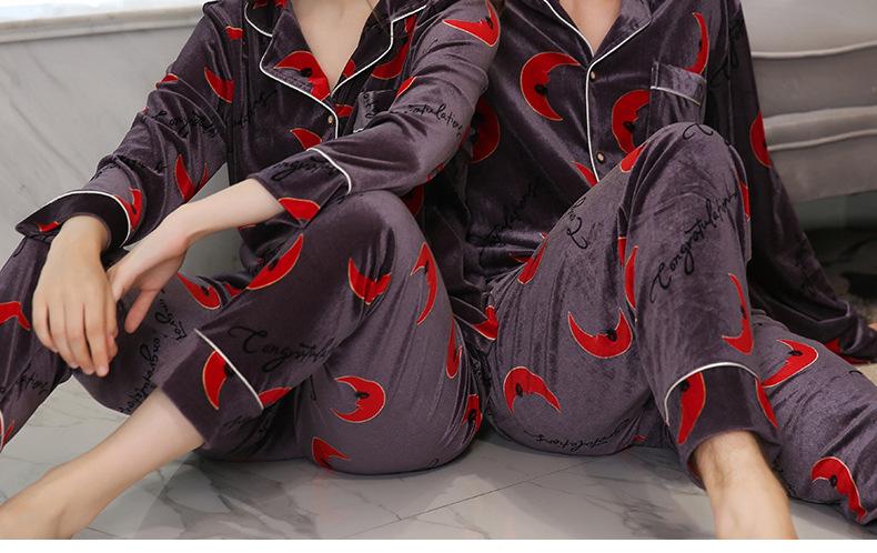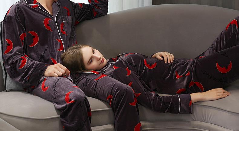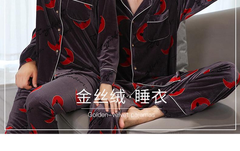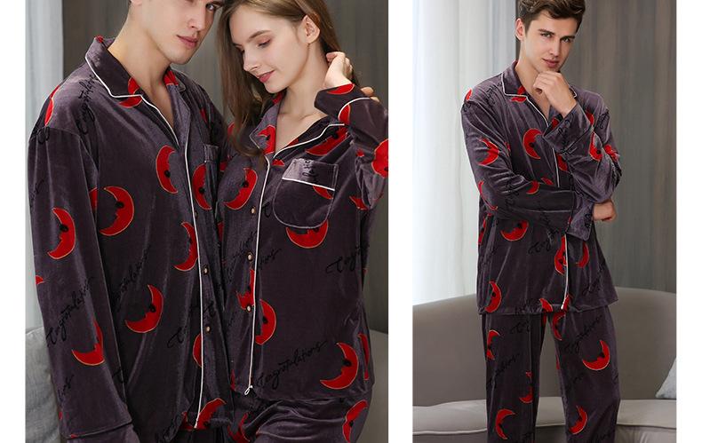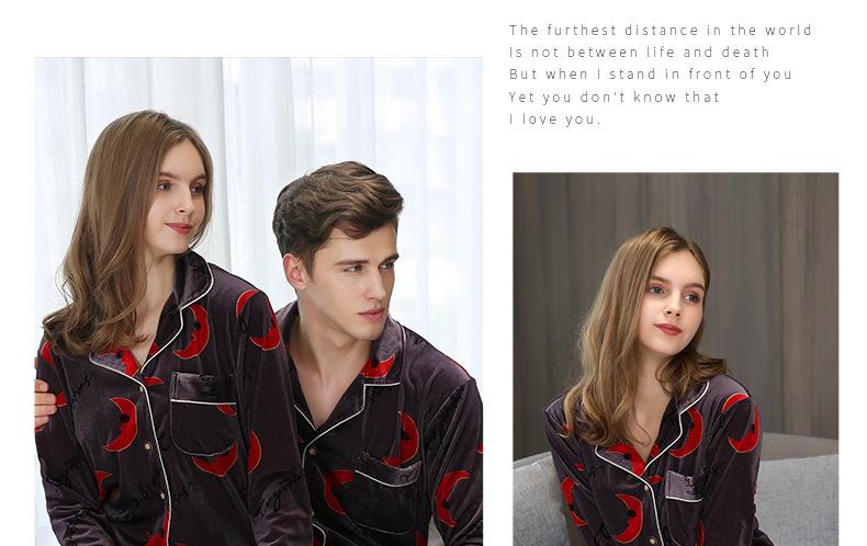 Pijamas de Pareja Primavera Terciopelo Dorado Manga Larga Pijamas de Mujer Modernos Ropa de Casa Holgada para Hombre