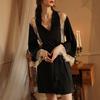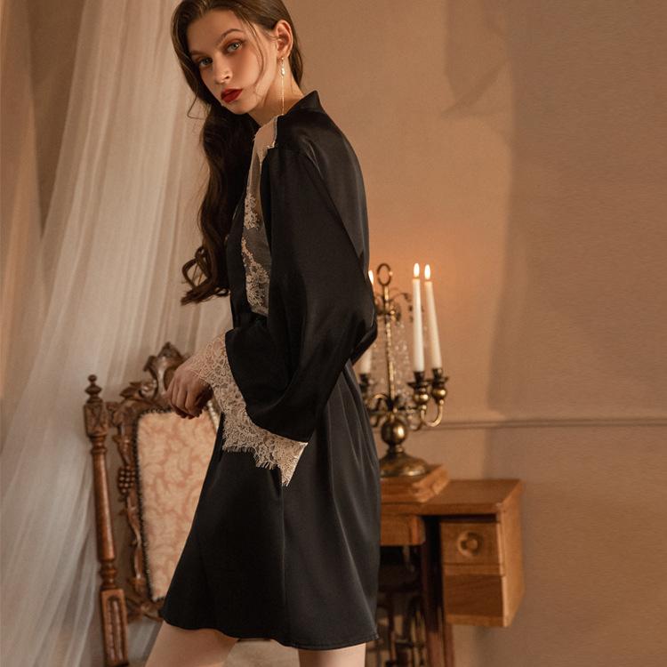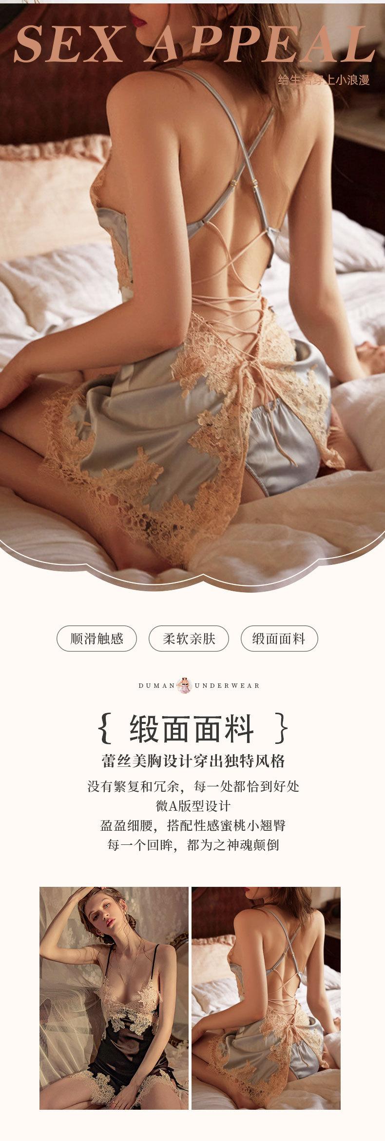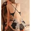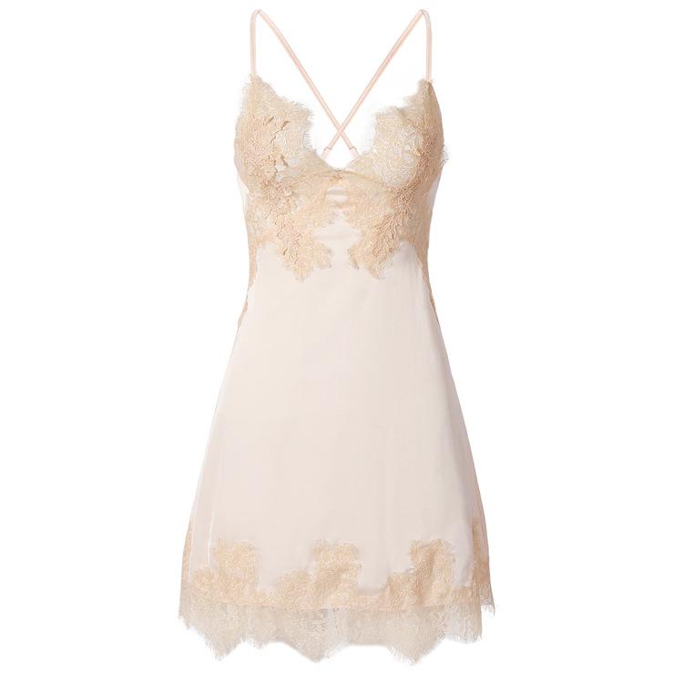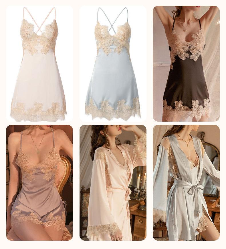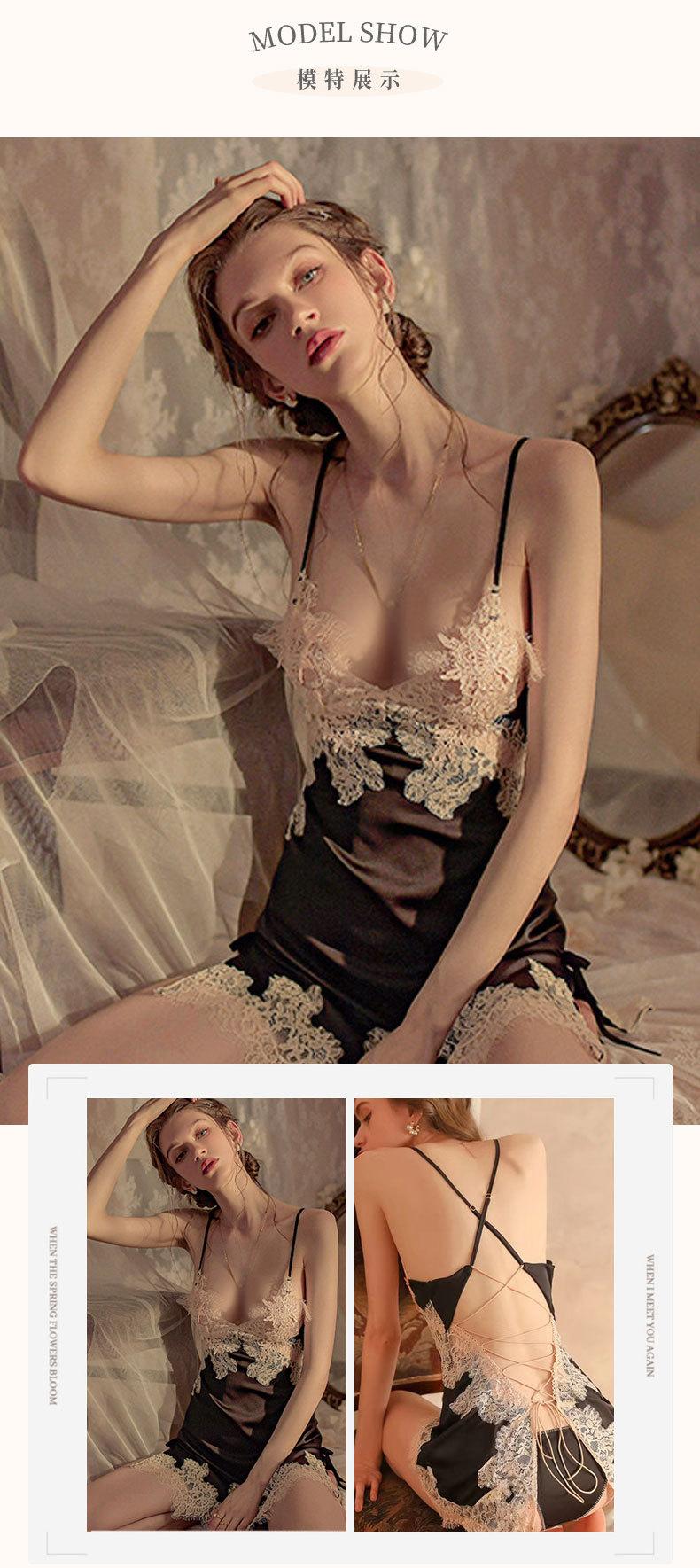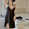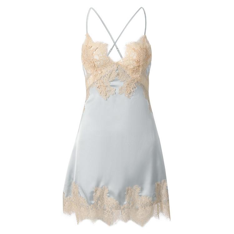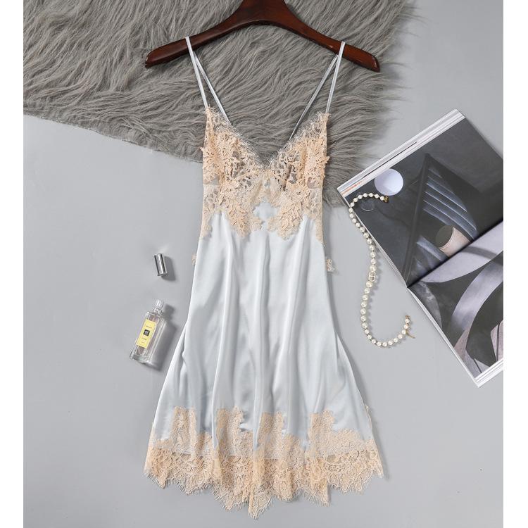 Pijama sexy de seda helada para mujer, camisón de verano de talla grande, con encaje de malla y satén, con abertura trasera, para el hogar