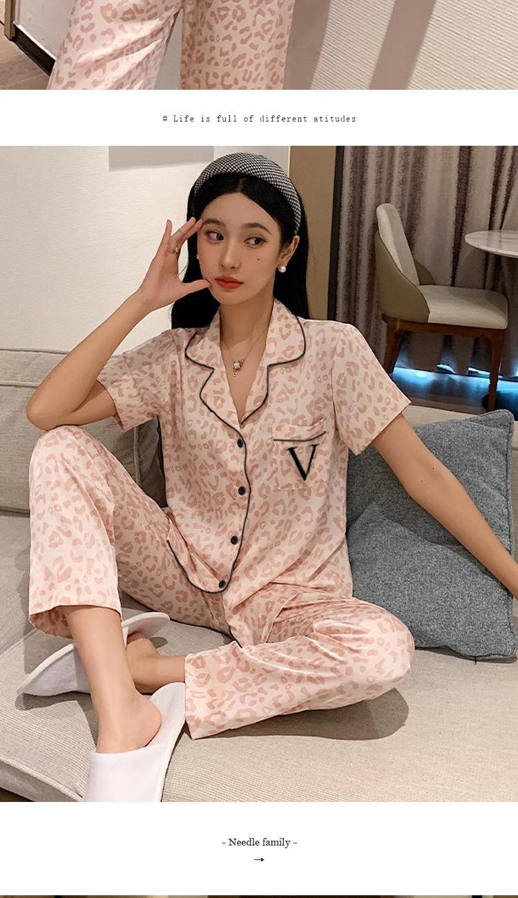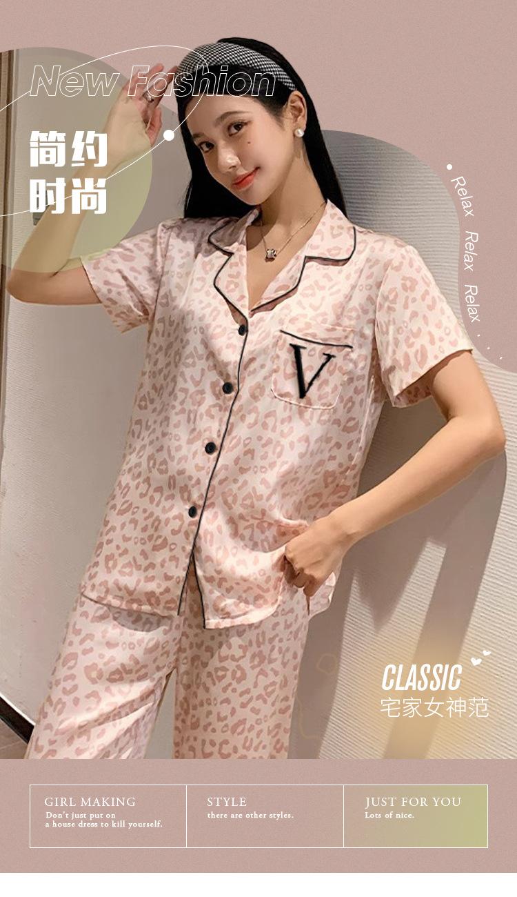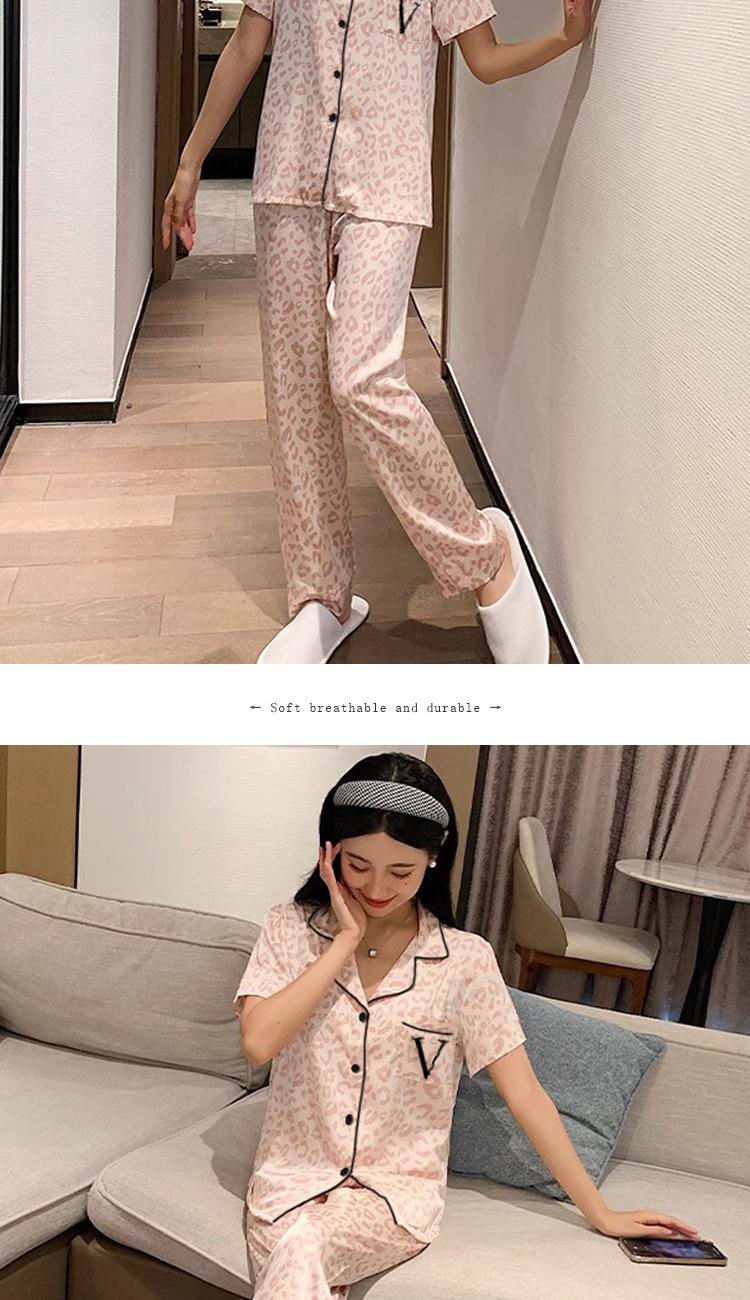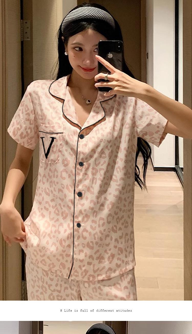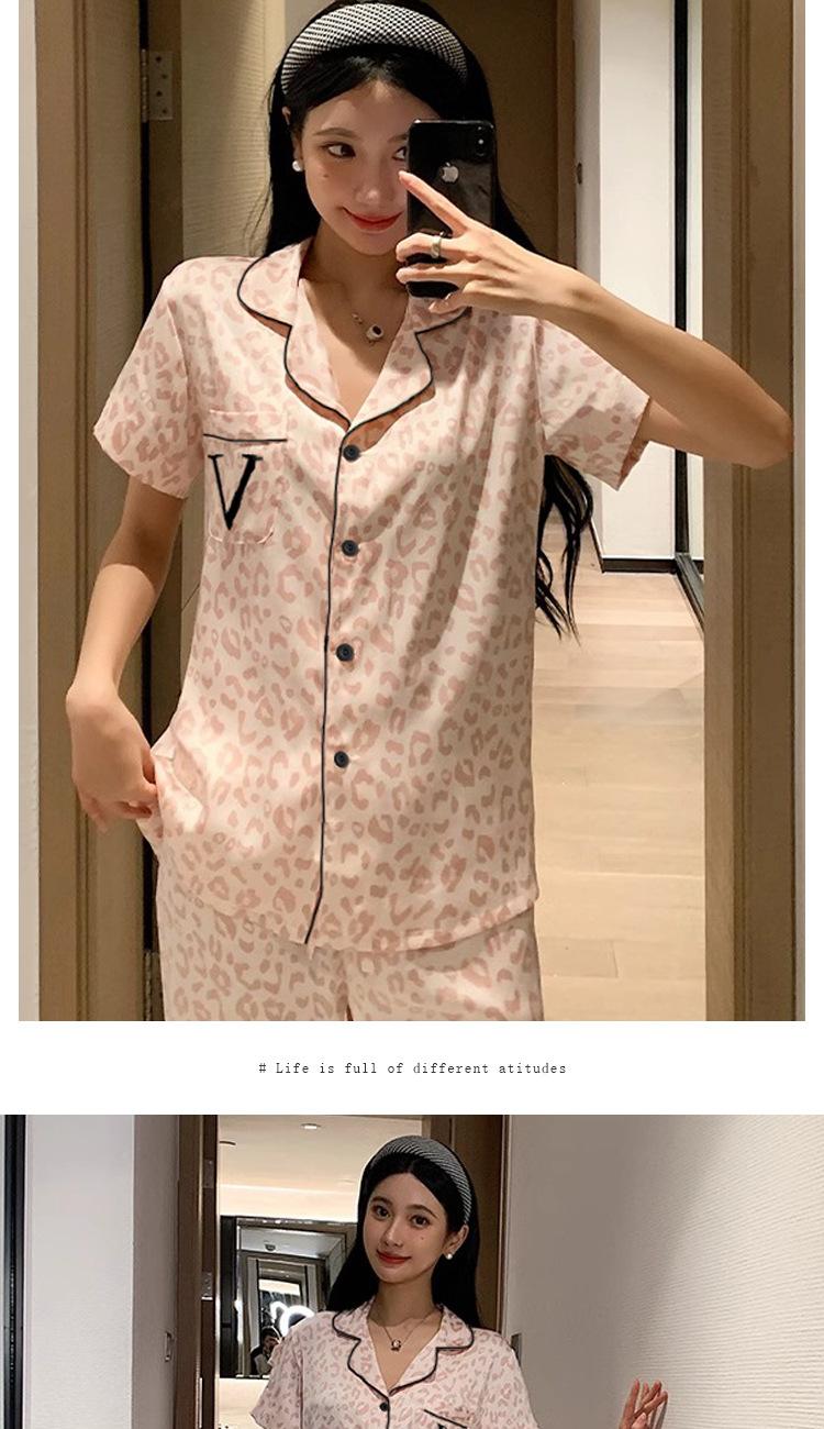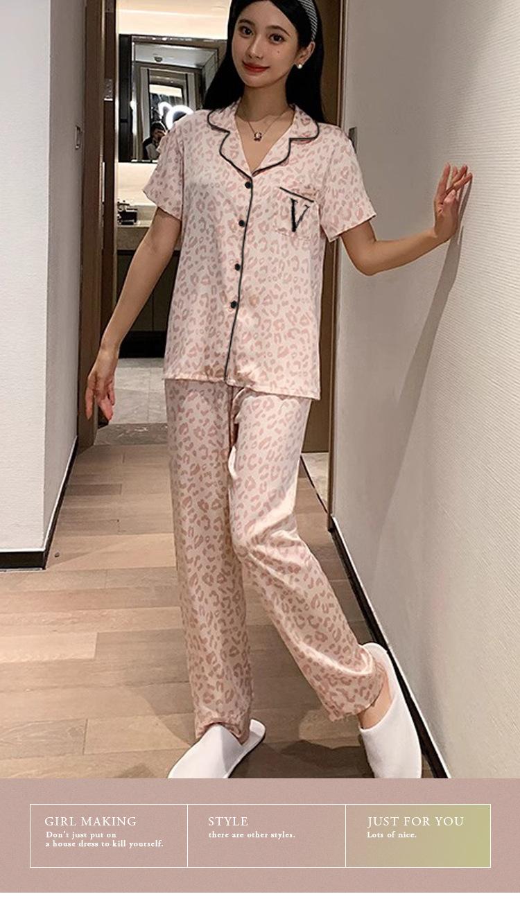 Pijamas de manga corta con estampado de leopardo rosa y rojo de primavera para niñas, ropa de hogar de alta calidad, venta al por mayor, transfronteriza