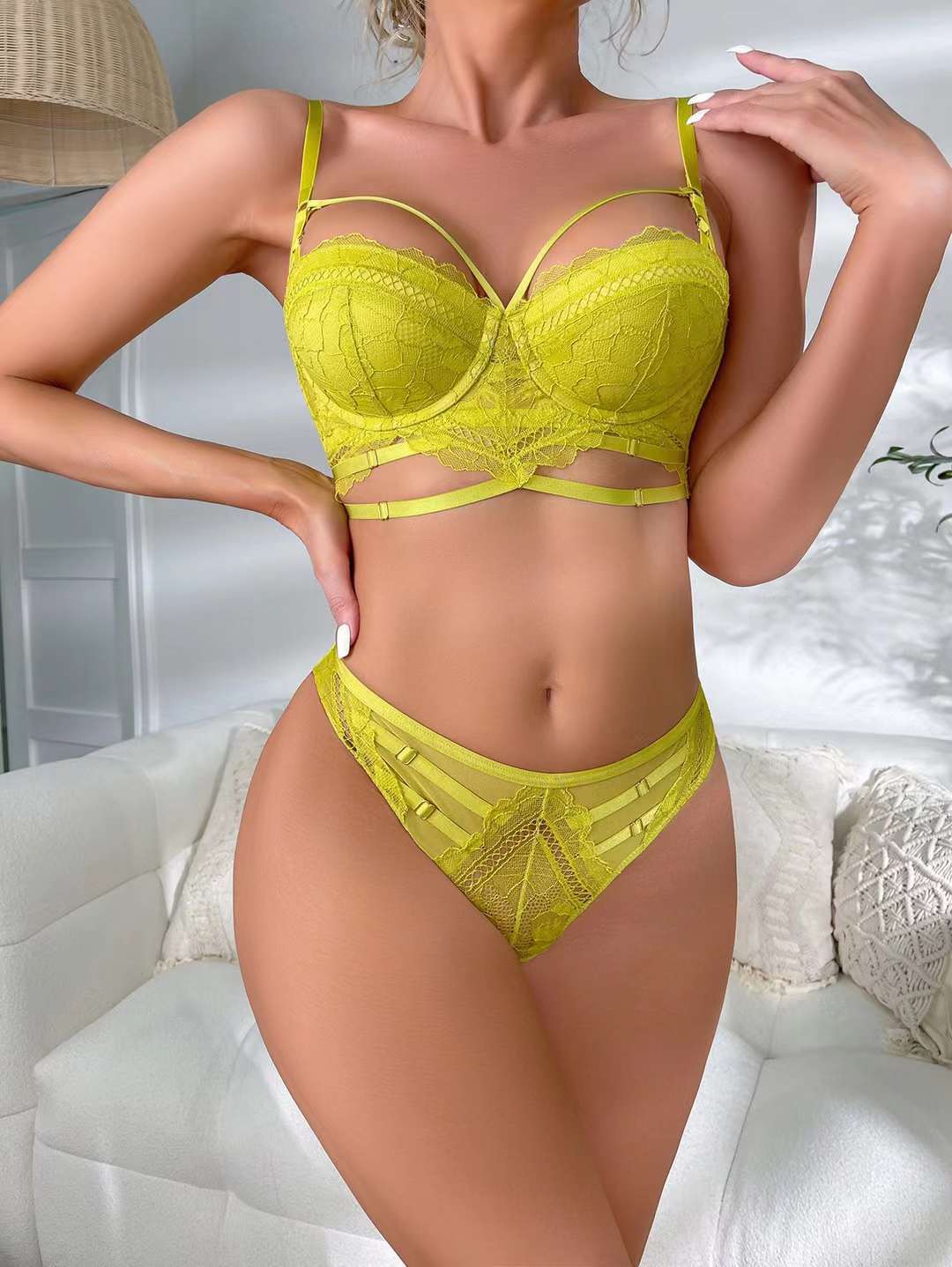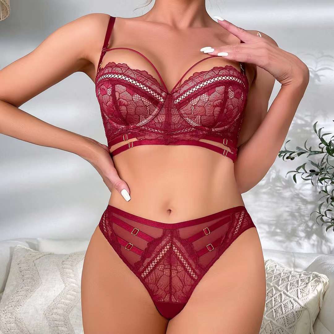 Íntimos Sexys de Comercio Exterior, Pechos Pequeños Lucen Más Grandes, Íntimos Push-Up, Tirantes Anticaída, Conjunto de Brasier de Encaje con Aberturas