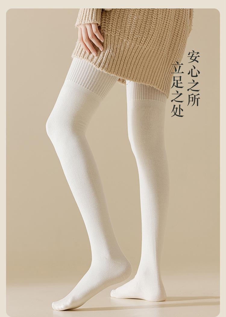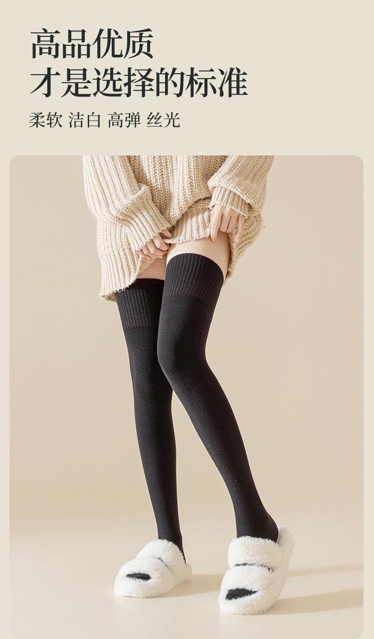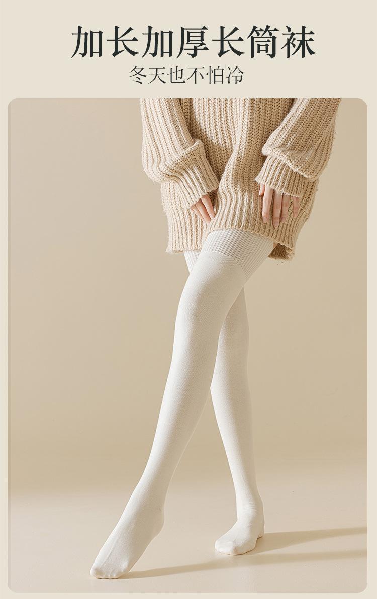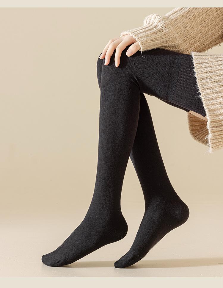 Calcetines por encima de la rodilla para mujer, medias de color liso de otoño e invierno, calcetines gruesos y cálidos hasta la rodilla con forro polar, calcetines de muslo sin hueso alargados de invierno
