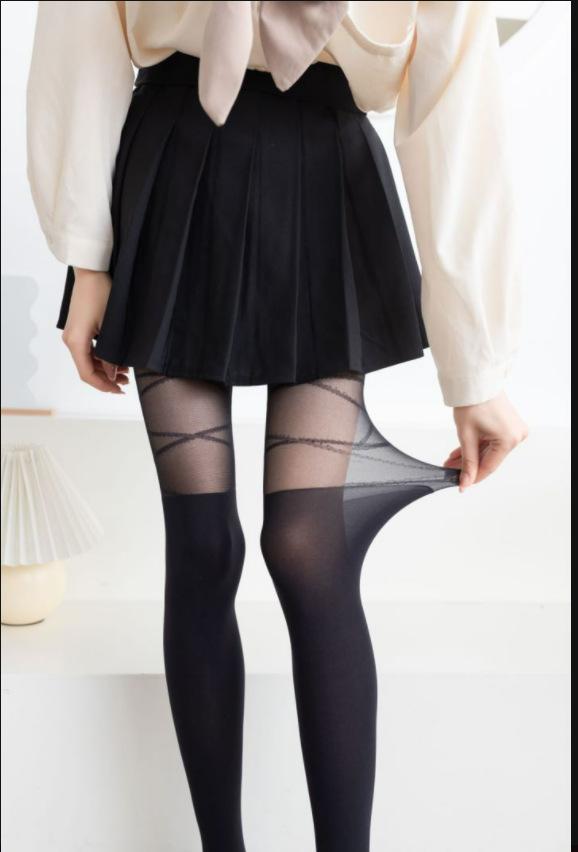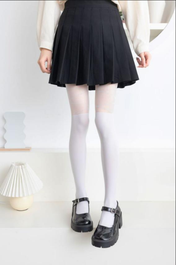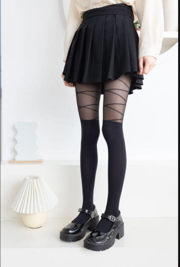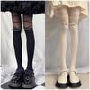 Medias de seda con lazo, estilo japonés, con tiras cruzadas, costuras falsas de tubo alto, medias falsas hasta el muslo por encima de la rodilla para mujer