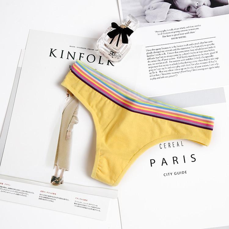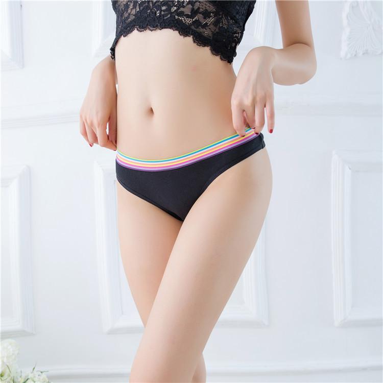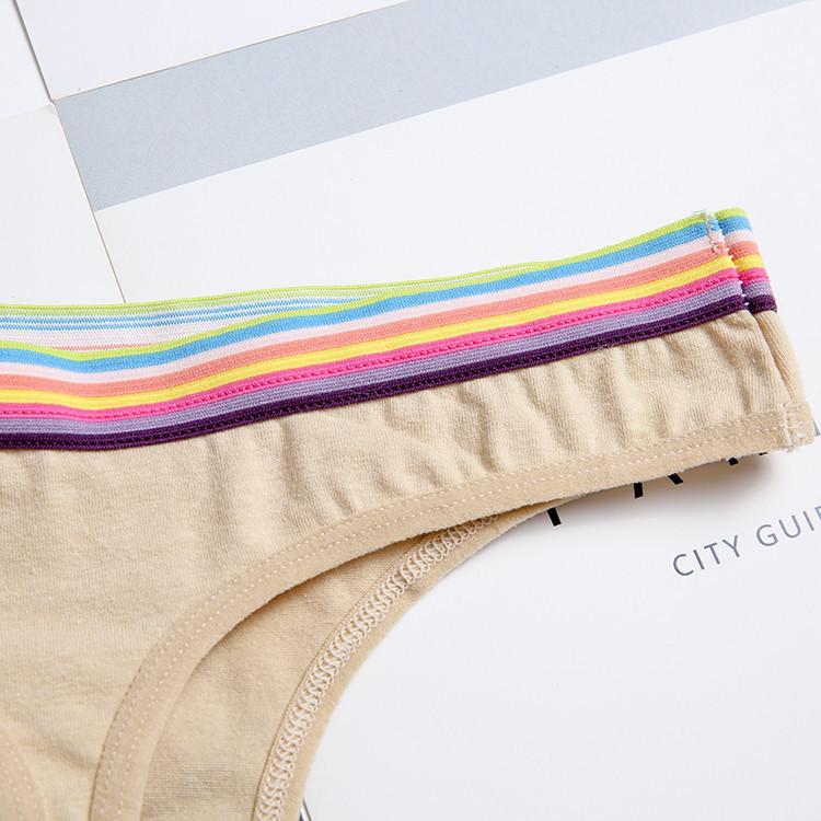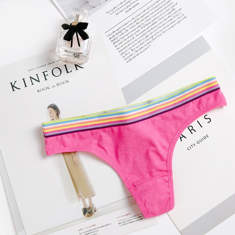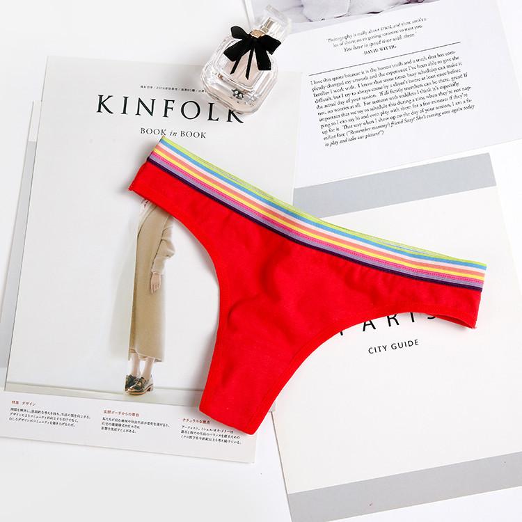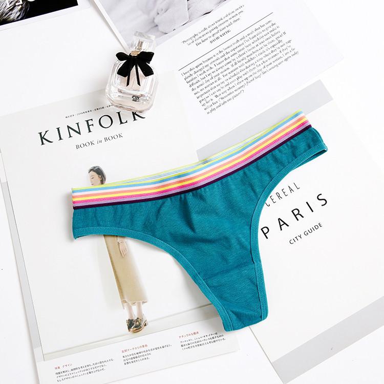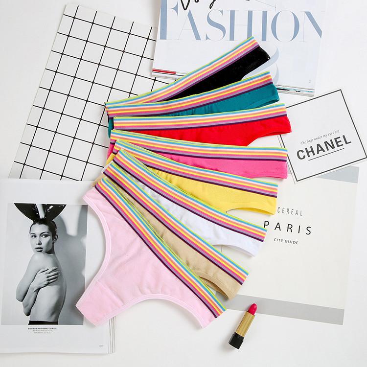 Tanga sexy de siete colores arcoíris con algodón puro transpirable de cintura baja para mujer nueva tanga sexy de comercio exterior 3311
