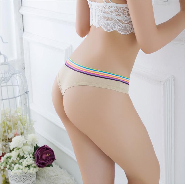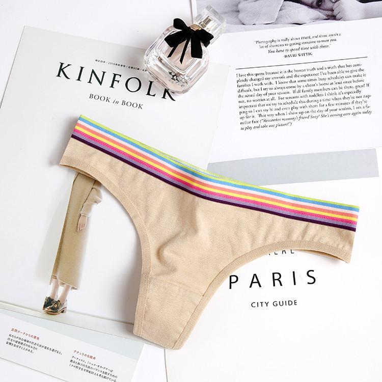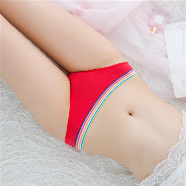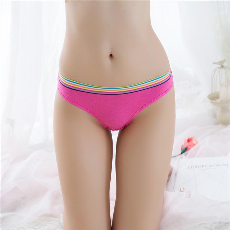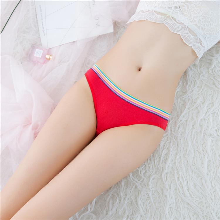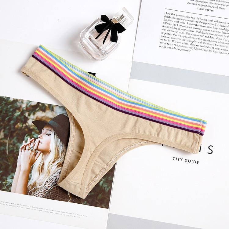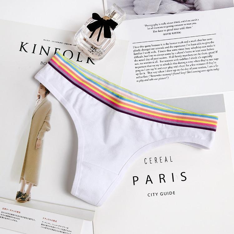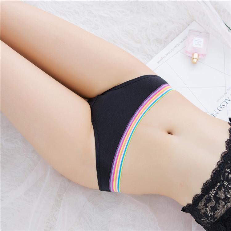 Tanga sexy de siete colores arcoíris con algodón puro transpirable de cintura baja para mujer nueva tanga sexy de comercio exterior 3311