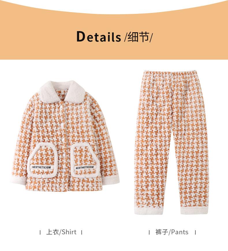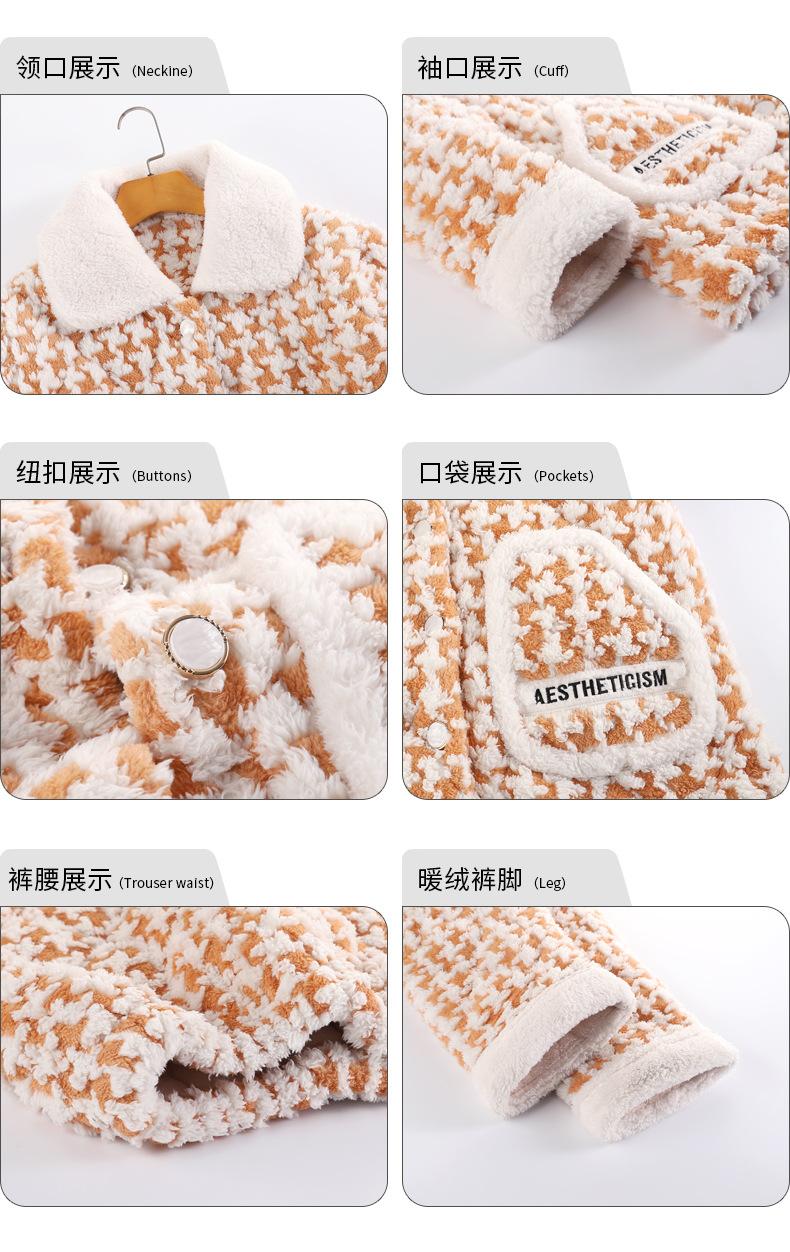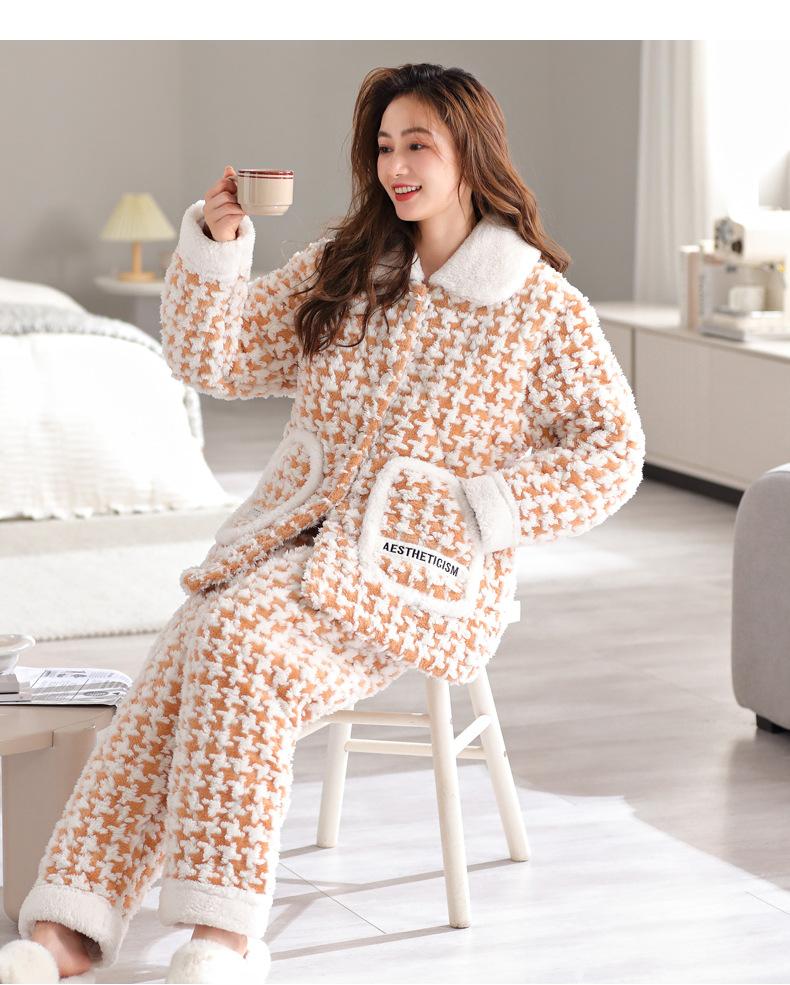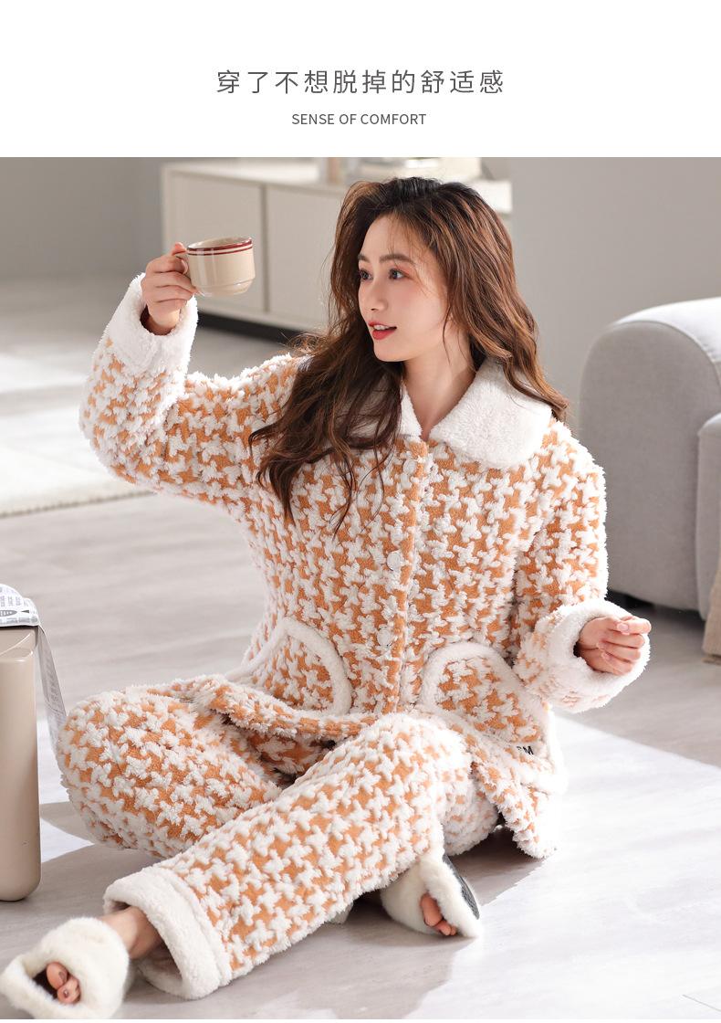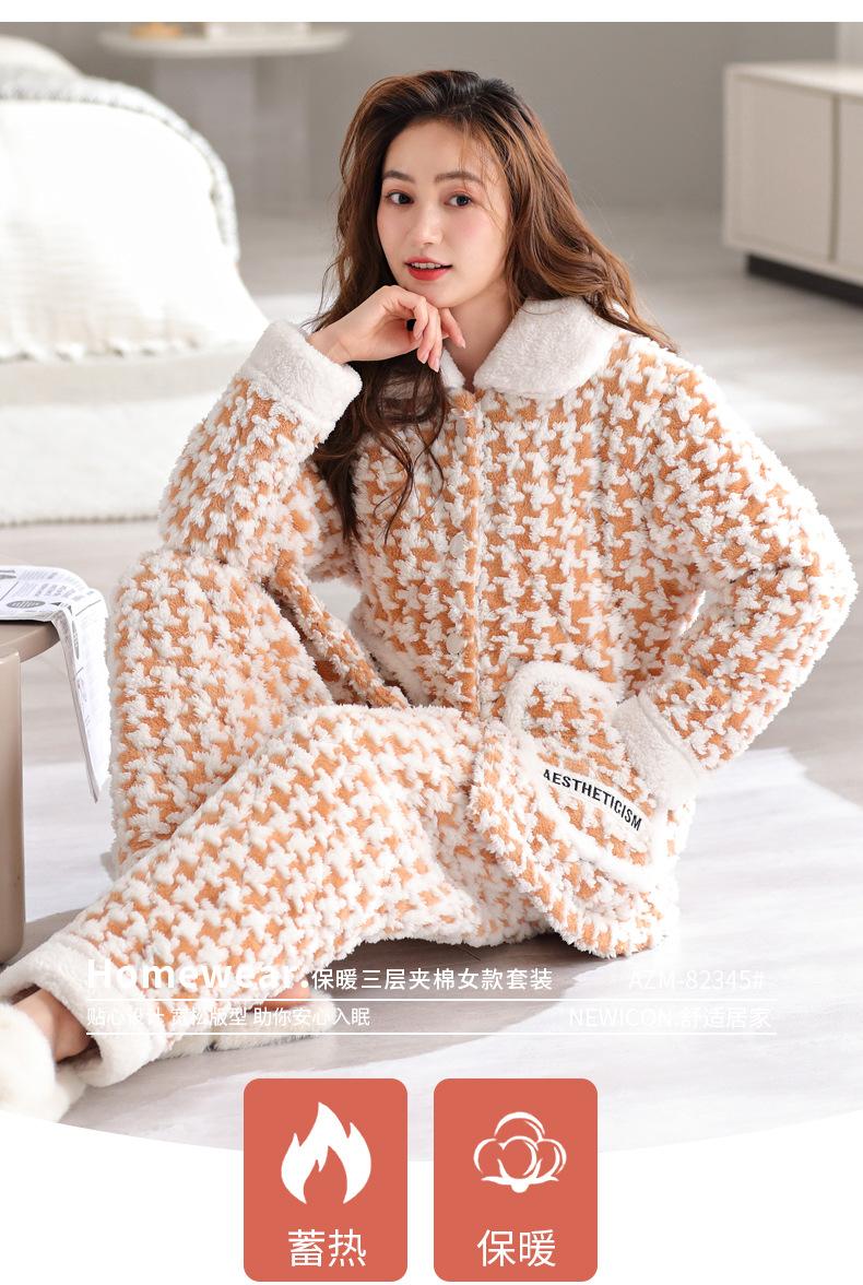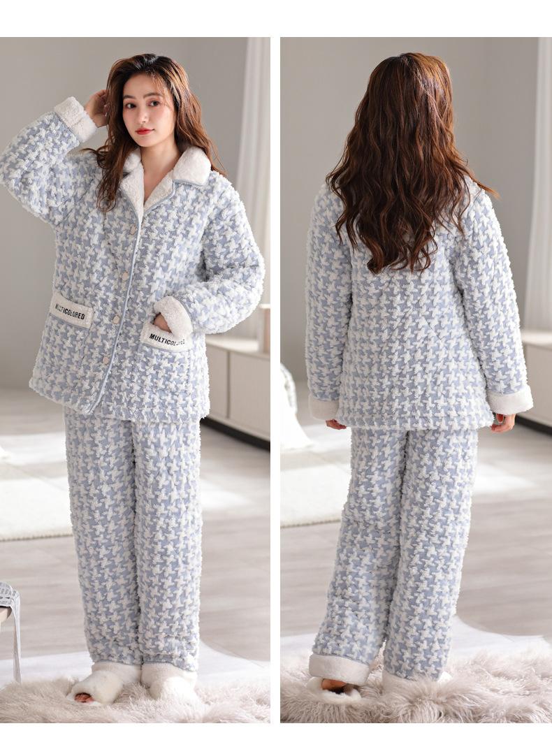 Pijama cálido de franela para otoño e invierno para mujer, acolchado de tres capas, grueso, sencillo para estar en casa, de manga larga, casual, traje para mujer