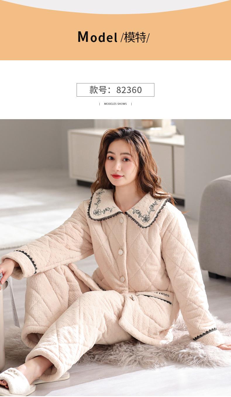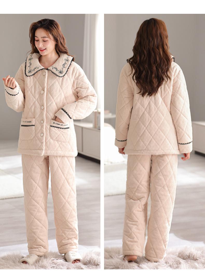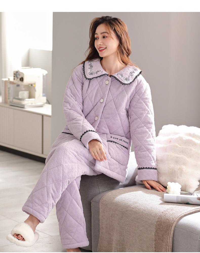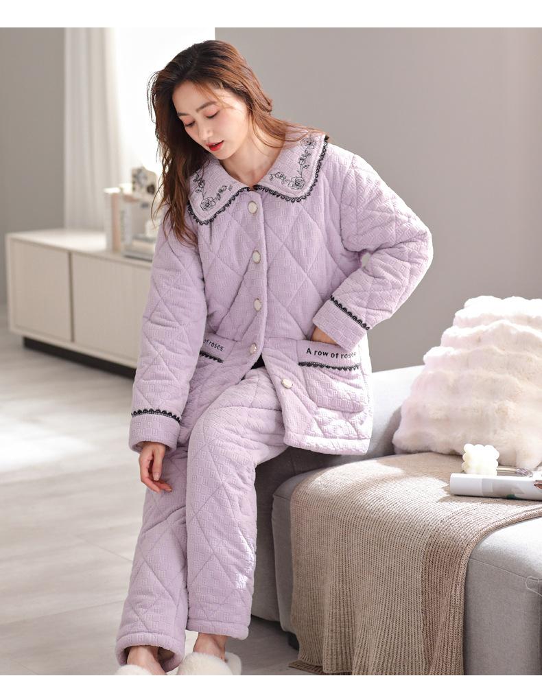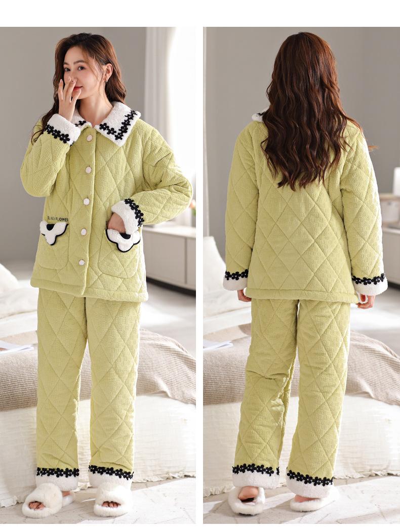 Pijama de invierno nuevo para mujer, cárdigan grueso acolchado de tres capas cálido, estilo casual simple, ropa de casa, traje de mujer